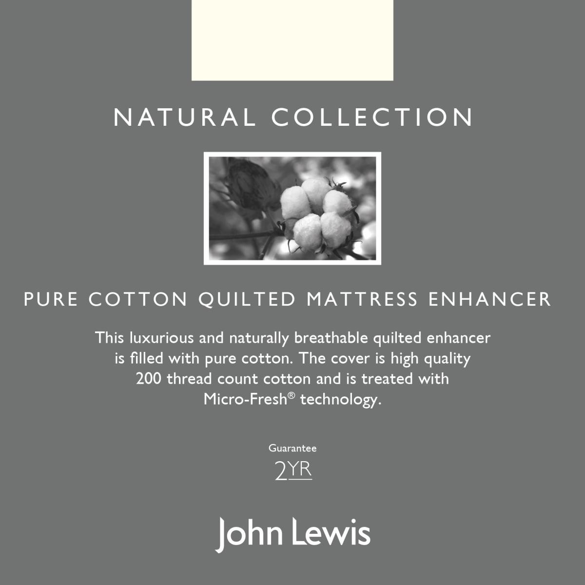 Good for cold sleepers Good for hot sleepers This luxurious and naturally breathable quilted enhancer is filled with pure cotton. The cover is high quality 200 thread count cotton and is treated with Micro-Fresh® technology. Temperature Regulating Cotton is naturally temperature regulating and breathable. It keeps the heat in when nights are cold, and lets it out when they’re hot. More Sustainably Sourced We always strive to obtain raw materials from more sustainable sources. This product supports cotton farmers who use water efficiently, care for the environment and promote fair and decent work. Micro-Fresh® Technology Reduces bacteria growth to keep fabrics 99.9% germ-free. It works throughout the life of your bedding, prevents the spread of harmful bacteria, and is kind to skin. Good to know The emperor size mattress protector fits mattresses up to 38cm in depth with an elasticated skirt. Worth knowing We do not recommend using this topper with an electric blanket as it it will significantly limit its effectiveness.