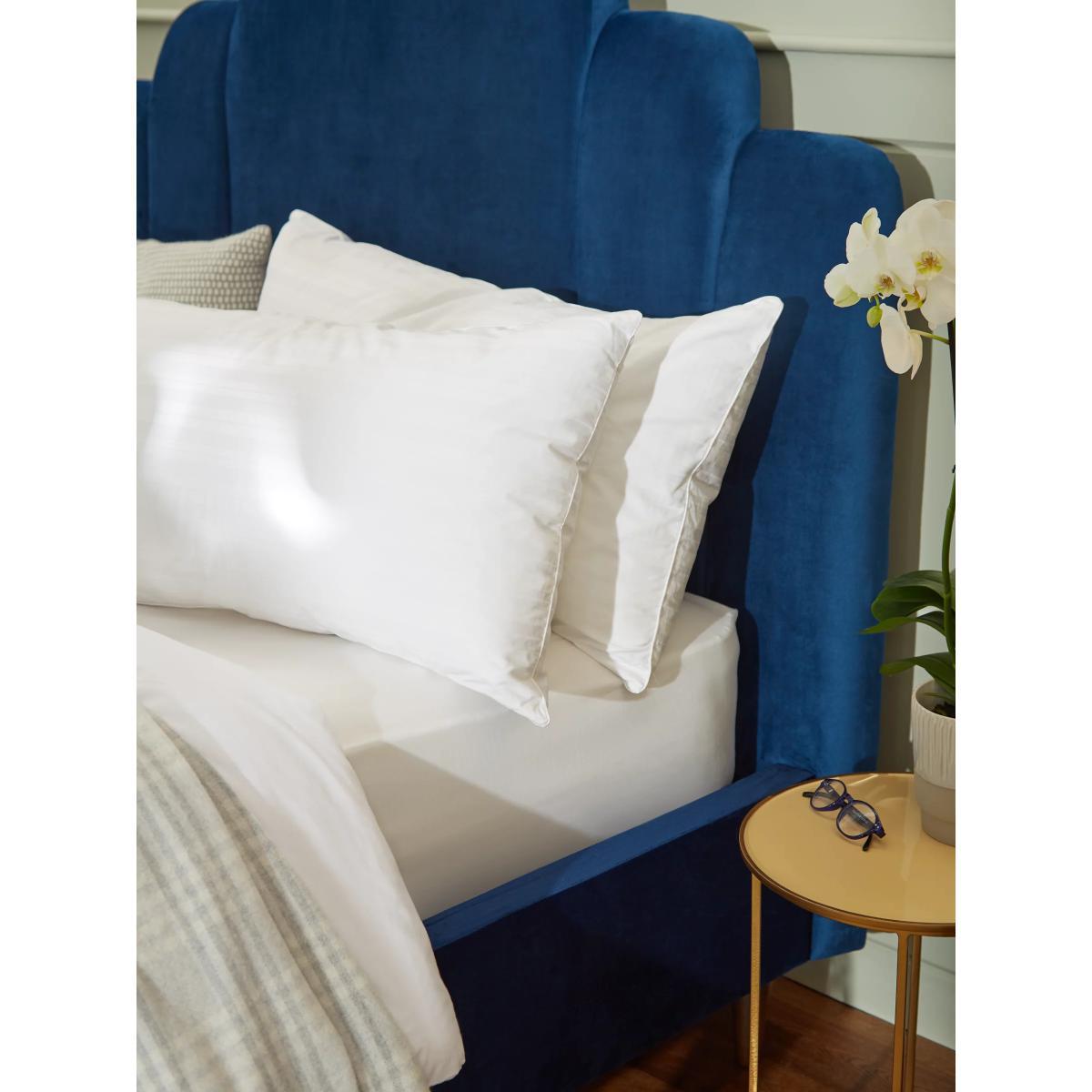 Perfect for those who sleep on their back or side, this pillow helps keep your spine aligned for a comfortable and undisturbed night sleep. With a greater ratio of feathers to down, this pillow offers a supportive and comfortable feel that's wonderfully quiet too. The Nomite™ mark means it's suitable for people with dust mite allergies. Made by us at our textile factory in Lancashire Since 1953, our expert Partners have designed and manufactured a range of high-quality textiles at our UK factory, Herbert Parkinson. This includes our naturally filled bedding and Made to Measure 7-day service for curtains, blinds and cushions. Combining traditional handmade processes with state-of-the-art technology, our skilled Partners see each product through the entire creation process, ensuring it meets the design and quality standards we’re known for. We want you to be as proud of it as we are. Herbert Parkinson also offers a range of bespoke services, so if you can’t see exactly what you’re looking for or have specific requirements, do visit one of our shops and a Partner will be able to advise. You can find more about our factory in Lancashire here Nomite™ This allows people with dust mite allergies to enjoy natural bedding. Following a hygienic washing and high-temperature drying process, fillings are then sealed in a tightly woven fabric cover which acts as a barrier against dust mites. Micro-Fresh® Proven to prevent the growth of odour causing bacteria by up to 99.99%, Micro-Fresh® keeps this product fresher for longer, wash after wash. All of our natural bedding suppliers provide us with a guarantee that their feather and down is sourced only as a by-product of the food industry. In addition, they're monitored to ensure they practice the highest standards of animal welfare. Find out more about our animal welfare policy. Prolong the life of your new pillow with a pillow protector. Shop here.