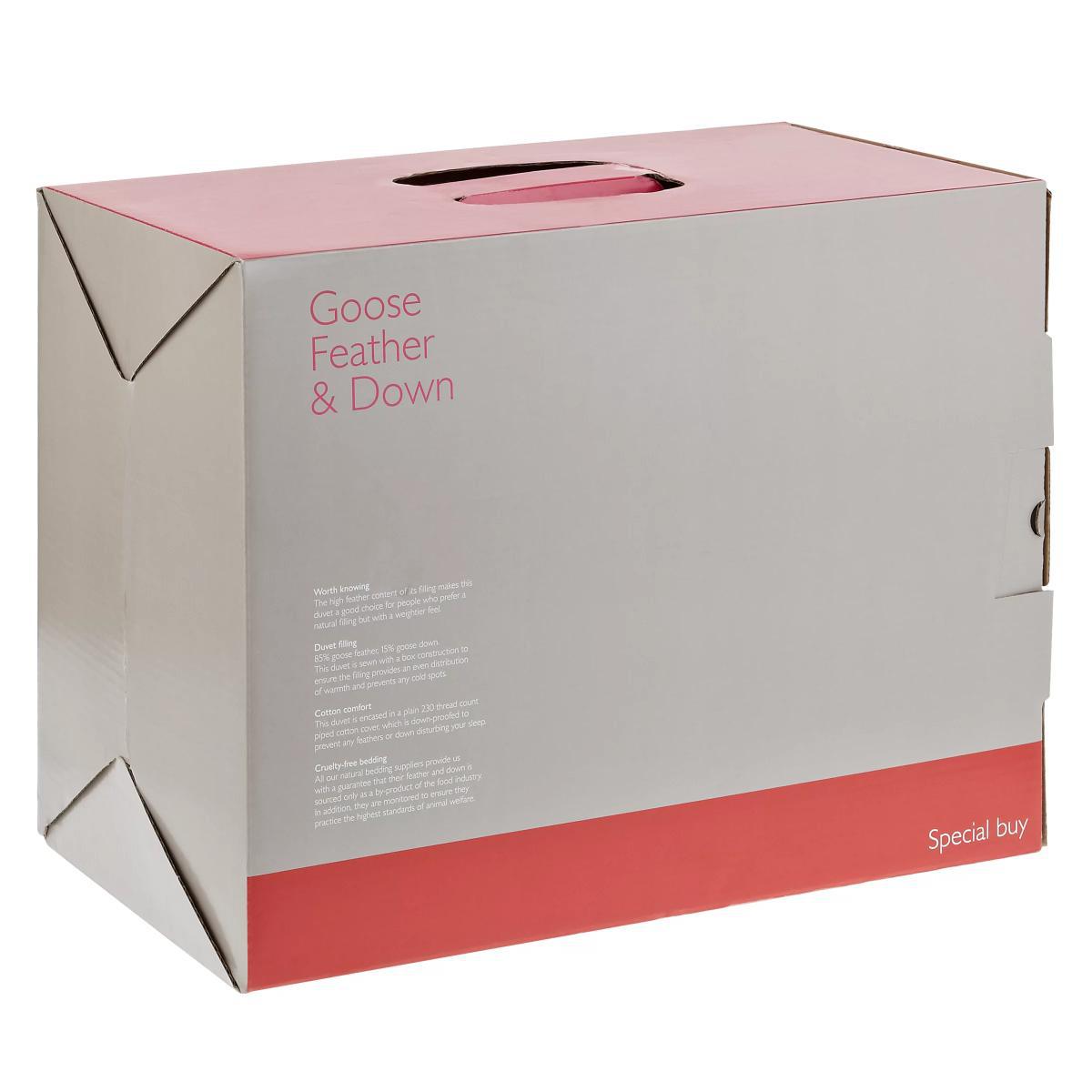 Ideal for colder months, this duvet is filled with goose feathers and down. Goose down clusters are warmer than duck, while the higher ratio of feathers to down gives a cosy, weightier feel. Our versatile all-seasons duvets feature two duvets with different togs, which can be joined together or taken apart to provide the perfect level of warmth throughout the year. Products labelled with the DOWNPASS logo guarantee high quality and the certainty that down and feathers used as filling material are ethically sourced and come from tightly controlled and traceable supply chains. In addition, the quality of all products is monitored by independent testing institutes. Nomite™ This allows people with dust mite allergies to enjoy natural bedding. Following a hygienic washing and high-temperature drying process, fillings are then sealed in a tightly woven fabric cover which acts as a barrier against dust mites. Suitable for Regular Washing Washable at 40°C, allowing for an effective clean that's much kinder to the environment. Cruelty Free All of our natural bedding suppliers provide us with assurance that their feather and down is sourced only as a by-product. In addition, they're monitored to ensure they practise the highest standards of animal welfare. Have you thought about a new pillow? Shop. We like it because Special buy: These products are special because we negotiate exclusive discounts with our suppliers and pass the savings on to you. They're limited, either in quantity or for a period of time, but they'll always give you excellent quality at an exceptional price. Just for our Sale, we're offering this duvet with an 85% goose feather and 15% goose down filling, at a very special price. Available while stocks last.