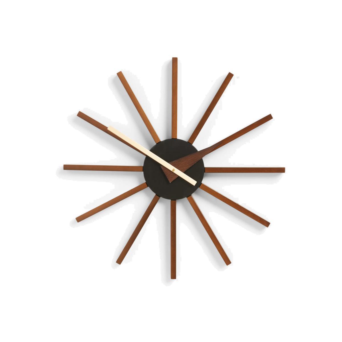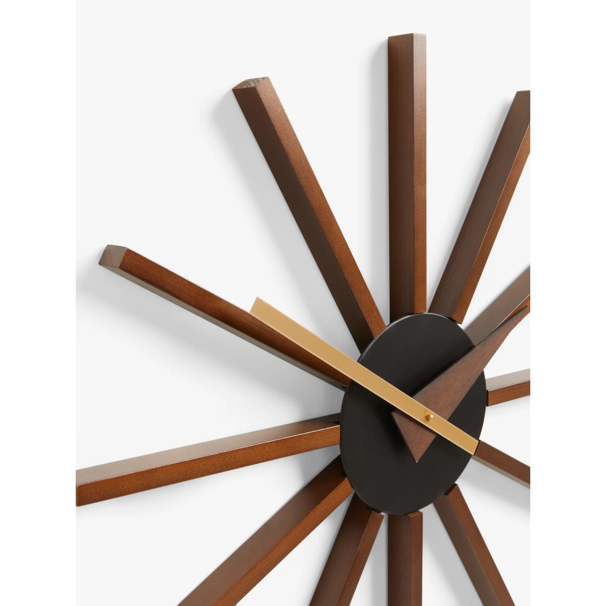 A minimalist retro-inspired design, this wall clock is made of oak wood spokes in a radial shape. It's completed with one wooden clock hand and a contrasting metallic clock hand, creating a geometric look on the dial.