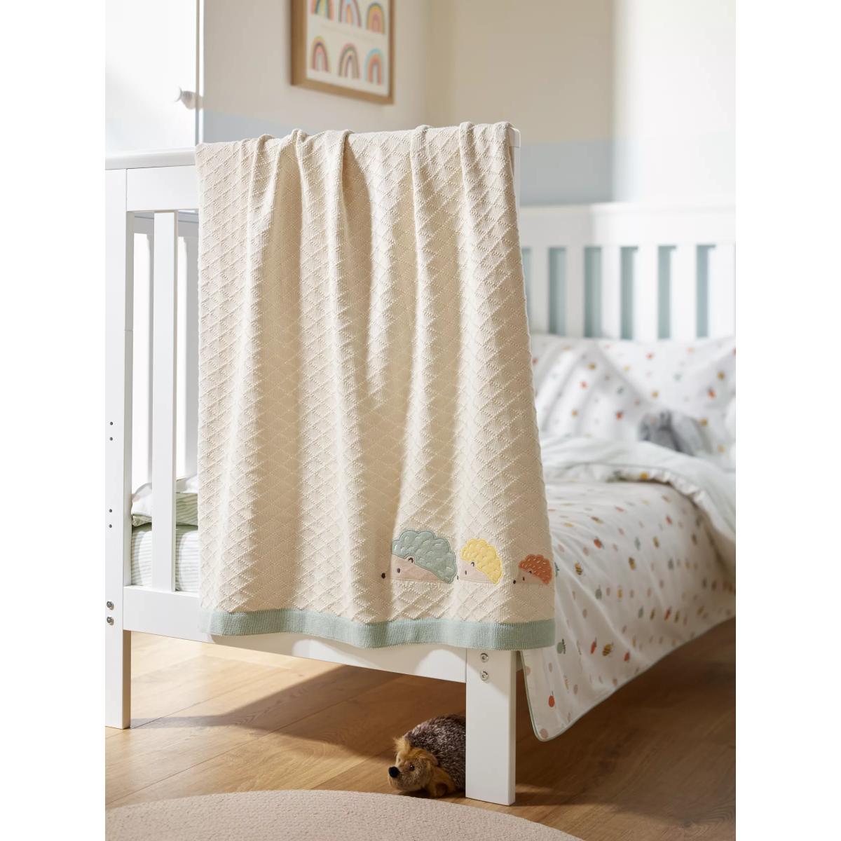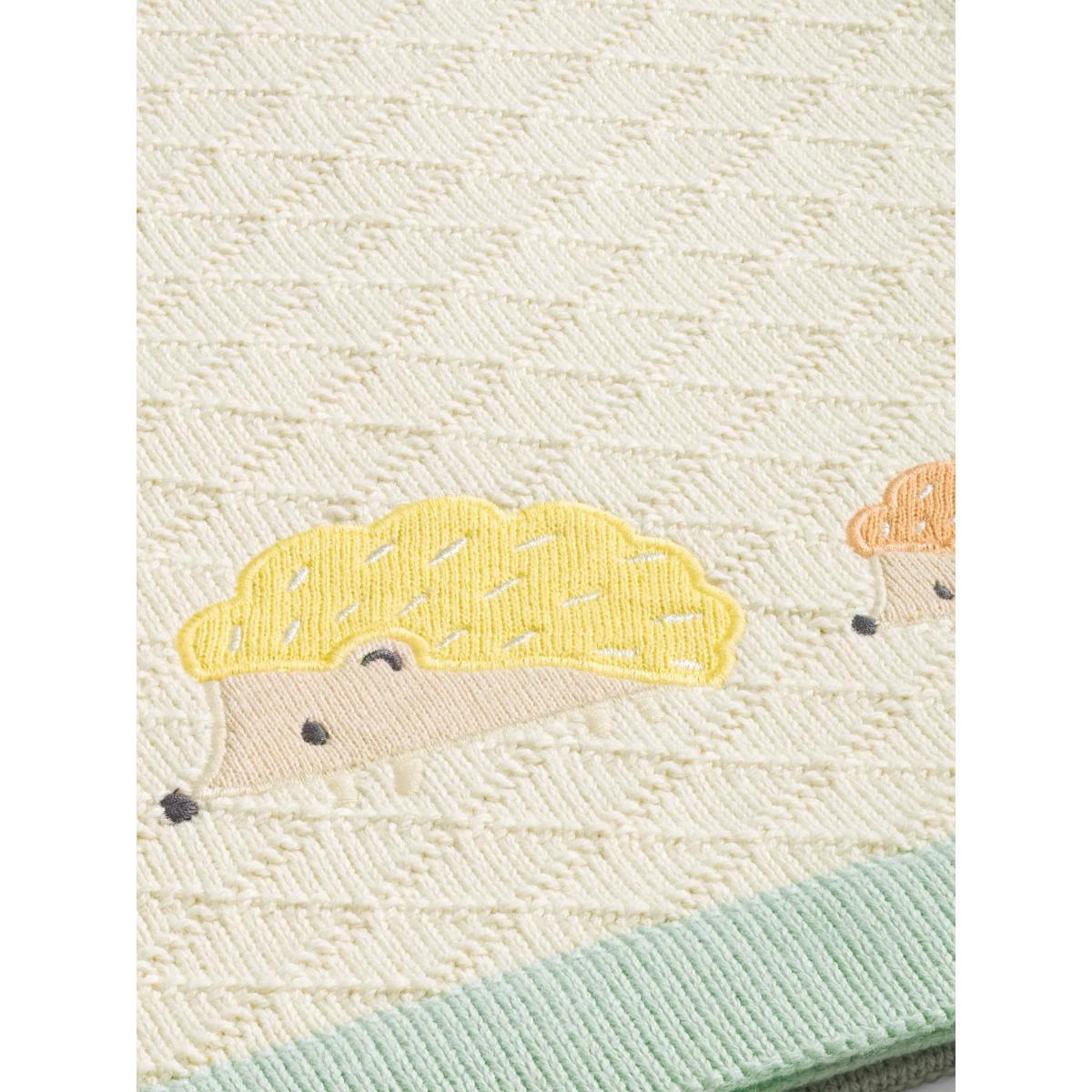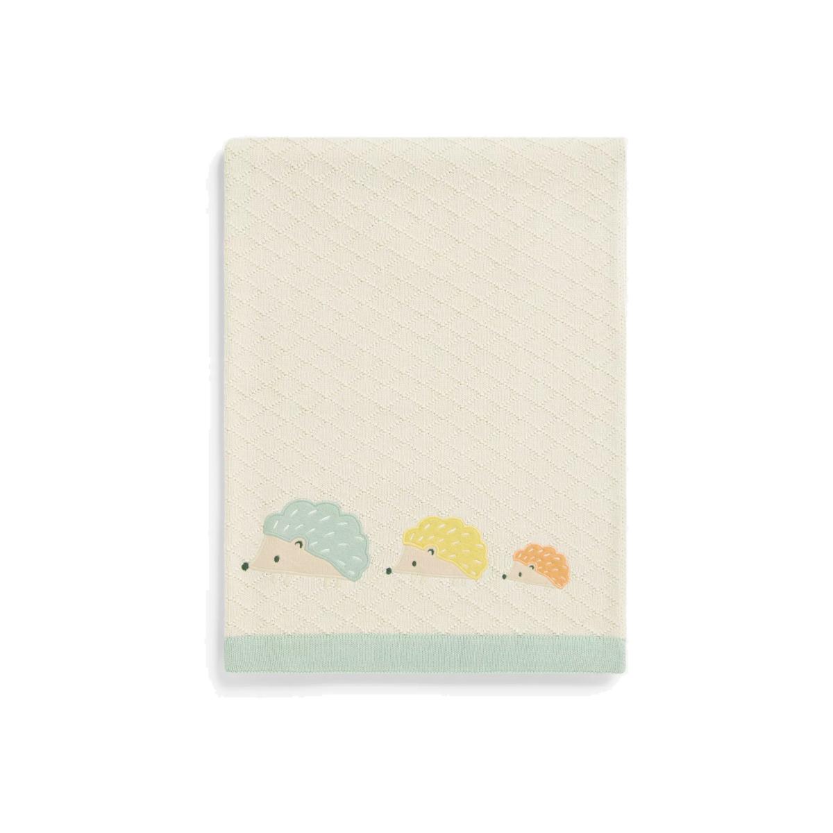 With a cute design made for modern life, this cotton knitted blanket gives your baby a soft, comfortable, and cosy feeling so they can drift easily off to sleep. Part of our Oh My Darling range, this blanket features three adorable applique hedgehogs on a knitted diamond background with a complementary coloured border. Pair with other items in the range for a complete look. Better Cotton By choosing our cotton products, you’re supporting our investment in Better Cotton’s mission to help cotton communities survive and thrive while protecting and restoring the environment. Better Cotton Farmers are farmers who care for the environment and respect workers’ rights and wellbeing. This product is sourced via a system of mass balance and therefore may not contain Better Cotton. bettercotton.org/massbalance