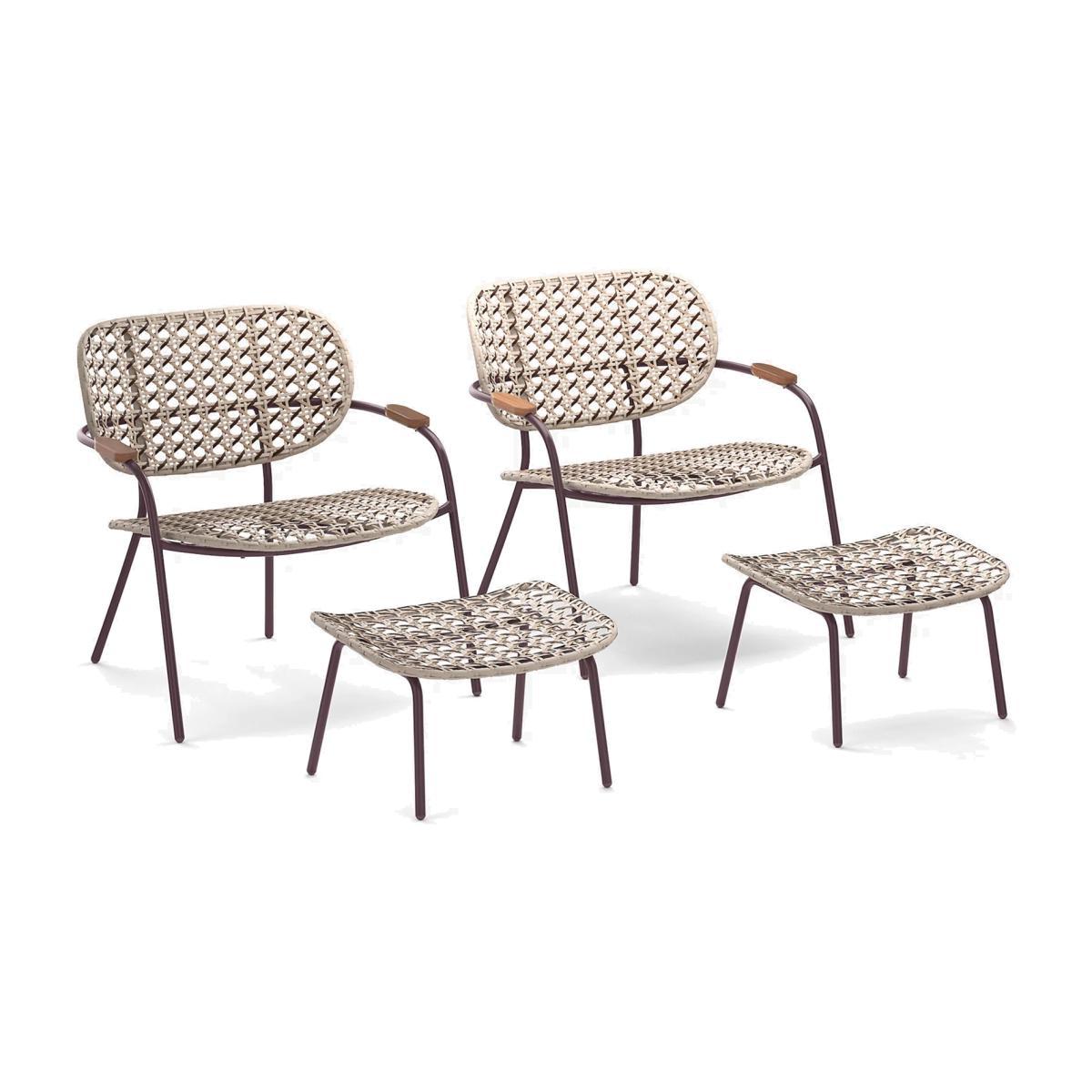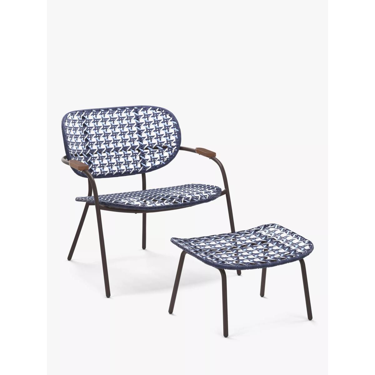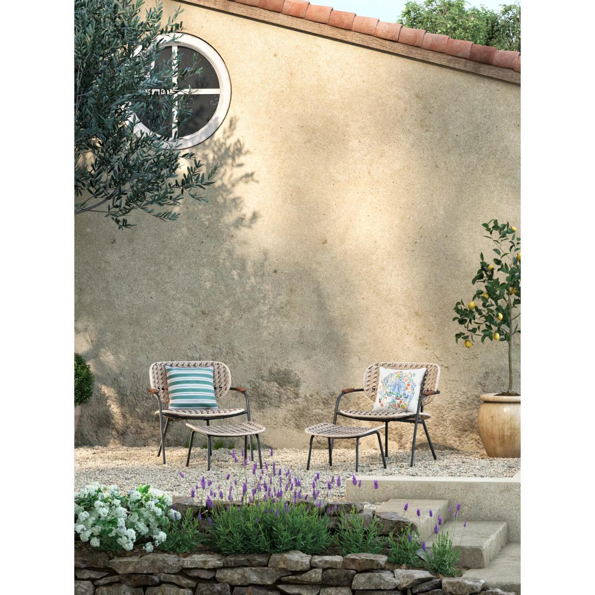 A pair of Open Weave armchairs and matching footstools for the garden or conservatory. This design is made with weather-resistant powder-coated steel frames and synthetic wicker, which has the look and feel of traditional rattan garden furniture but with long-lasting quality. Easy to maintain, the furniture is robust and each chair can withstand a weight of 110kg. Good to know: The range is durable and for outdoor use all year round. As a precaution, we recommend you cover the furniture during adverse weather. Key features: Pair of garden armchairs and matching footstools Synthetic rattan design Wood-effect armrests Robust powder-coated steel frames with cast iron effect Want to see it first? You may want to see and get a feel for the product in one of our shops before ordering. We'll be able to tell you where the range you'd like to view is on display.