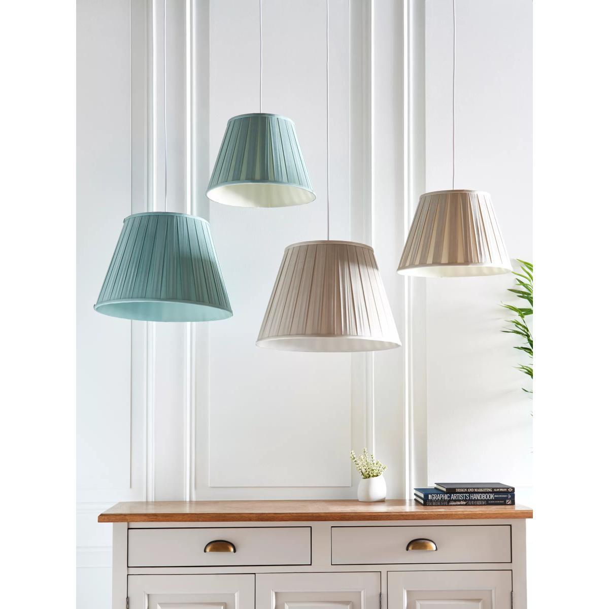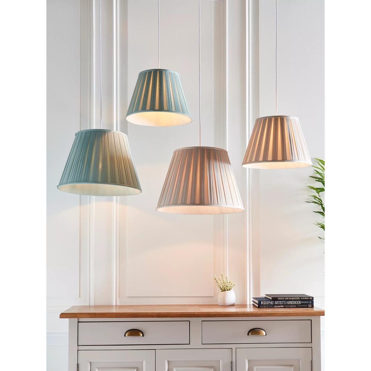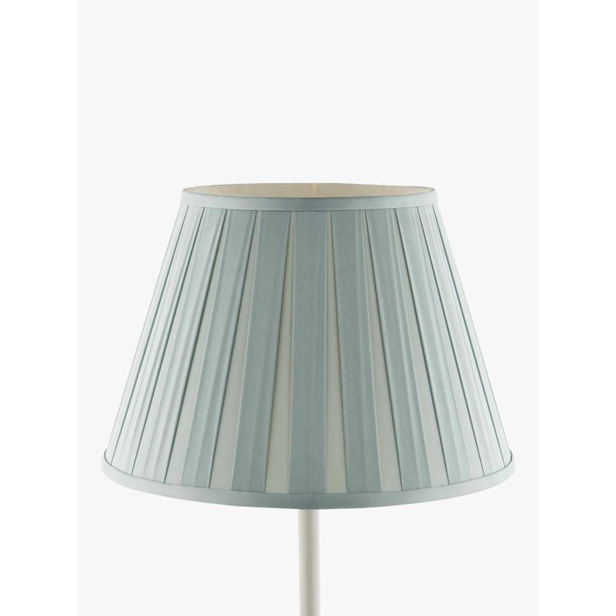 Made from a high-quality, medium-weight Dupiono silk, our Oratorio lampshade is suitable for both ceiling lights and lamp bases. Its tapered shape features wide pleat detailing with a crepe trim at the top and bottom, and it's lined in the same colour to enhance a warm and concentrated glow of light. The silk has been formed from a plain weave, where two cocoons naturally adjoined. Thanks to this natural design, any textural irregularities are characteristic of its closely weaved construction. Dimension breakdown: Dia.20cm = H13 x bottom dia.20 x top dia.12cm Dia.25cm = H18 x bottom dia.25 x top dia.16cm Dia.30cm = H20 x bottom dia.30 x top dia.18cm Dia.35cm = H23.5 x bottom dia.35 x top dia.21cm Dia.41cm = H27 x bottom dia.41 x top dia.25cm Dia.45cm = H30 x bottom dia.45 x top dia.27cm Dia.50cm = H33 x bottom dia.50 x top dia.27cm Worth knowing Small lampshade sizes are made with a reversible gimble. The Dia.45cm and Dia.50cm lampshades have fixed arms and require a lampshade spider or carrier ring to ensure a stable fit. Both are available to purchase separately, explore our options. Good to know Our straight-sided, or drum lampshades are well-paired with modern lamp bases, while tapered lampshades work well with classic style bases. You can shop our range of lamp bases here