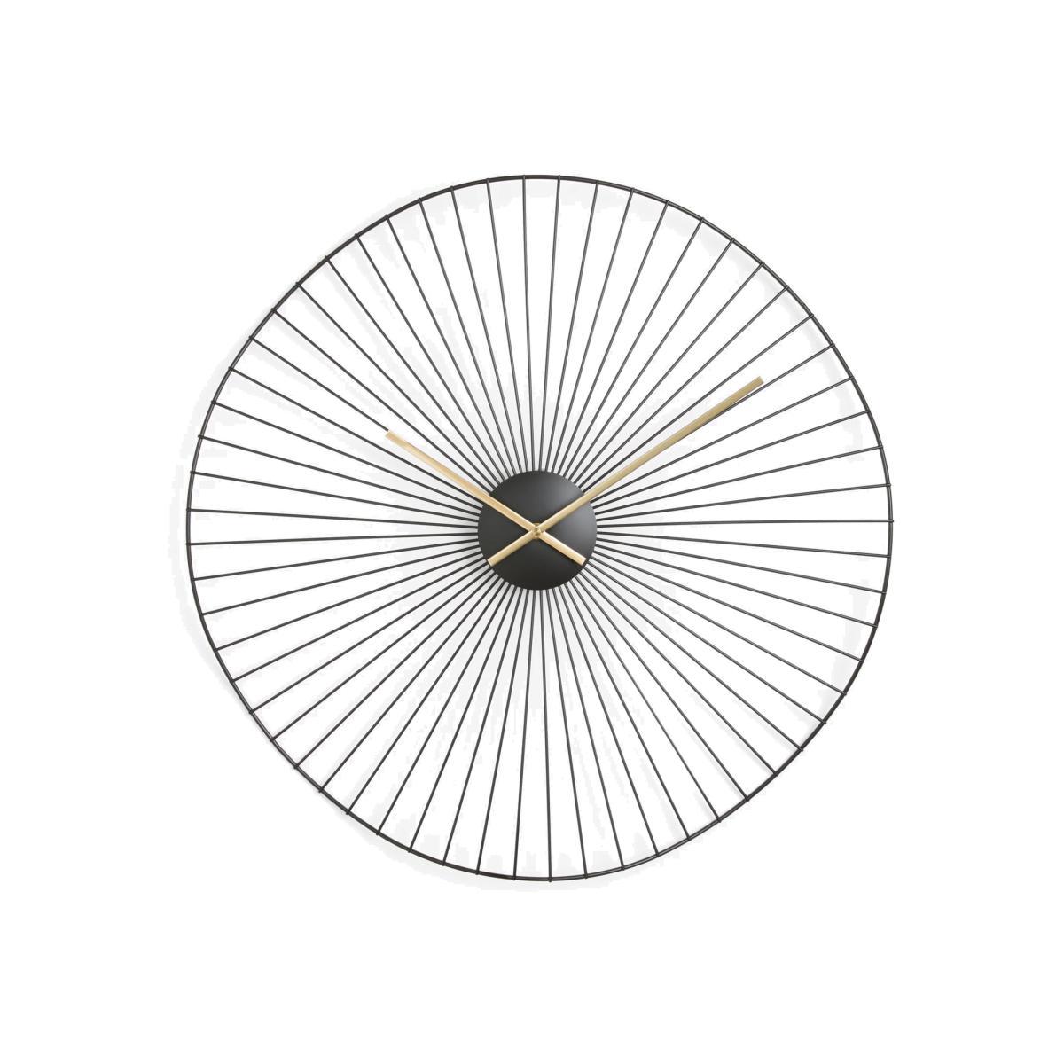 A contemporary design, this analogue wall clock has an organic, flower-like shape. Metal lines draw the eye to the centre clock face with its contrasting hands.