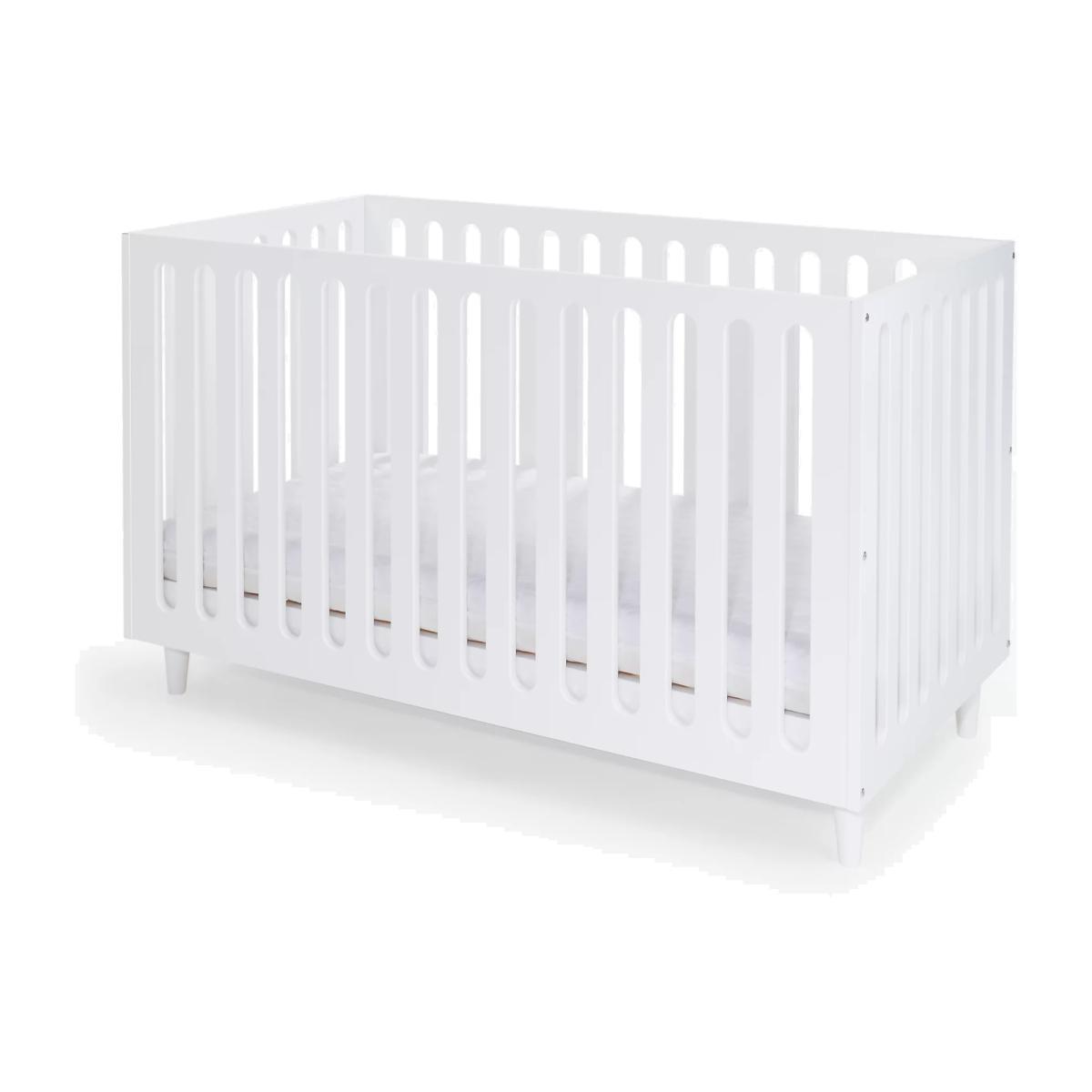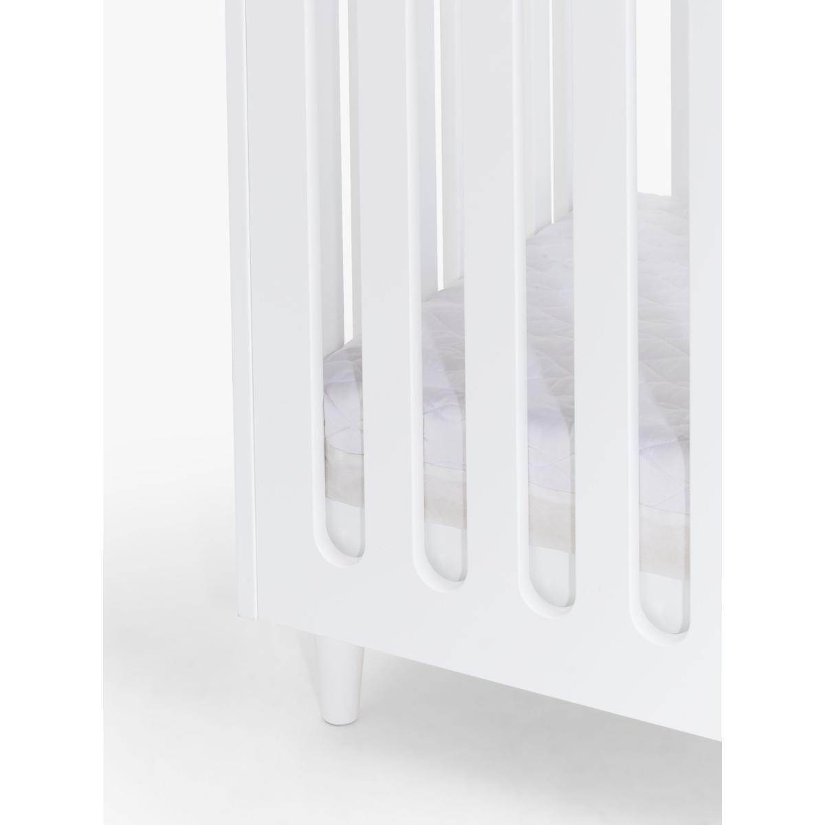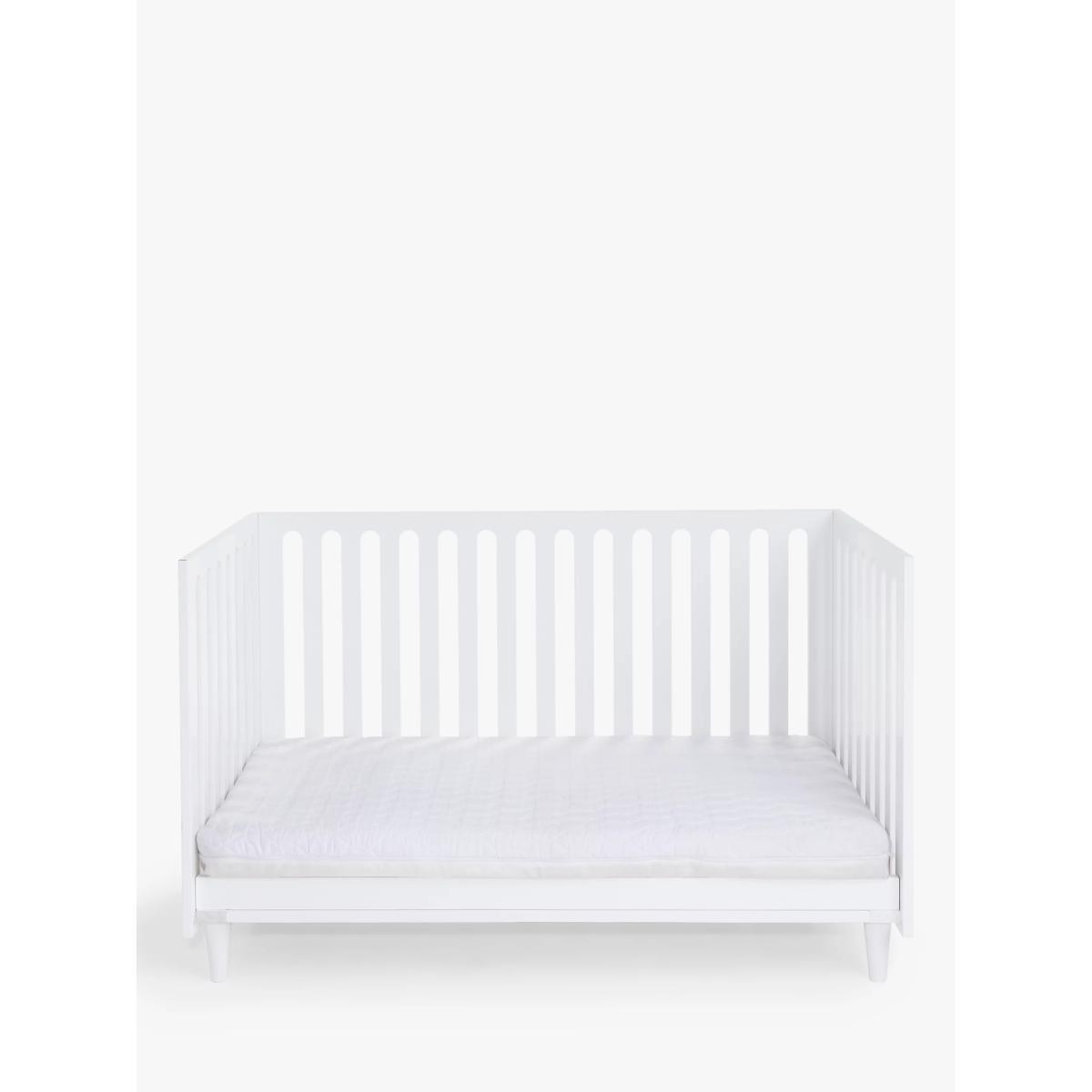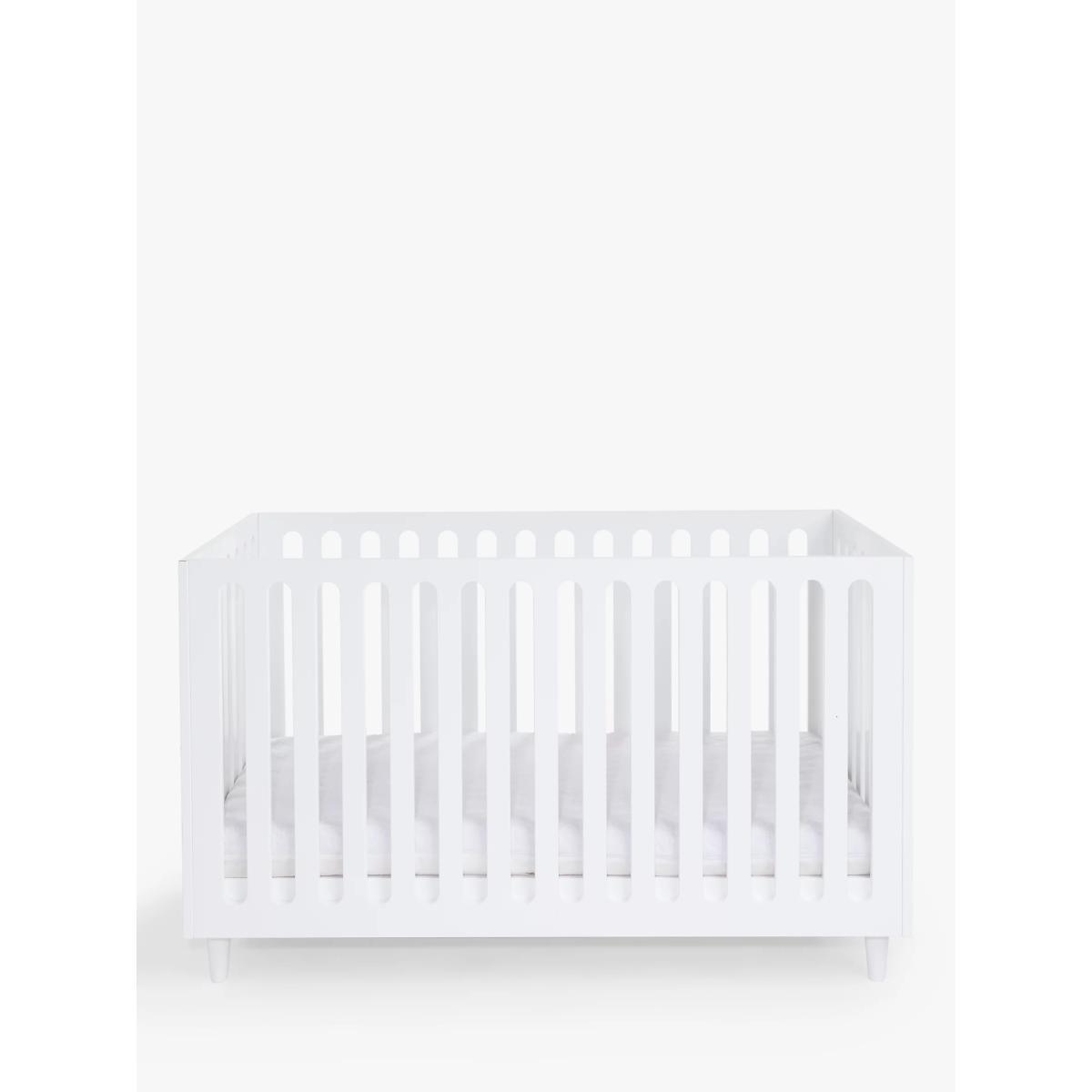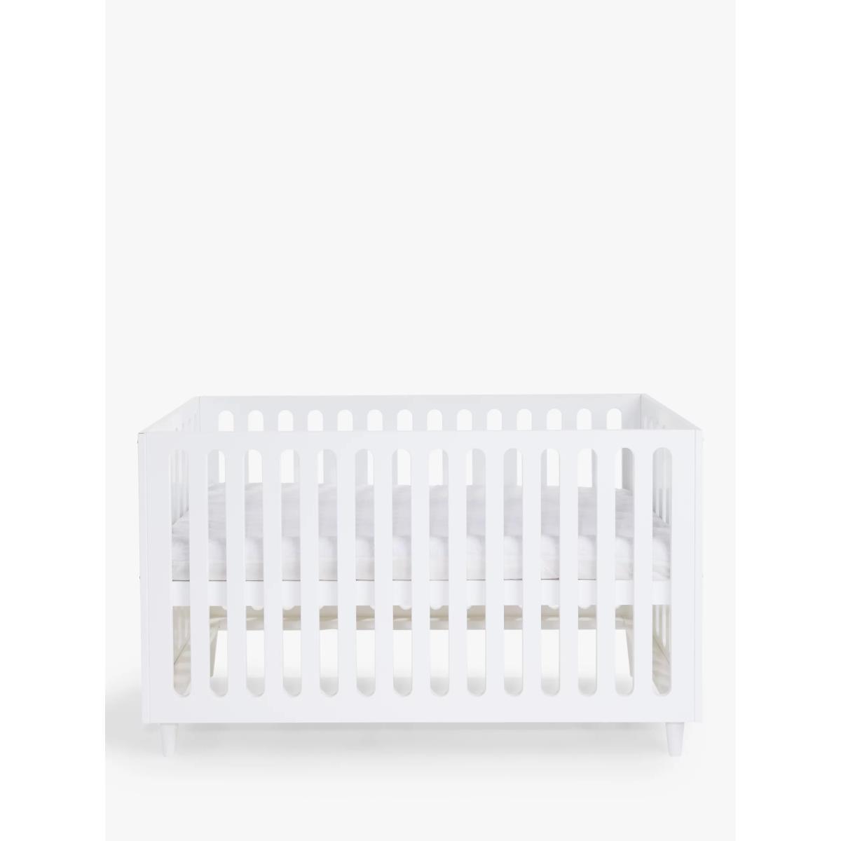 Made from FSC accredited pine wood, our John Lewis & Partners Ovum cotbed offers a contemporary style with a unique shape and simplistic design. It features laser-cut wood that creates the effect of slats and a space under the cot acts as a storage solution for those who may be tight on space. Able to grow with your child, it has 3 mattress base positions that can be adjusted to suit as your child goes from newborn to toddler. It can also be converted into a toddler bed. Pair with the matching Ovum dresser to complete your nursery decor. This cot bed requires a standard 140 x 70cm mattress (sold separately).
