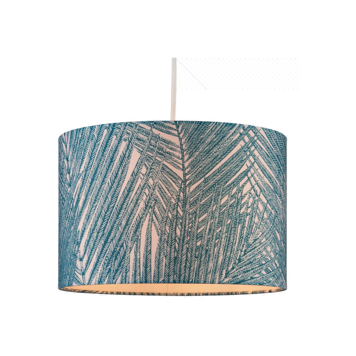 Redesign your table lamp or ceiling fitting with our vibrant Palma lampshade. Made from fabric and designed with a palm print in contrast colours, we've also lined it in the contrast colour to enhance a warm glow when your light is switched on. The gimble is accented with plated pewter for a modern finish. Good to know Our straight-sided, or drum lampshades are well-paired with modern lamp bases, while tapered lampshades work well with classic style bases. You can shop our range of lamp bases here