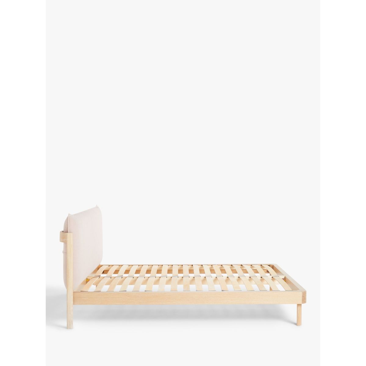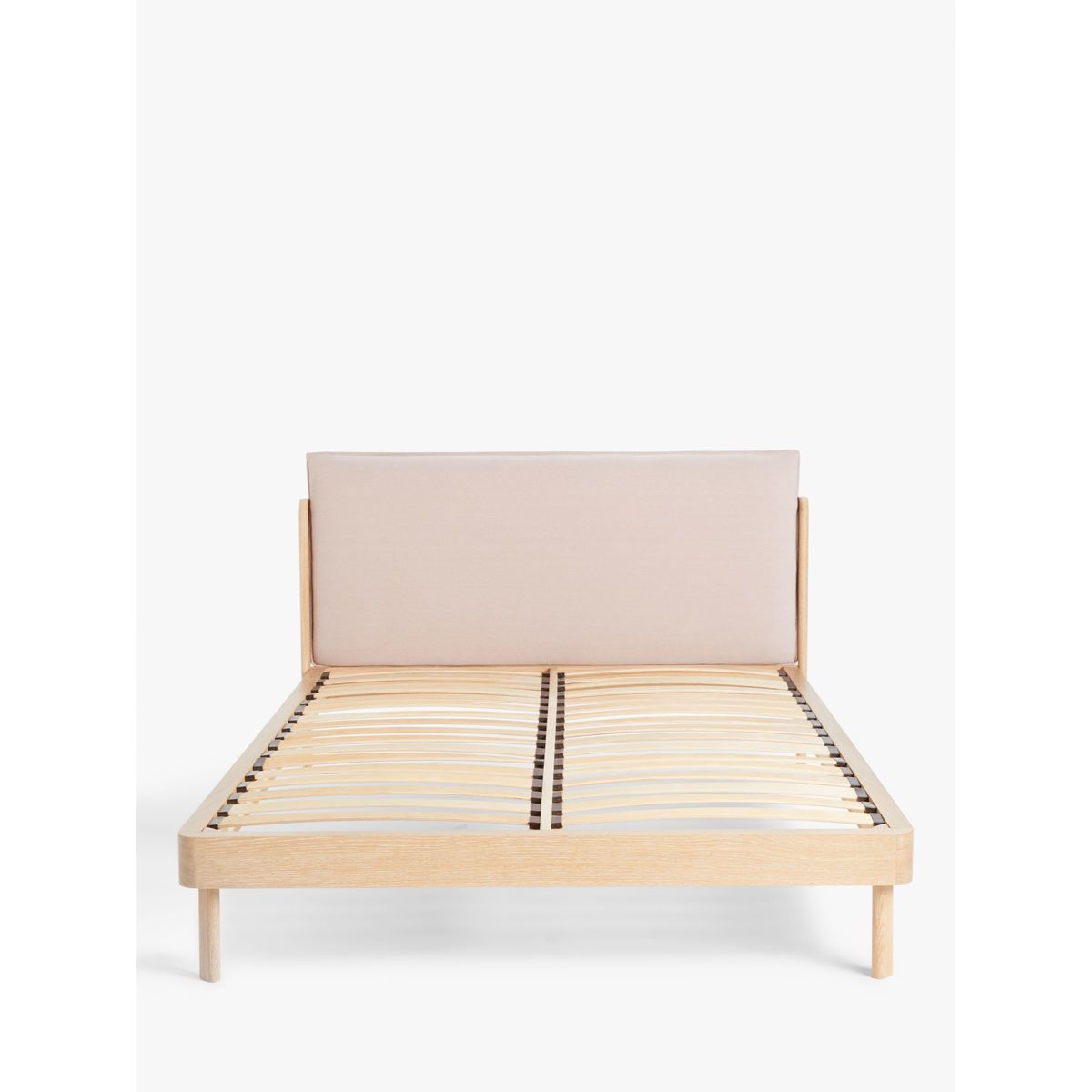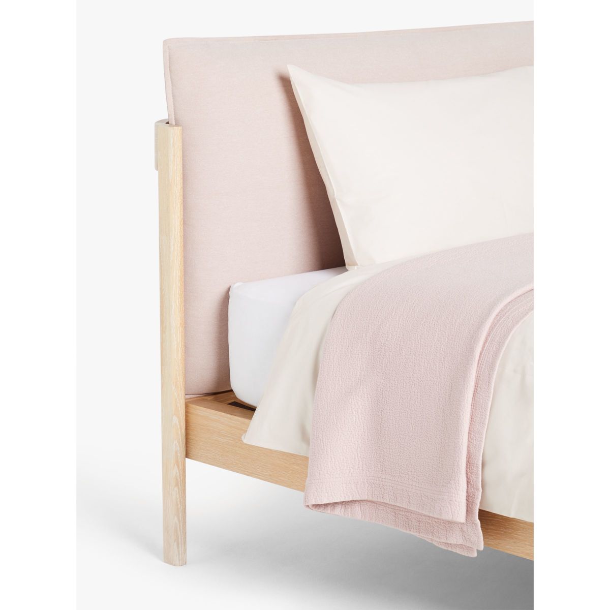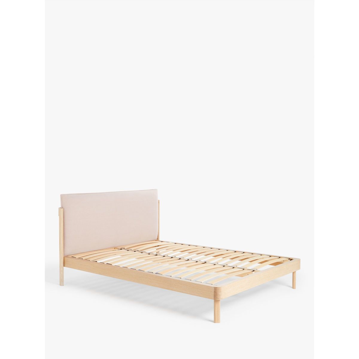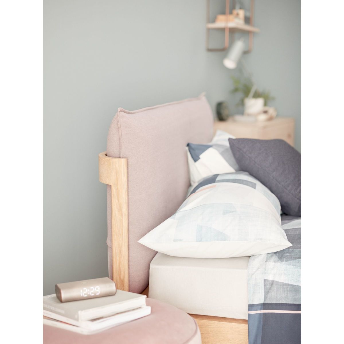 Made predominantly from solid American White Oak, our Pillow bed frame combines hard-wearing materials with a comfort-led design. Lending a contemporary, relaxed feel, the upholstered fabric headboard is well-padded for comfort, while the sturdy wooden frame is finished in a matt lacquer for durability. Sprung slats ensure additional support for you and your mattress.