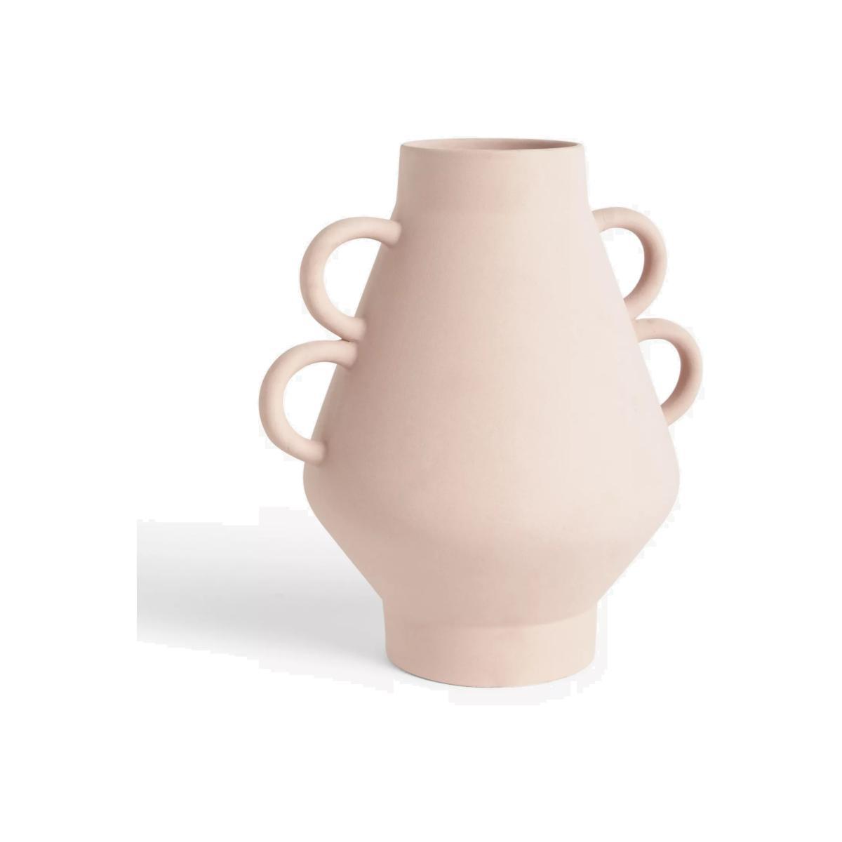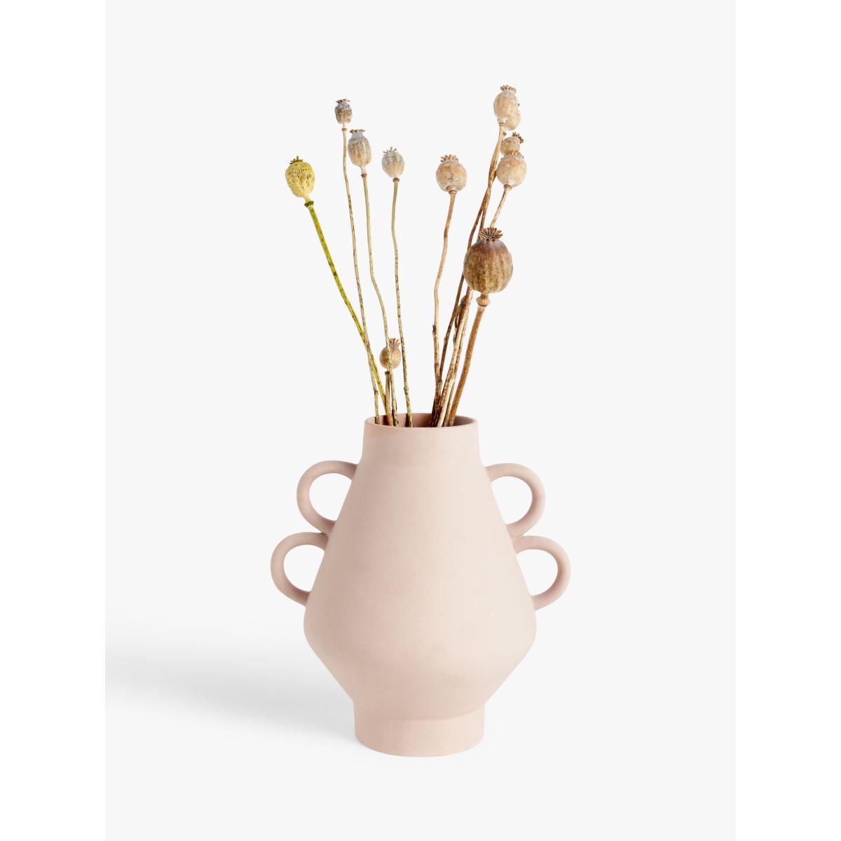 I love this pink vase for its bold yet versatile look. It works beautifully in contemporary or minimalist interiors, adding a subtle pop of colour without overpowering the space. Its distinctive shape and multiple handles make it a statement piece on its own, but it can also be styled simply with fresh or faux flowers for a more relaxed feel. Practical tips include pairing it with neutral-toned interiors to let the colour stand out, or mixing it with other soft pastel accents for a cohesive look. Its size makes it ideal as a standalone feature on a sideboard, mantel, or dining table, offering both functionality and style.