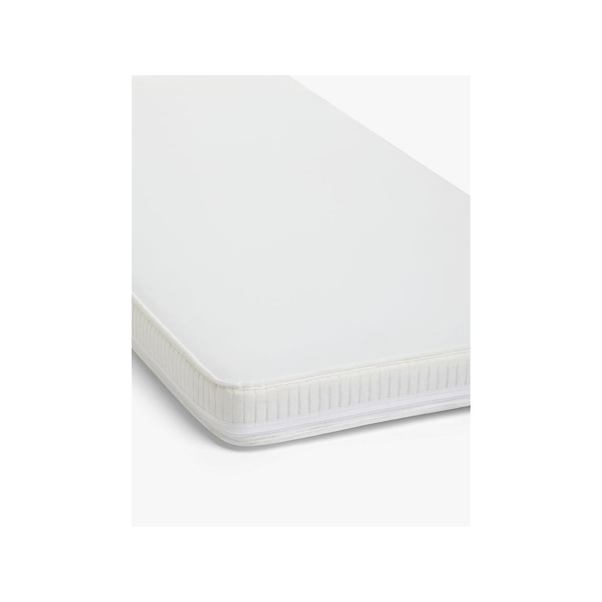 Essential for growth and development, sleep plays an important part in your baby's early years. Crafted from traditional open coil springs, our cot bed mattress provides all the support and comfort your baby needs to sleep well. The springs are cushioned by layers of baby-safe fibre for extra comfort as your baby sleeps. Easy to clean, the top cover can be zipped off and machine washed at 40°C whilst a wipeable cover protects the mattress core. Durable, comfortable and supportive, it is designed to last from birth up to approximately 3.5 years old making this a great investment in your little one's sleep. Key Features: Perfect for babies from birth up to 3.5 years old Individual pocket springs provide support Wipeable cover protects the mattress core Cover can be machine washed at 40°C Good things to note when buying your mattress: Always check the mattress size you've bought is the correct one for the size of your cot/cotbed before removing from the packaging. Please ensure to always store the mattress flat or in the cot/cotbed, not upright. Due to the nature of shipping, (once the packaging has been removed and safely disposed of) please allow 24-48 hours for the mattress to settle before use. Please check that any fitted sheets used are the correct size for the mattress. Sheets that are too tight may compress the mattress, leaving a larger than is safe gap between the mattress and the cot. This also applies to sheets that may have shrunk in the wash. Always position your mattress in the centre of your cot so that there is no more than a 30mm gap between the cot and the mattress on the side, top, or bottom, once it has fully expanded. This allows the mattress to settle in use and leaves space for bedding. A gap on any side under 30mm is considered safe and acceptable.