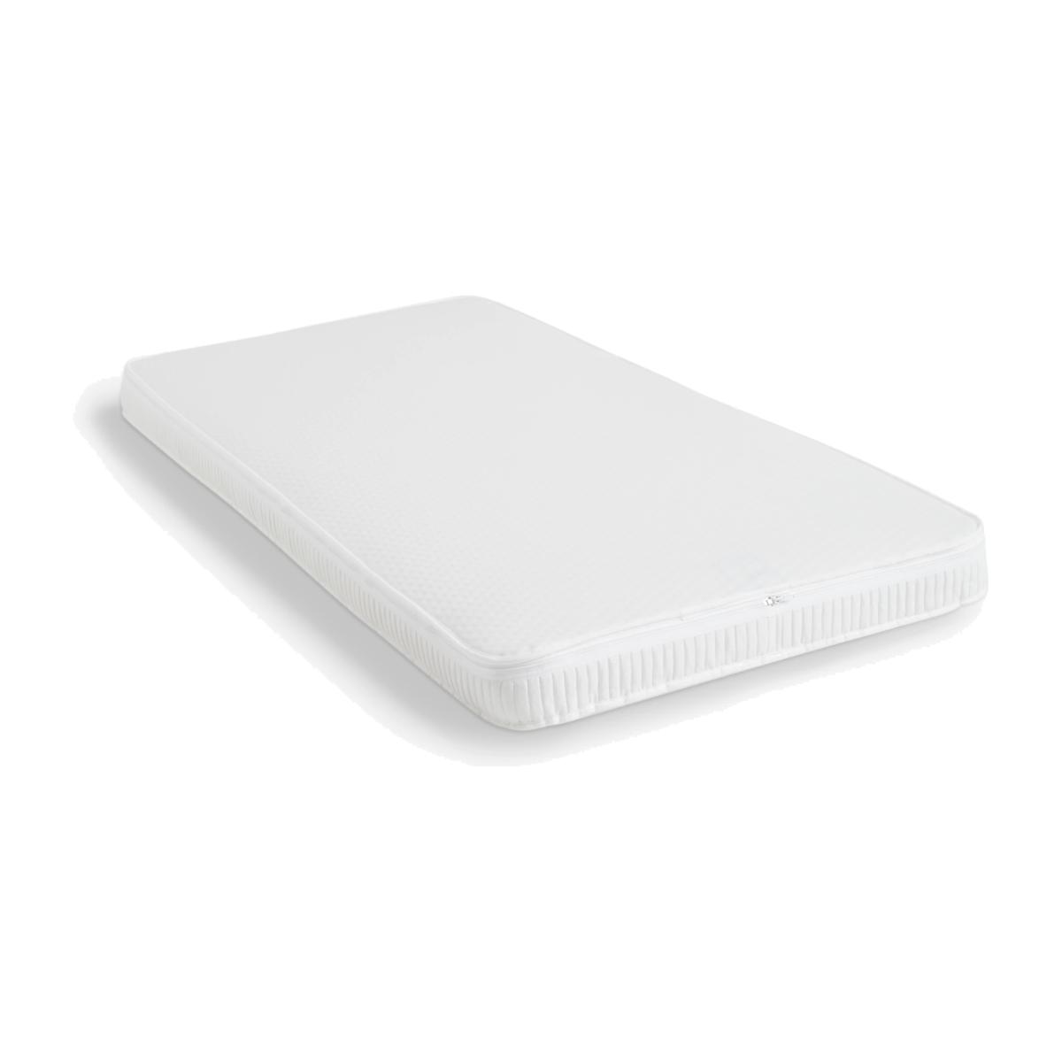 Essential for growth and development, sleep plays an important part in your baby's early years. Our open coil spring cot bed mattress provides all the support and comfort your baby needs to sleep well. Crafted from individual pocket springs, these clever springs work independently to provide support where your baby needs it most. They're cushioned by layers of baby-safe fibre for extra comfort as your baby sleeps. Easy to clean, the top cover can be zipped off and machine washed at 40°C whilst a wipeable cover protects the mattress core. Durable, comfortable and supportive, it is designed to last from birth up to approximately 5 years old making this a great investment in your little one's sleep. Key Features: Perfect for babies from birth up to five years old Individual pocket springs provide tailor-made support Wipeable cover protects the mattress core Cover can be machine washed at 40°C All our John Lewis cot/cotbed mattresses are tested to BS7177 and BS EN 16890 safety standards. Good things to note when buying your mattress: Always check the mattress size you’ve bought is the correct one for the size of your cot/cotbed before removing from the packaging. Please ensure to always store the mattress flat or in the cot/cotbed, not upright. Due to the nature of shipping, (once the packaging has been removed and safely disposed of) please allow 24-48 hours for the mattress to settle before use. Please check that any fitted sheets used are the correct size for the mattress. Sheets that are too tight may compress the mattress, leaving a larger than is safe gap between the mattress and the cot. This also applies to sheets that may have shrunk in the wash. Always position your mattress in the centre of your cot so that there is no more than a 30mm gap between the cot and the mattress on the side, top, or bottom, once it has fully expanded. This allows the mattress to settle in use and leaves space for bedding. A gap on any side under 30mm is considered safe and acceptable.