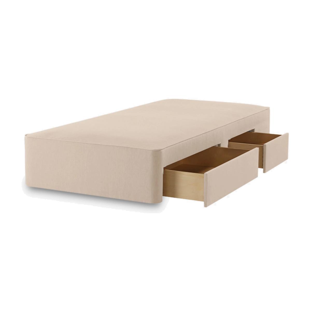 This upholstered divan base is made from sturdy and responsibly-sourced pine wood and features layers of HD pocket springs that provide a responsive foundation for your mattress. Working especially well with a pocket spring mattress, the springs in the base pivot in response to your movements and map to the exact shape of your body, so you feel supported while you sleep and wake feeling refreshed. Two spacious soft-close drawers on one side of the frame are great for extra storage in your bedroom. We've upholstered this divan base in our Topaz fabric which is woven to create a linen-style effect. Want to see it first? You may want to see and get a feel for the furniture in one of our shops before ordering. We'll be able to tell you where the range you'd like to view is on display.