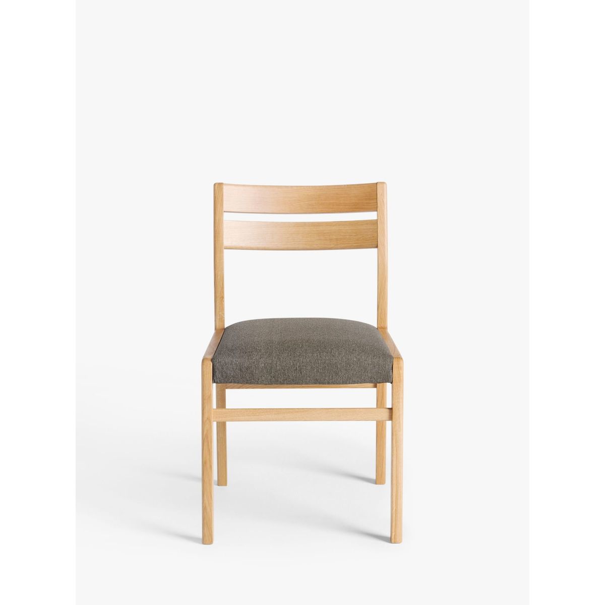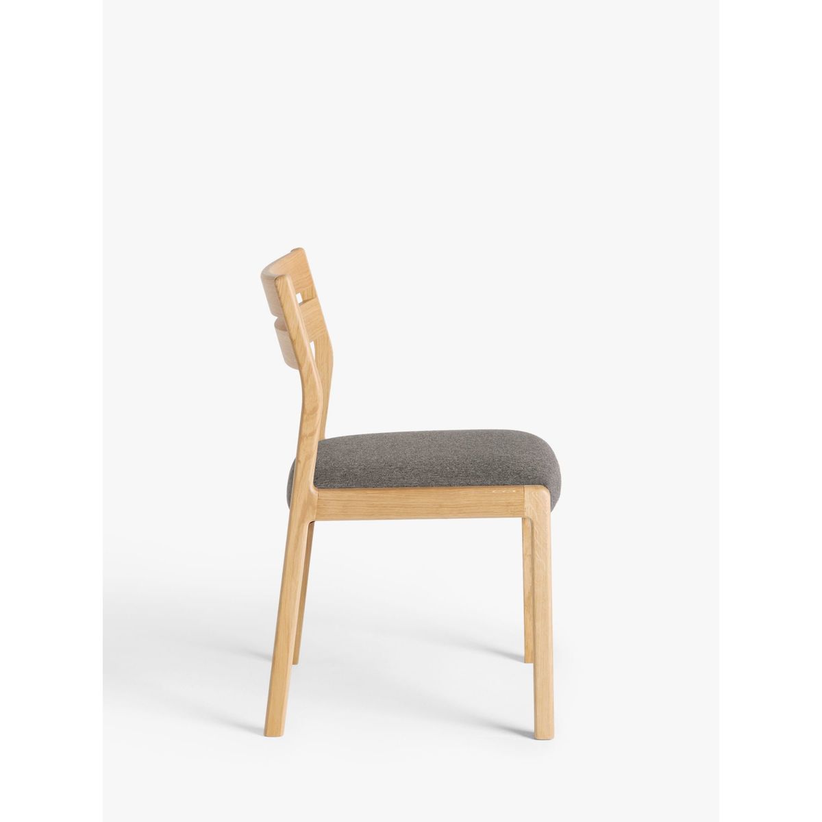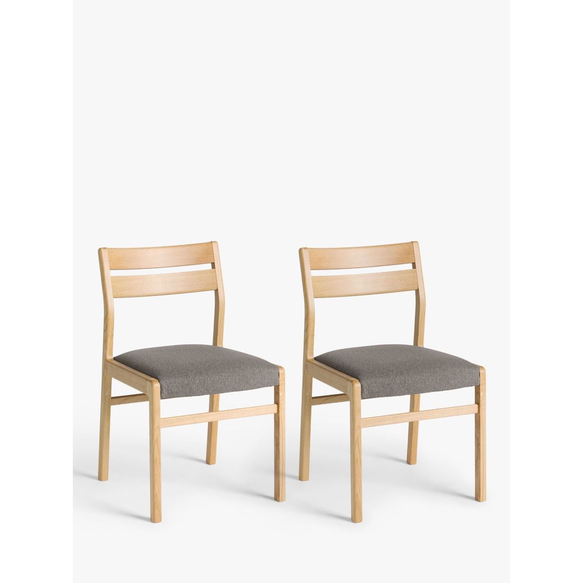 Made from built-to-last solid oak, our Poise dining chairs marry robust design with contemporary appeal. Supplied as a set of two, we've balanced out their solid, functional shape with rounded edges and a natural finish to keep the look clean and modern and draw attention to the warmth of the unique wood grain. For added comfort, the upholstered seat pad is foam-filled for a plump finish. Want to see it first? You may want to see and get a feel for the furniture in one of our shops before ordering. We'll be able to tell you where the range you'd like to view is on display.