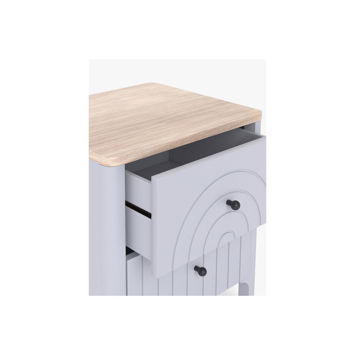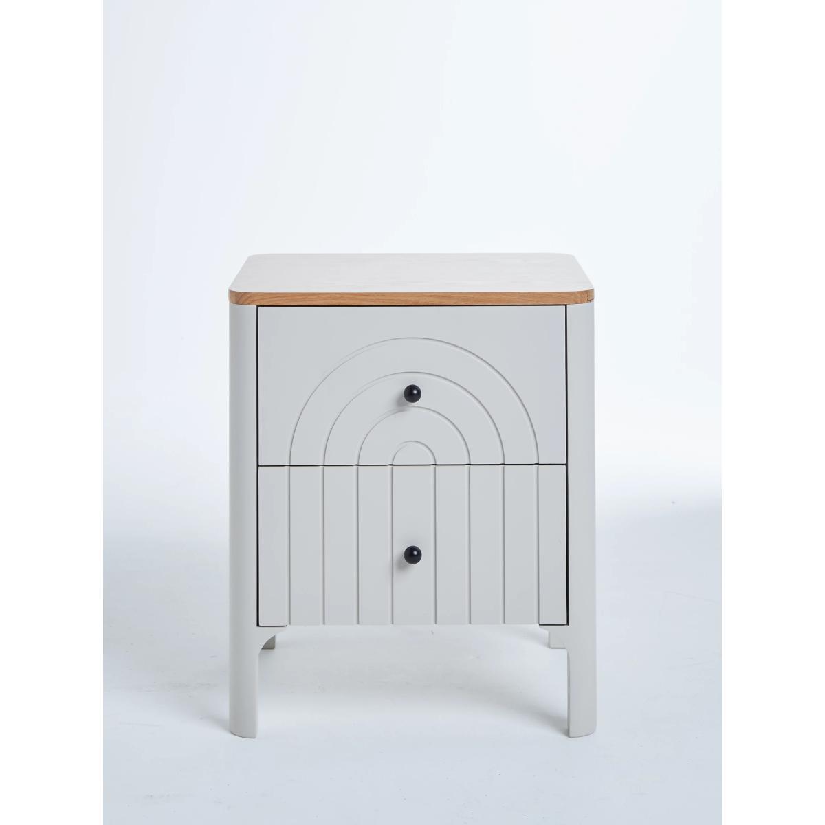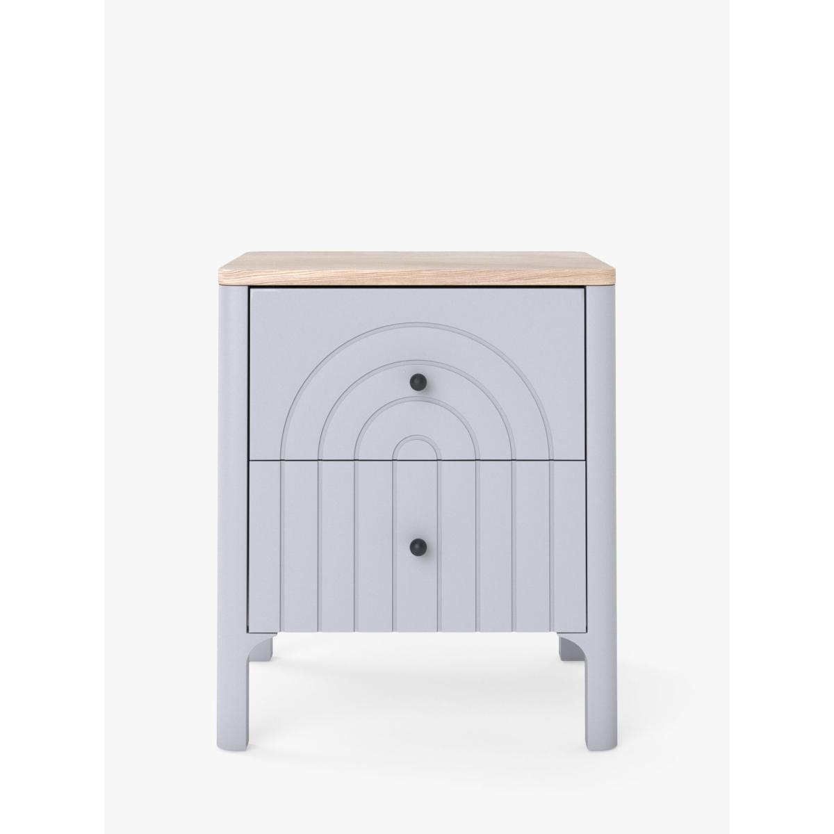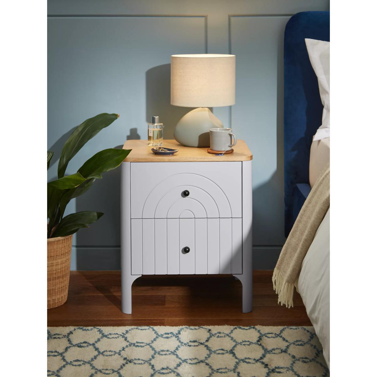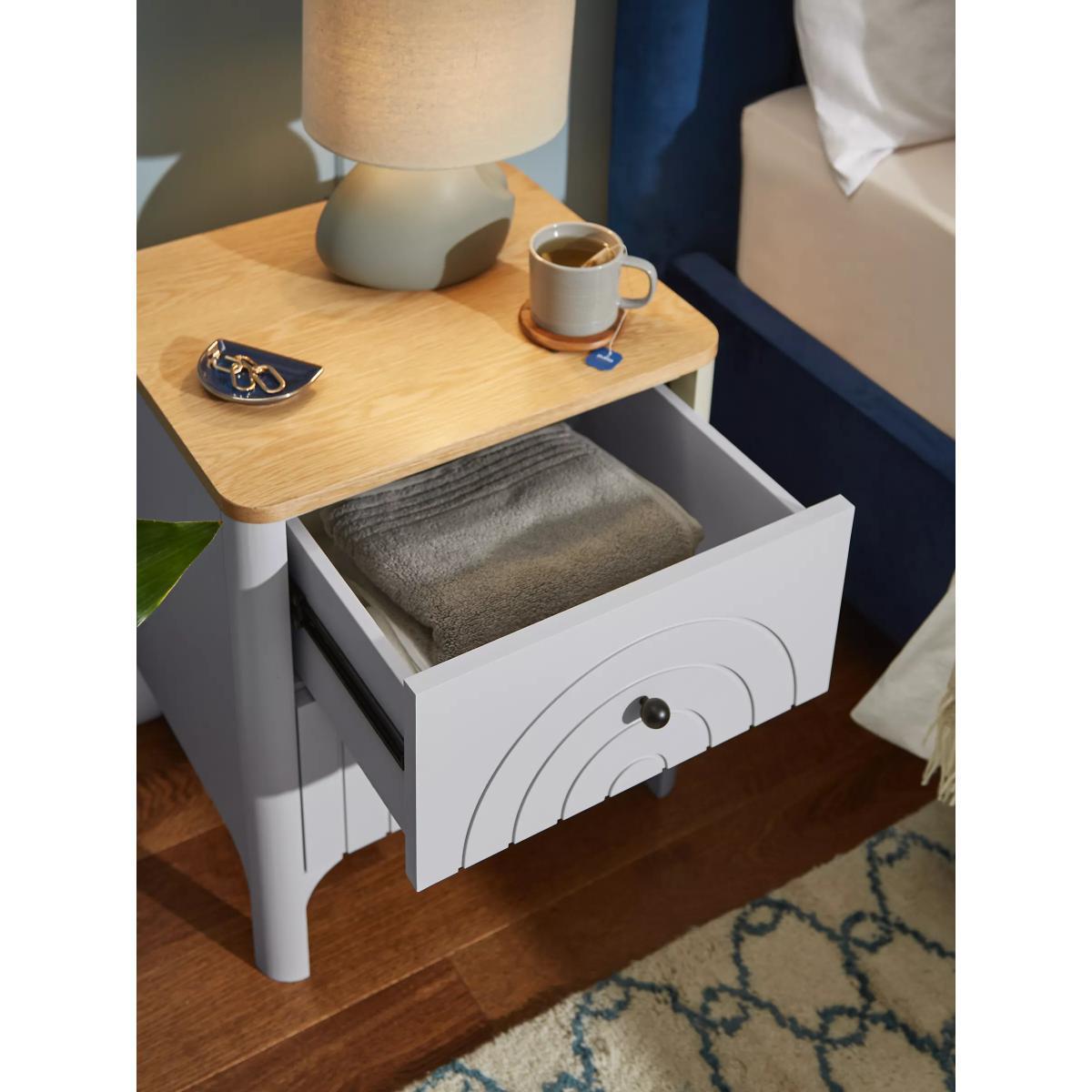 This bedside table gives functional furniture a playful edge. A brilliant addition to yours or your child's bedroom, we've made it from high-quality American oak, poplar wood and MDF, keeping the surface top natural in contrast to the painted frame. We love the rainbow pattern that's been carefully carved across the front as it will add a sweet, tactile quality to your space. Plus, the two deep drawers provide plenty of storage space, just perfect for bedside essentials. Want to see it first? You may want to see and get a feel for the furniture before ordering. Pop into one of our shops to see the full range of colours and fabrics on offer. We'll be able to tell you where the range you'd like to view is on display.