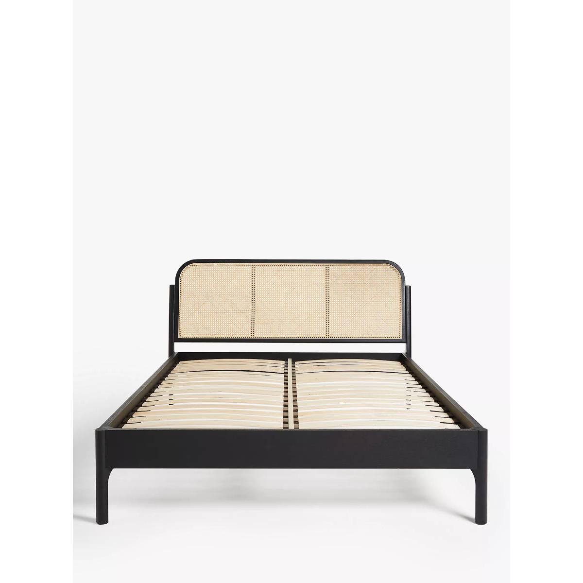 A distinctive design with vintage appeal, our Rattan bed frame is the centrepiece for your traditional, farmhouse-inspired bedroom. Made predominantly from solid European white oak with a touch of robust MDF, its airy, curved cane headboard offers a contrast against the solid, smooth lines of the frame. The Oak version is finished in a matt lacquer for durability, while the Black version has a striking painted finish. An understated, yet sophisticated design, its solid slats provide a firmer base for your mattress. Want to see it first? You may want to see and get a feel for the furniture in one of our shops before ordering. We'll be able to tell you where the range you'd like to view is on display.