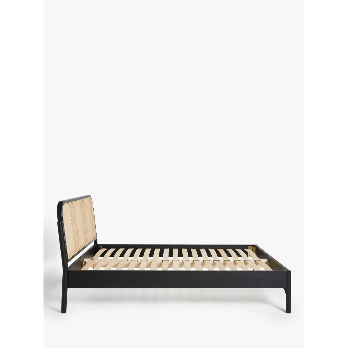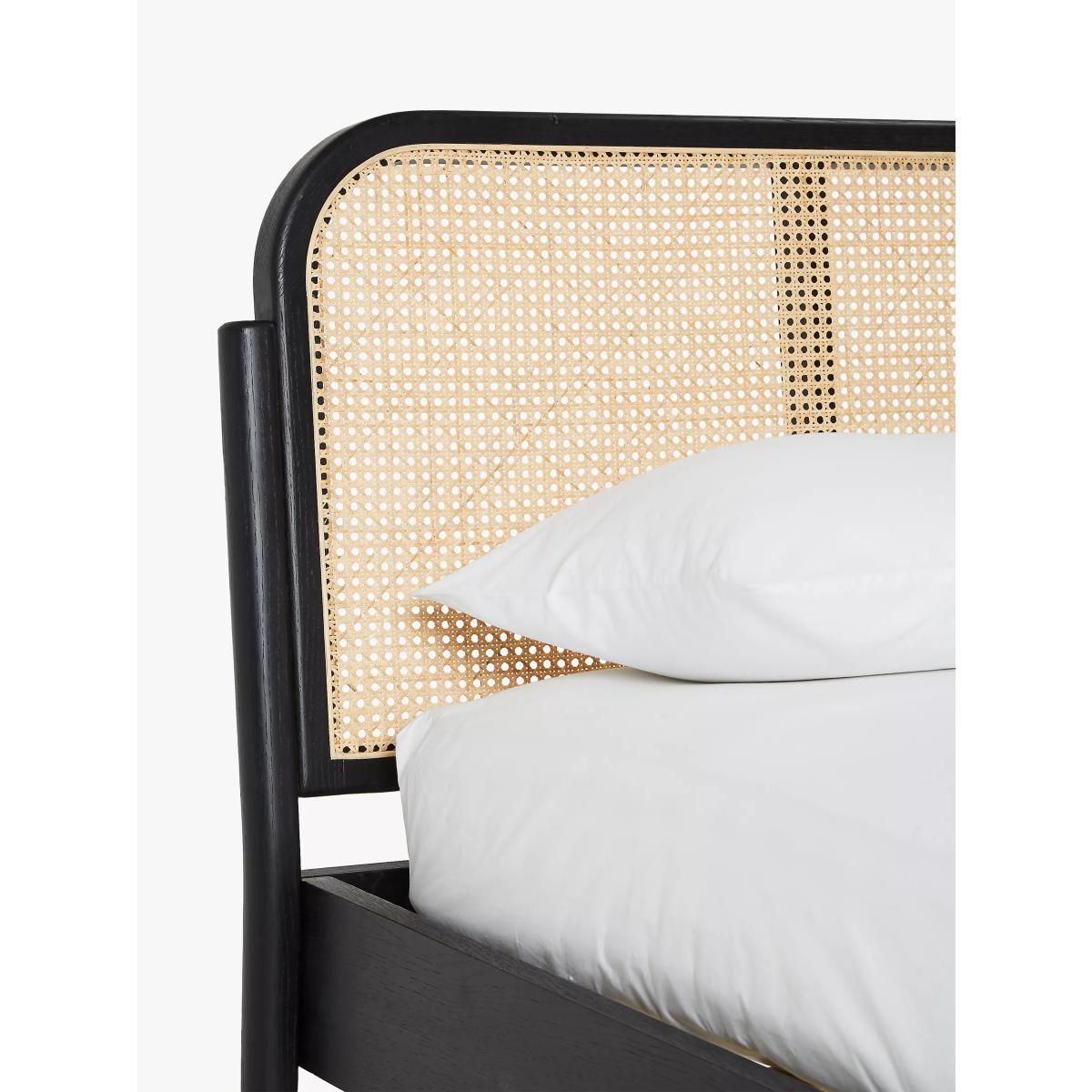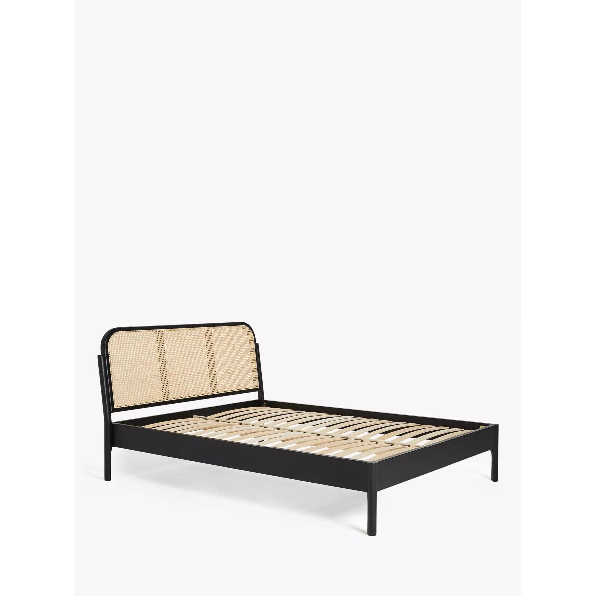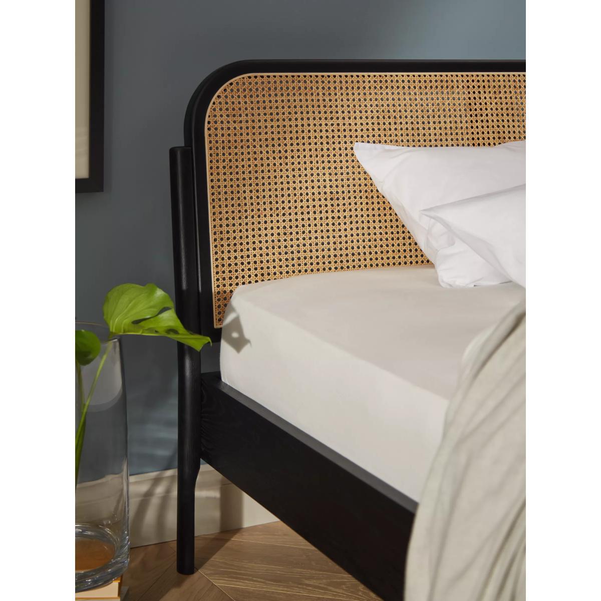 A distinctive design with vintage appeal, our Rattan bed frame is the centrepiece for your traditional, farmhouse-inspired bedroom. Made predominantly from solid European white oak with a touch of robust MDF, its airy, curved cane headboard offers a contrast against the solid, smooth lines of the frame. The Oak version is finished in a matt lacquer for durability, while the Black version has a striking painted finish. An understated, yet sophisticated design, its solid slats provide a firmer base for your mattress. Want to see it first? You may want to see and get a feel for the furniture in one of our shops before ordering. We'll be able to tell you where the range you'd like to view is on display.