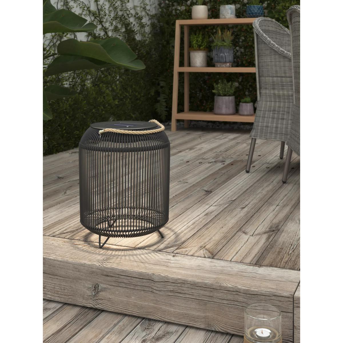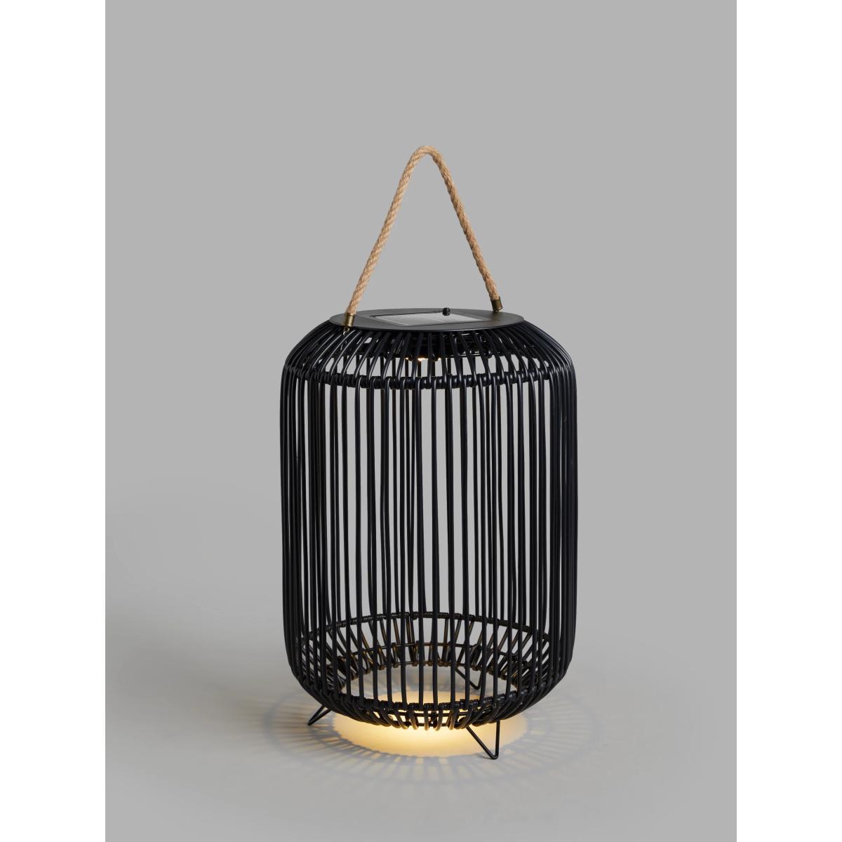 Our freestanding solar-powered garden lantern has a contemporary shape and rattan-effect design, suiting our rattan-effect garden furniture ranges. Easy to carry by the rope handle, place it on your patio or in the garden when you're enjoying your outside space. Simply operate by the push-button switch to emit a warm light.