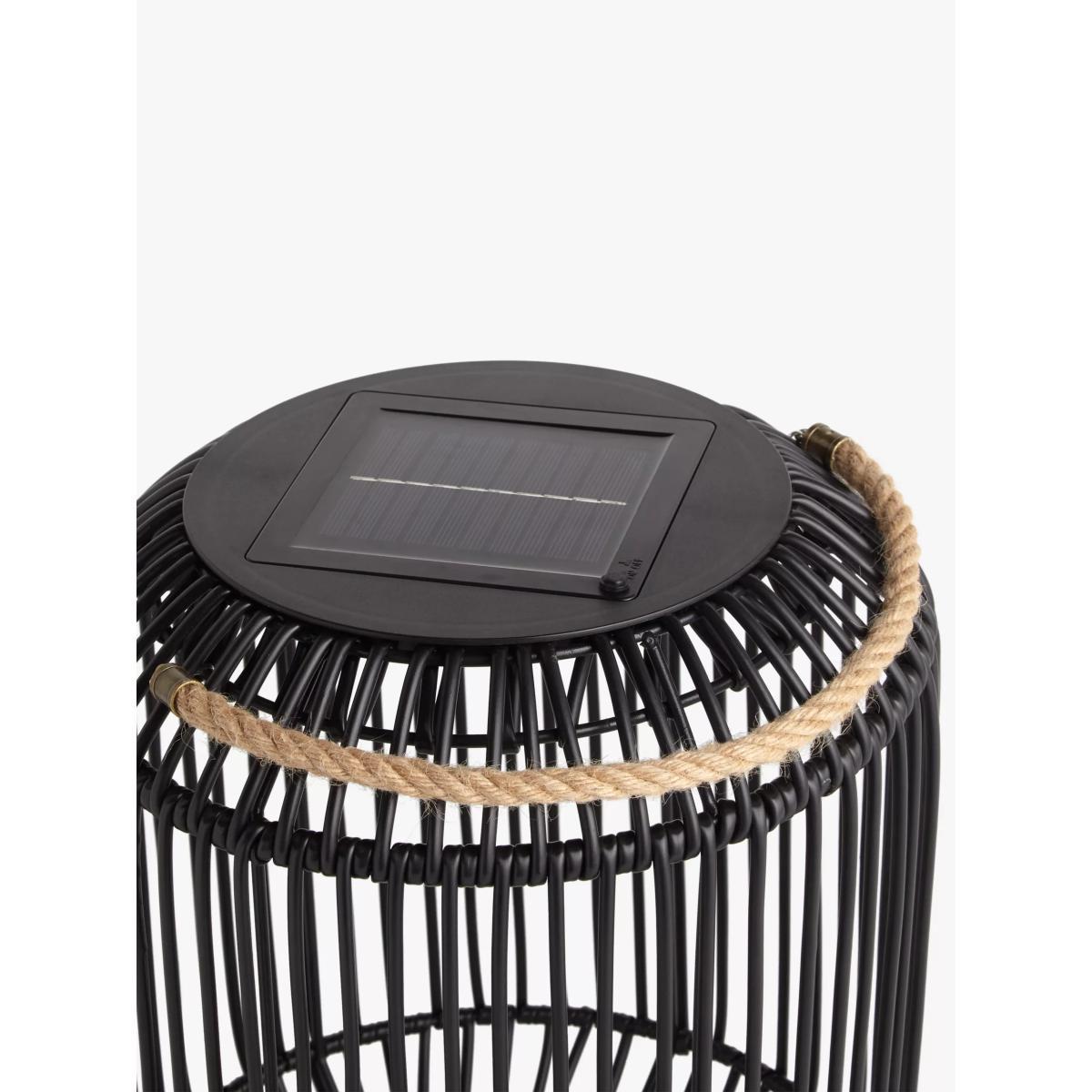 Our freestanding solar-powered garden lantern has a contemporary shape and rattan-effect design, suiting our rattan-effect garden furniture ranges. Easy to carry by the rope handle, place it on your patio or in the garden when you're enjoying your outside space. Simply operate by the push-button switch to emit a warm light.