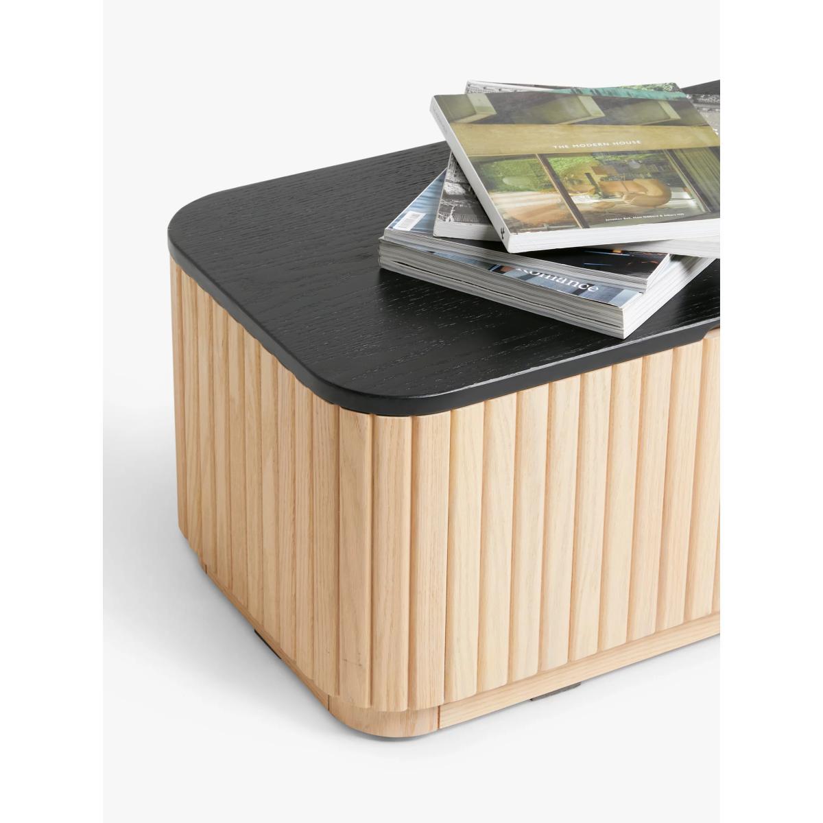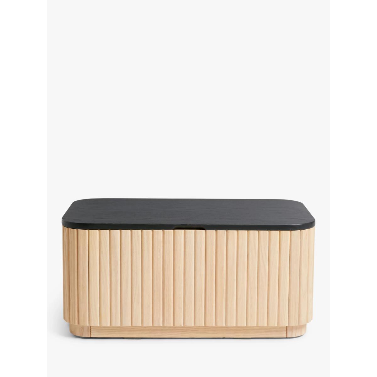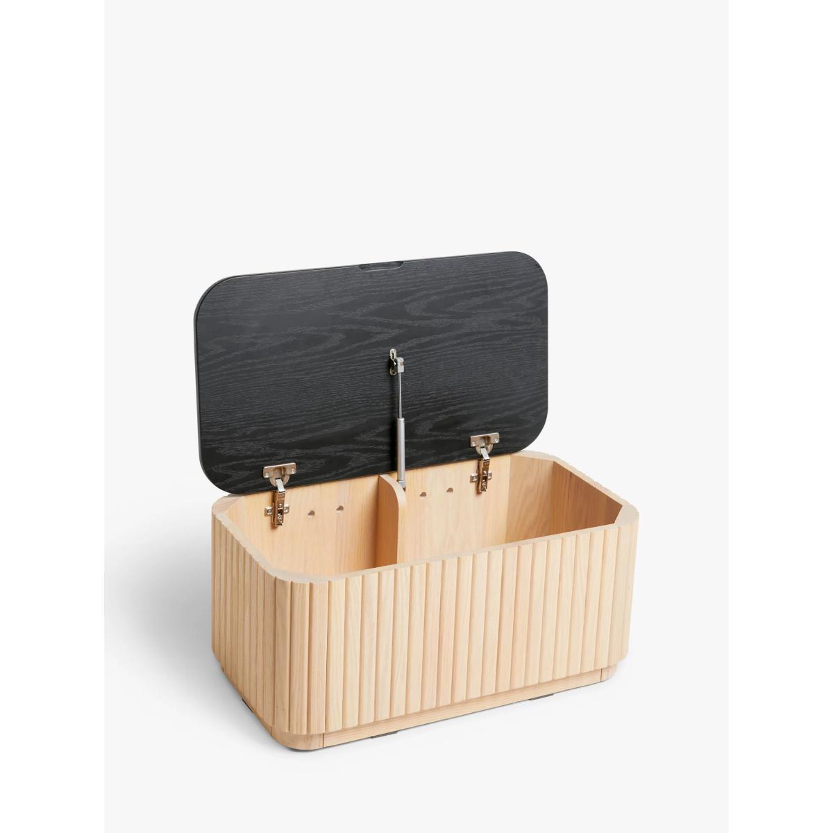 With a deep internal storage section, this side table is an excellent choice for smaller living rooms. It's made from solid red oak and high-quality chipboard, and its smooth, rounded shape keeps the design soft, light and understated. Plus, the ribbed finish of the frame adds a tactile styling point. For durability, we've treated the wood with a protective coating of oil and painted the surface top and lid to create a statement contrast, which also honours its Scandinavian-inspired design. Want to see it first? You may want to see and get a feel for the furniture in one of our shops before ordering. We'll be able to tell you where the range you'd like to view is on display.