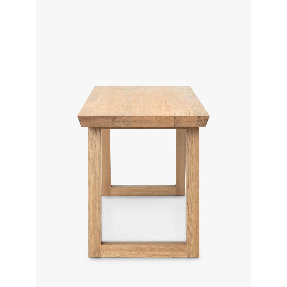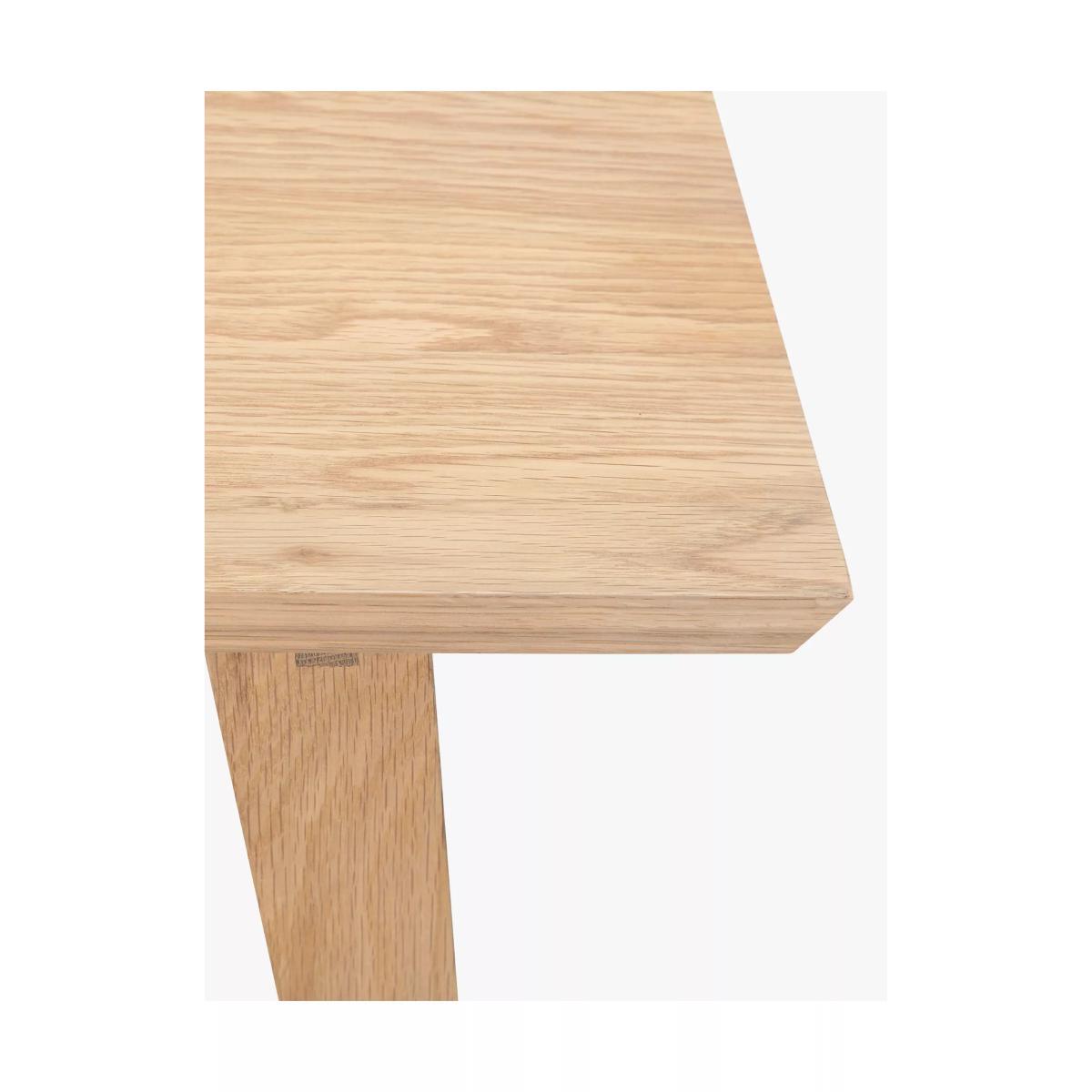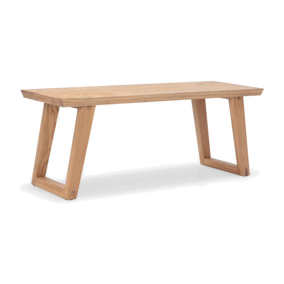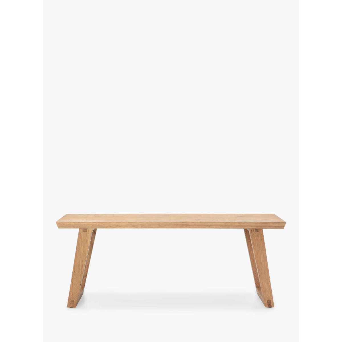 We've designed our Reflex range for interiors which strive for simplicity. This sleek dining bench provides seating for two people. It's made from solid oak and we've coated it in a white oil to preserve the wood and highlight its natural grains and markings. The angled legs form a stable and structured base and the design's clean lines give it a contemporary edge. Worth knowing Oak is a natural, living material, and part of its charm is that it develops over time. This means that surface splits may start to appear with the natural movement of the wood. Knots will vary in size and location and a subtle colour variation can also be expected. These distinctive qualities give the range a unique feel, as no two pieces will be exactly the same. To keep your furniture looking its best, we recommend periodic oiling. More information can be found in the assembly instructions supplied. Want to see it first? You may want to see and get a feel for the furniture in one of our shops before ordering. We'll be able to tell you where the range you'd like to view is on display.