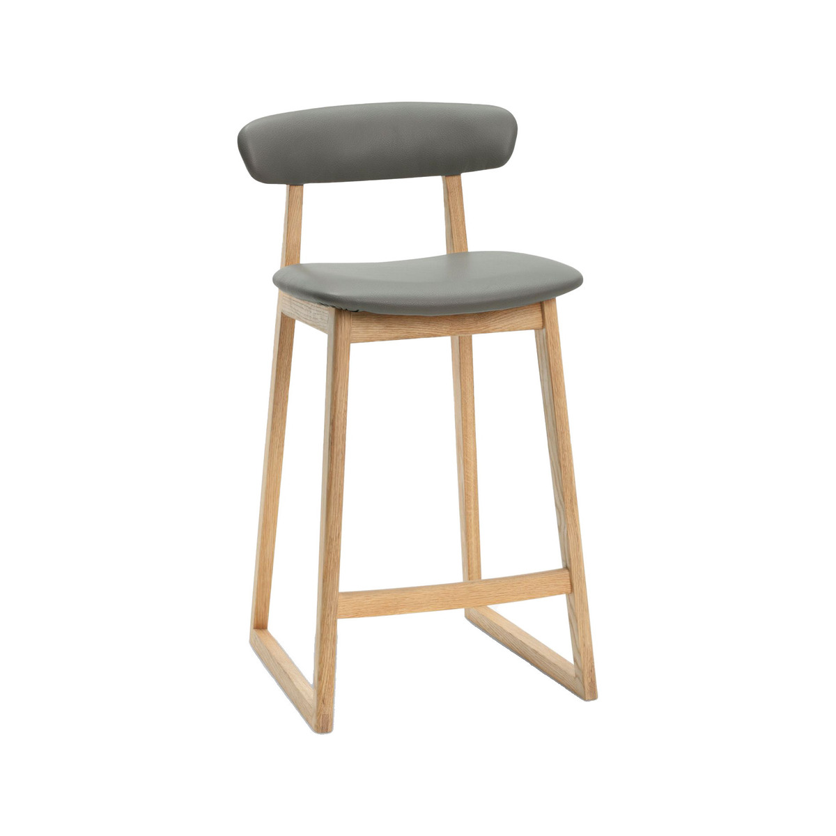 We've designed our Reflex range for interiors which strive for simplicity. This bar chair is upholstered with a soft faux leather seat and features a backrest for comfort. The minimalist frame showcases impressive woodwork: it's made from a combination of solid oak and sturdy bentwood and the angled legs form a stable and structured base. To preserve the wood, we've coated it in an oil which also brings out its natural grains and markings.