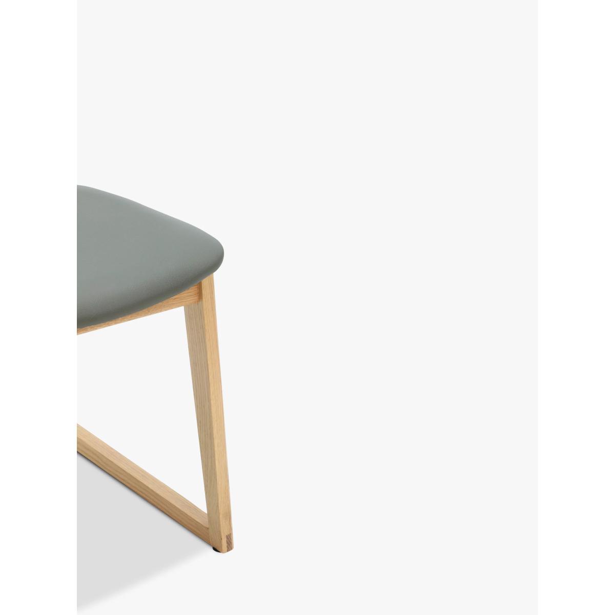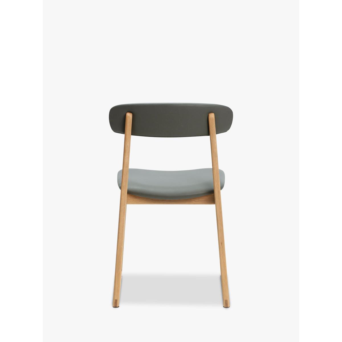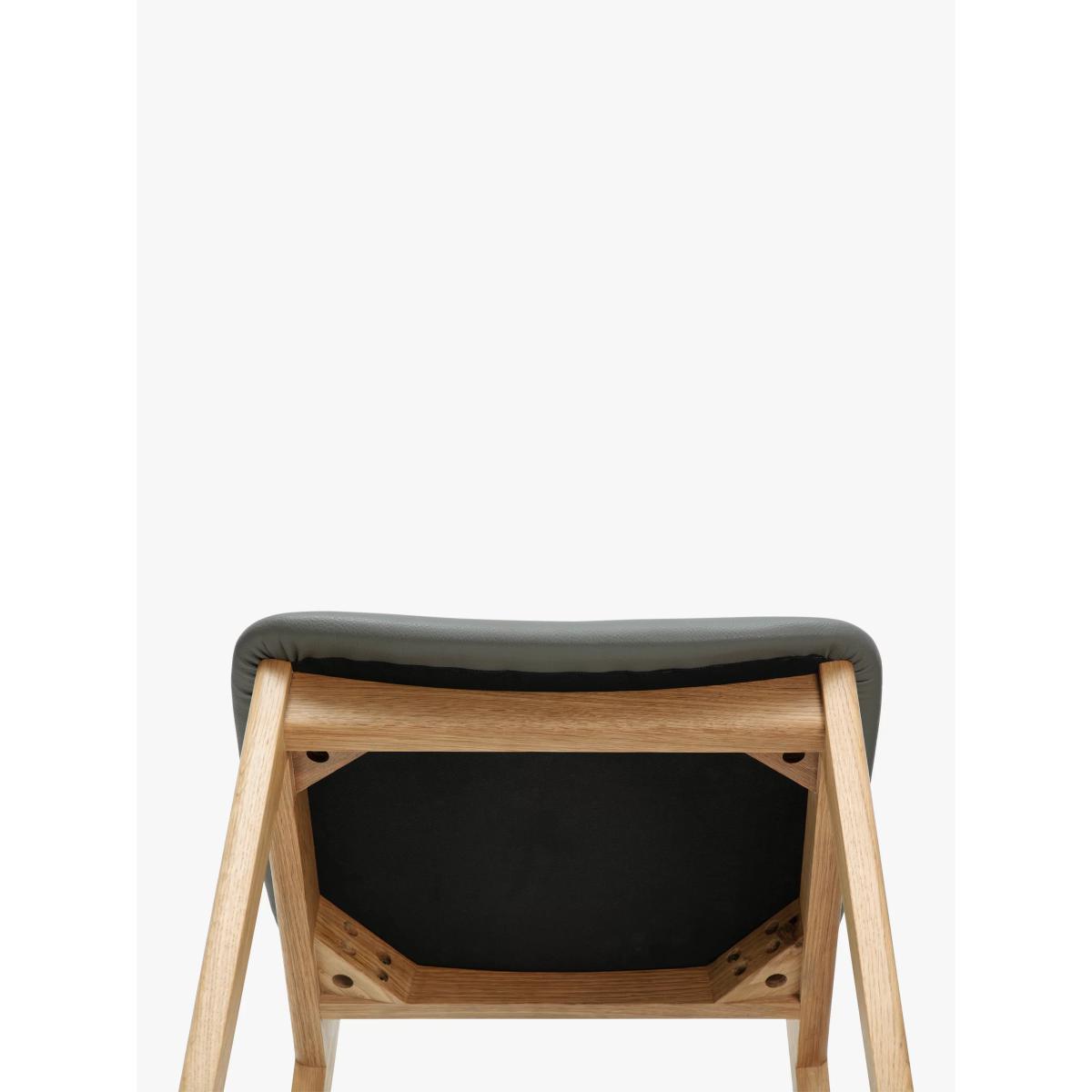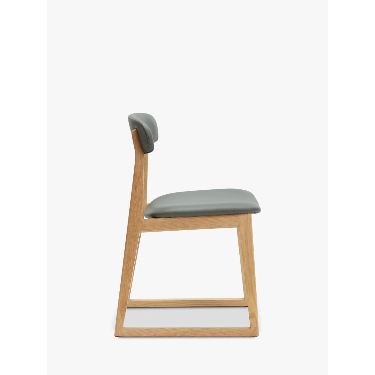 We've designed our Reflex range for interiors which strive for simplicity. This dining chair is upholstered with a soft, faux leather seat and backrest for comfort. Its minimalist frame showcases impressive woodwork: it's made from solid oak and the angled legs form a stable and structured base. To preserve the wood, we've coated it in an oil which also brings out its natural grains and markings. Worth knowing Oak is a natural, living material, and part of its charm is that it develops over time. This means that surface splits may start to appear with the natural movement of the wood. Knots will vary in size and location and a subtle colour variation can also be expected. These distinctive qualities give the range a unique feel, as no two pieces will be exactly the same. To keep your furniture looking its best, we recommend periodic oiling. More information can be found in the assembly instructions supplied. Want to see it first? You may want to see and get a feel for the furniture in one of our shops before ordering. We'll be able to tell you where the range you'd like to view is on display.
