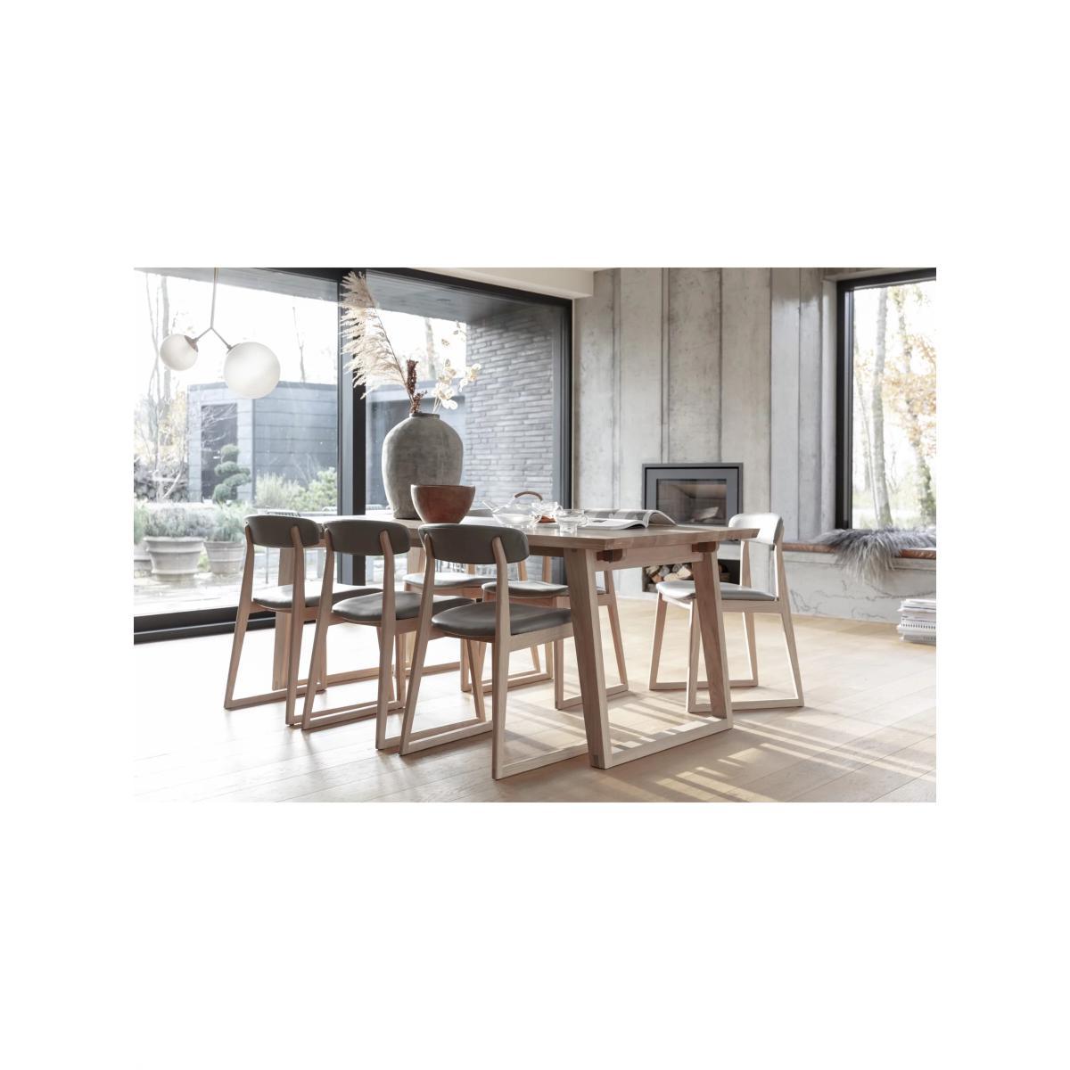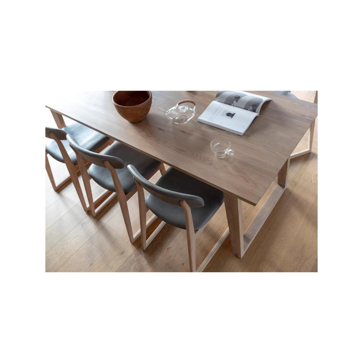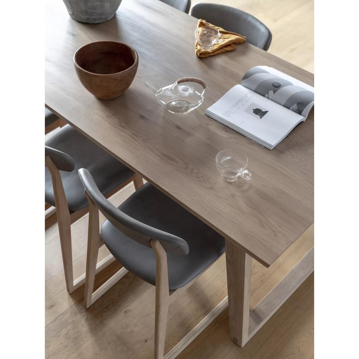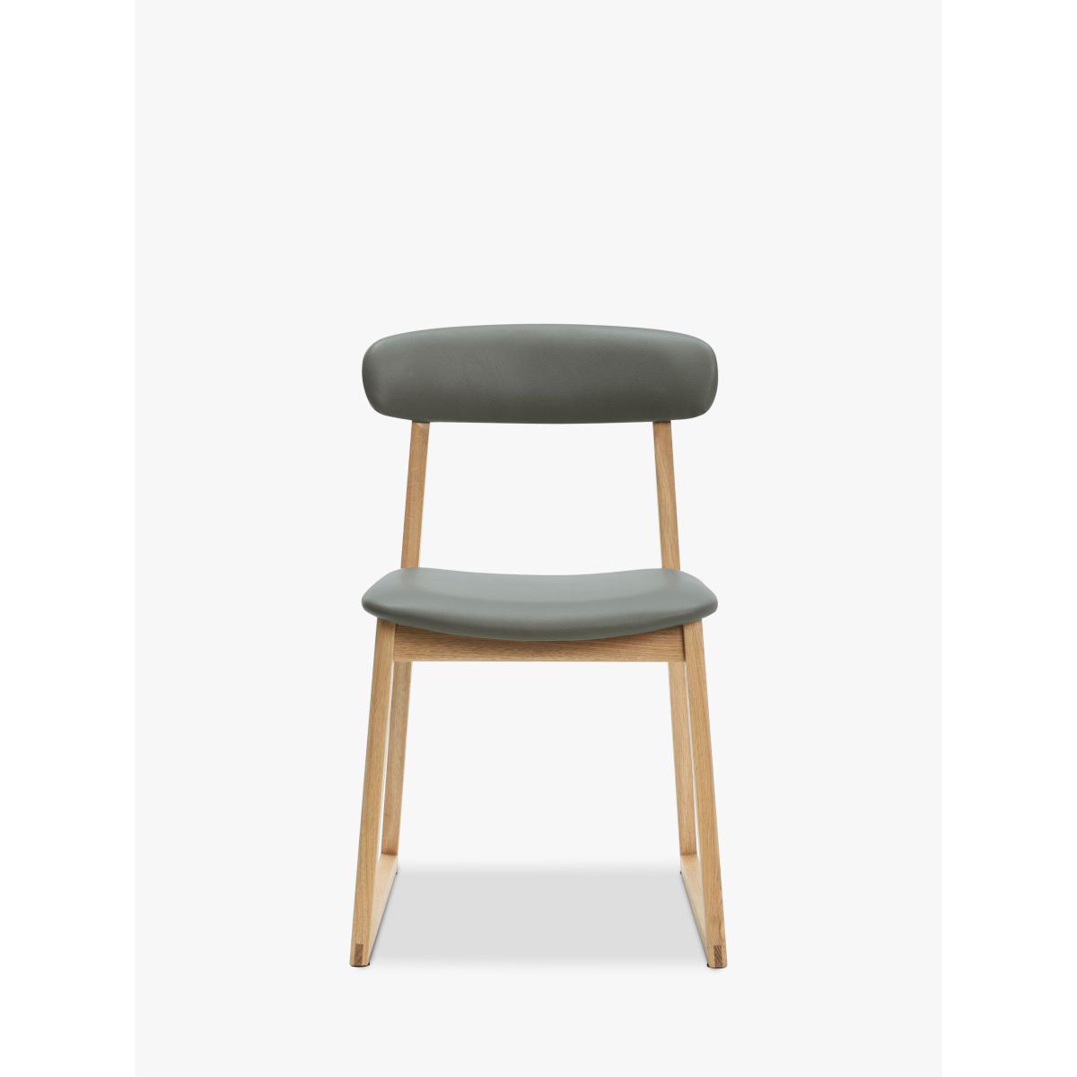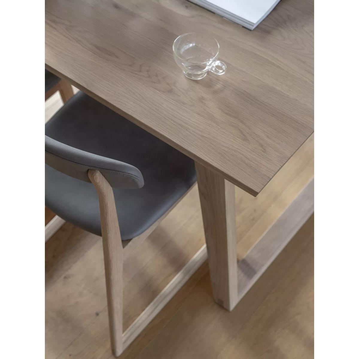 We've designed our Reflex range for interiors which strive for simplicity. This dining chair is upholstered with a soft, faux leather seat and backrest for comfort. Its minimalist frame showcases impressive woodwork: it's made from solid oak and the angled legs form a stable and structured base. To preserve the wood, we've coated it in an oil which also brings out its natural grains and markings. Worth knowing Oak is a natural, living material, and part of its charm is that it develops over time. This means that surface splits may start to appear with the natural movement of the wood. Knots will vary in size and location and a subtle colour variation can also be expected. These distinctive qualities give the range a unique feel, as no two pieces will be exactly the same. To keep your furniture looking its best, we recommend periodic oiling. More information can be found in the assembly instructions supplied. Want to see it first? You may want to see and get a feel for the furniture in one of our shops before ordering. We'll be able to tell you where the range you'd like to view is on display.
