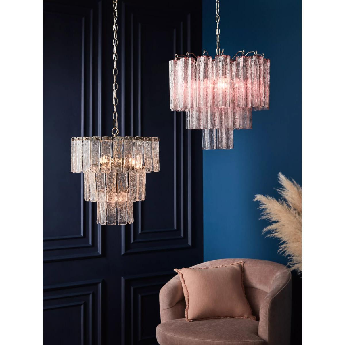 I really like the pink chandelier - it’s a standout piece that balances elegance and a touch of fun. It works particularly well in feminine or eclectic interiors, adding colour and texture without overwhelming the space. For styling tips, consider pairing it with neutral wall colours or soft pastel palettes to let the chandelier be the focal point. It also pairs beautifully with vintage or glam-inspired decor, especially in living rooms or bedrooms where statement lighting can define the space. To keep the look cohesive, keep accessories minimal around the chandelier and choose complementary metallic finishes like gold or brass to tie the whole look together.