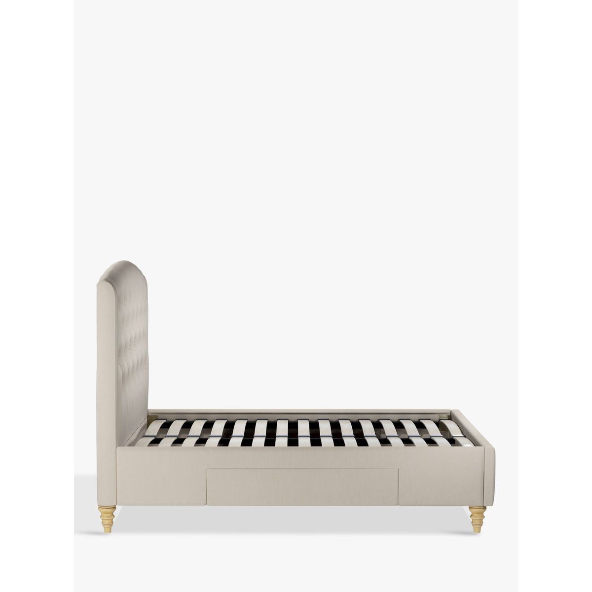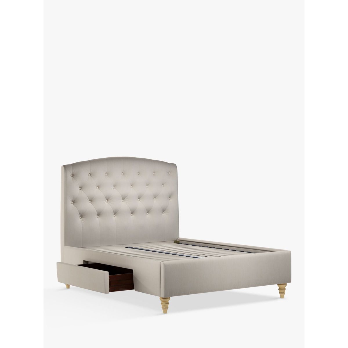 The design of our Rouen stroage bed frame is timeless and sophisticated. We've added button detailing to the headboard and supported the frame with low, twisted legs made from high quality wood. Sprung slats in the base provide support and there are two spacious, soft-close drawers which are ideal for storing linens. Available in our Topaz fabric which is woven to create a linen-effect look, Opulence , which is a soft and luxurious velvet-like fabric or Erin which is a velvet-style, chenille fabric. Built with Smart Slats This bed frame is designed with wider slats at the shoulders, lumbar and feet. They provide maximum support for you and your mattress so that you experience perfect spinal alignment while you sleep. The standard slat caps are black so we have added grey slat caps to ensure that you know where to place the wider slats. Want to see it first? You may want to see and get a feel for the furniture before ordering. Pop into one of our shops to see the full range of colours and fabrics on offer. We'll be able to tell you where the range you'd like to view is on display.