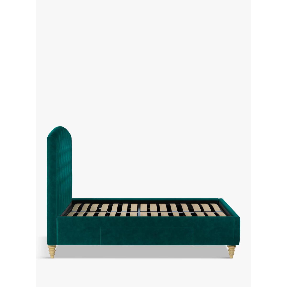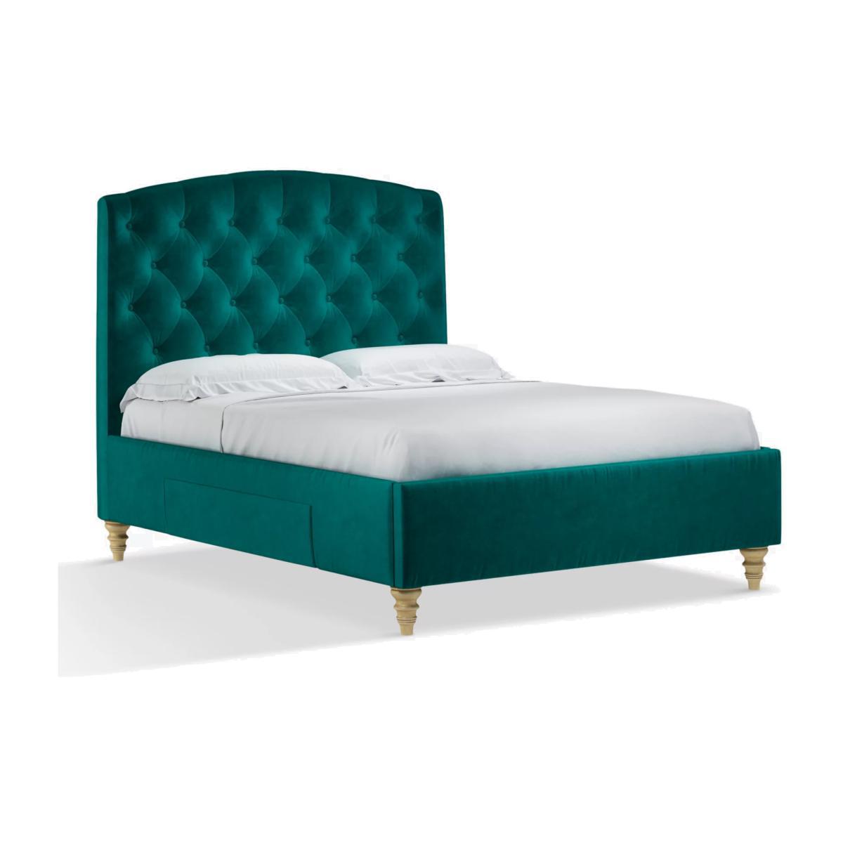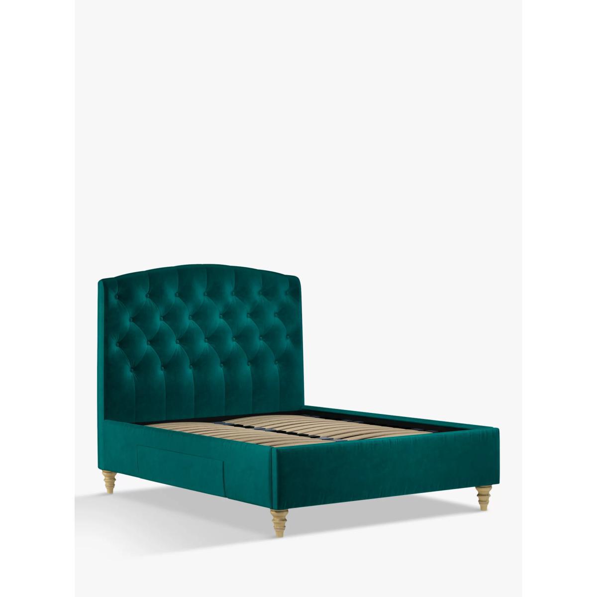 Our Rouen storage bed frame has a classic design that's enhanced with button detailing across the headboard. There's a soft-close drawer on either side of the frame that's brilliant for storing spare linens. Sprung slats provide additional support for you and your mattress. Built with Smart Slats This bed frame is designed with wider slats at the shoulders, lumbar and feet. They provide maximum support for you and your mattress so that you experience perfect spinal alignment while you sleep. The standard slat caps are black so we have added grey slat caps to ensure that you know where to place the wider slats. Choose from one of our fabrics: Our Band A fabric, Topaz is woven to create a linen-effect feel Our Band A fabric, Saga is woven with man-made fibres, making it exceptionally durable and versatile Our Band B fabric, Erin has a velvet-style, chenille feel. It's woven with man-made fibres to create a beautifully soft yarn and can appear two-tone in different lights Our Band B fabric, Opulence is a soft and luxurious velvet-like fabric Our Band B fabric, Mole is a soft and cosy woven wool-blend. Piling and bobbling may occur naturally over time Our Band B fabric, Relaxed Linen is durable, resilient and versatile, woven from man-made and natural fibres Our Band C fabric, Aquaclean Harriet is made from a short, dense pile of velvet that has a soft, brushed finish. An Aquaclean treatment has been applied to this resilient fabric which means you can banish the majority of household stains with water. The treatment covers every fibre with an invisible coating so it doesn't need to be retreated or re-coated. It will naturally develop lines, scuffs and shading over time. Want to see it first? You may want to see and get a feel for the furniture before ordering. Pop into one of our shops to see the full range of colours and fabrics on offer. We'll be able to tell you where the range you'd like to view is on display.