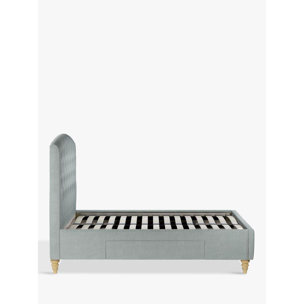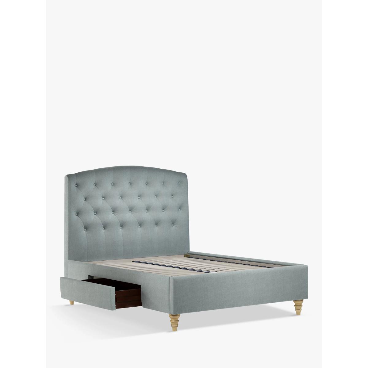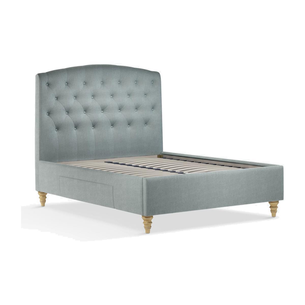 The design of our Rouen stroage bed frame is timeless and sophisticated. We've added button detailing to the headboard and supported the frame with low, twisted legs made from high quality wood. Sprung slats in the base provide support and there are two spacious, soft-close drawers which are ideal for storing linens. Available in our Topaz fabric which is woven to create a linen-effect look, Opulence , which is a soft and luxurious velvet-like fabric or Erin which is a velvet-style, chenille fabric. Built with Smart Slats This bed frame is designed with wider slats at the shoulders, lumbar and feet. They provide maximum support for you and your mattress so that you experience perfect spinal alignment while you sleep. The standard slat caps are black so we have added grey slat caps to ensure that you know where to place the wider slats. Want to see it first? You may want to see and get a feel for the furniture before ordering. Pop into one of our shops to see the full range of colours and fabrics on offer. We'll be able to tell you where the range you'd like to view is on display.
