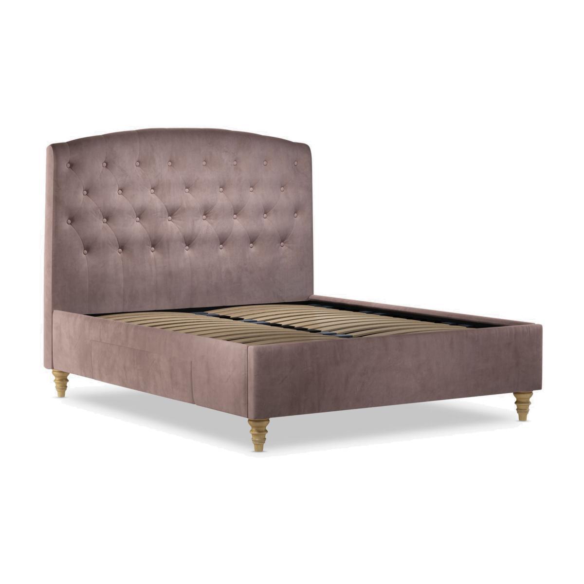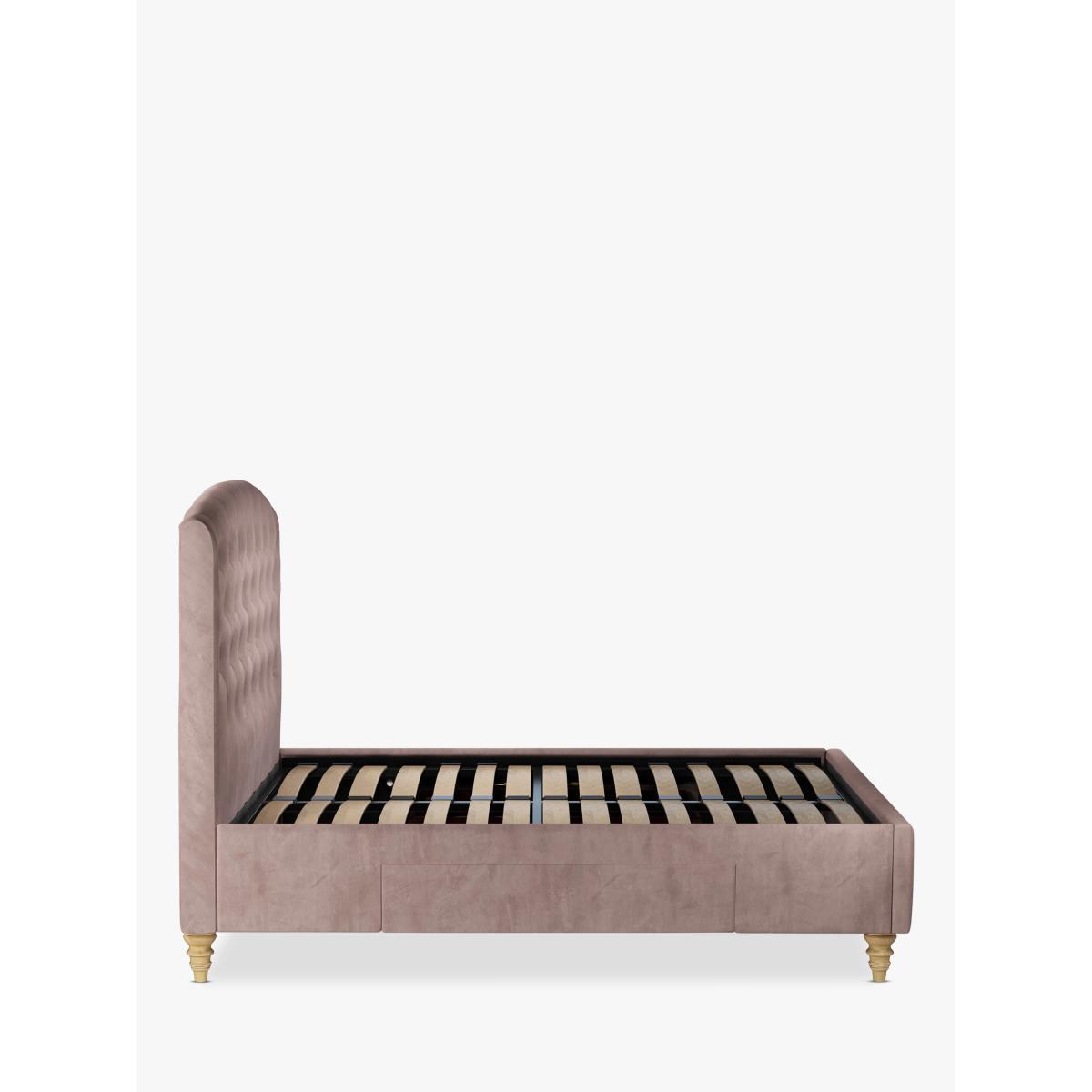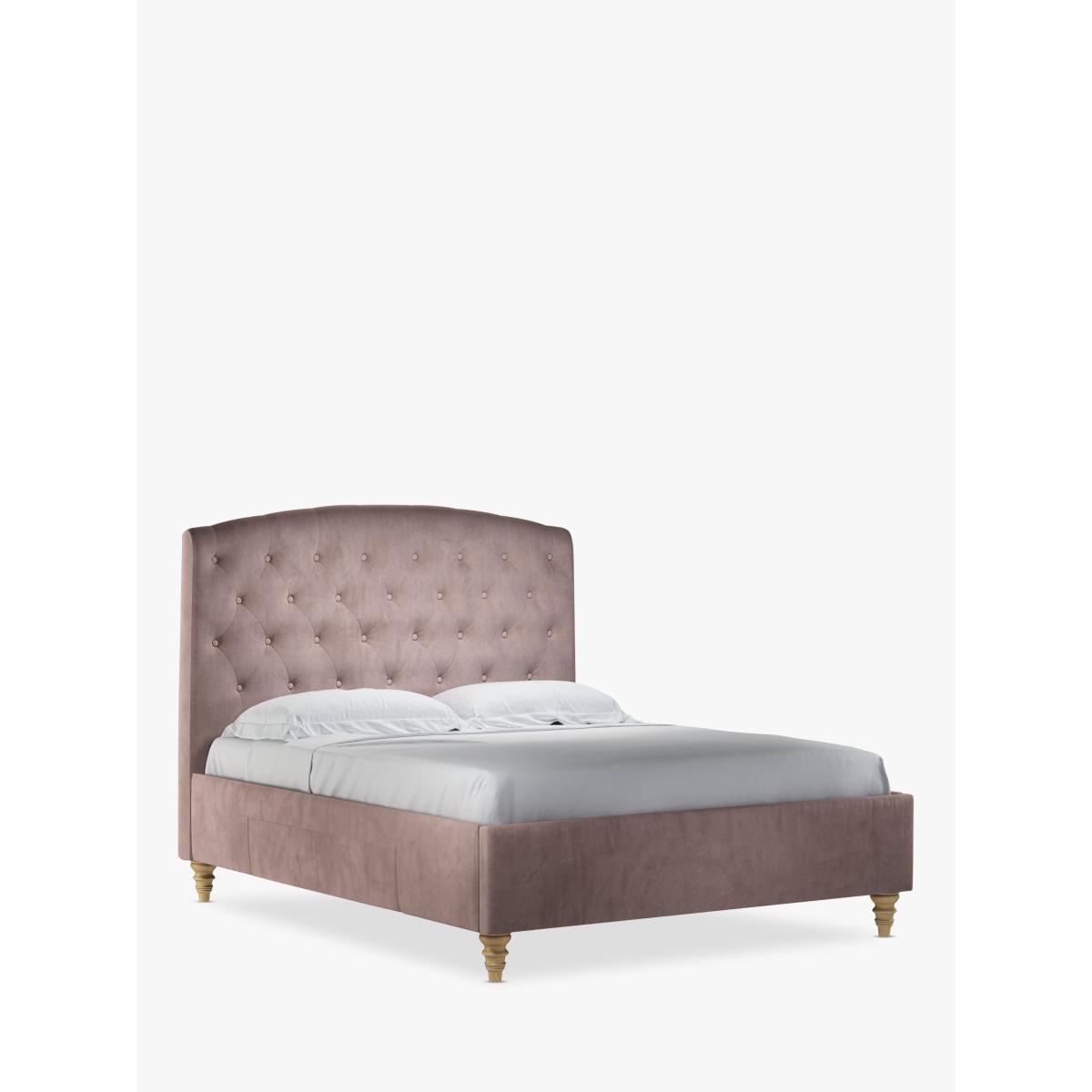 Our Rouen storage bed frame has a classic design that's enhanced with button detailing across the headboard. There's a soft-close drawer on either side of the frame that's brilliant for storing spare linens. Sprung slats provide additional support for you and your mattress. Built with Smart Slats This bed frame is designed with wider slats at the shoulders, lumbar and feet. They provide maximum support for you and your mattress so that you experience perfect spinal alignment while you sleep. The standard slat caps are black so we have added grey slat caps to ensure that you know where to place the wider slats. Choose from one of our fabrics: Our Band A fabric, Topaz is woven to create a linen-effect feel Our Band A fabric, Saga is woven with man-made fibres, making it exceptionally durable and versatile Our Band B fabric, Erin has a velvet-style, chenille feel. It's woven with man-made fibres to create a beautifully soft yarn and can appear two-tone in different lights Our Band B fabric, Opulence is a soft and luxurious velvet-like fabric Our Band B fabric, Mole is a soft and cosy woven wool-blend. Piling and bobbling may occur naturally over time Our Band B fabric, Relaxed Linen is durable, resilient and versatile, woven from man-made and natural fibres Our Band C fabric, Aquaclean Harriet is made from a short, dense pile of velvet that has a soft, brushed finish. An Aquaclean treatment has been applied to this resilient fabric which means you can banish the majority of household stains with water. The treatment covers every fibre with an invisible coating so it doesn't need to be retreated or re-coated. It will naturally develop lines, scuffs and shading over time. Want to see it first? You may want to see and get a feel for the furniture before ordering. Pop into one of our shops to see the full range of colours and fabrics on offer. We'll be able to tell you where the range you'd like to view is on display.