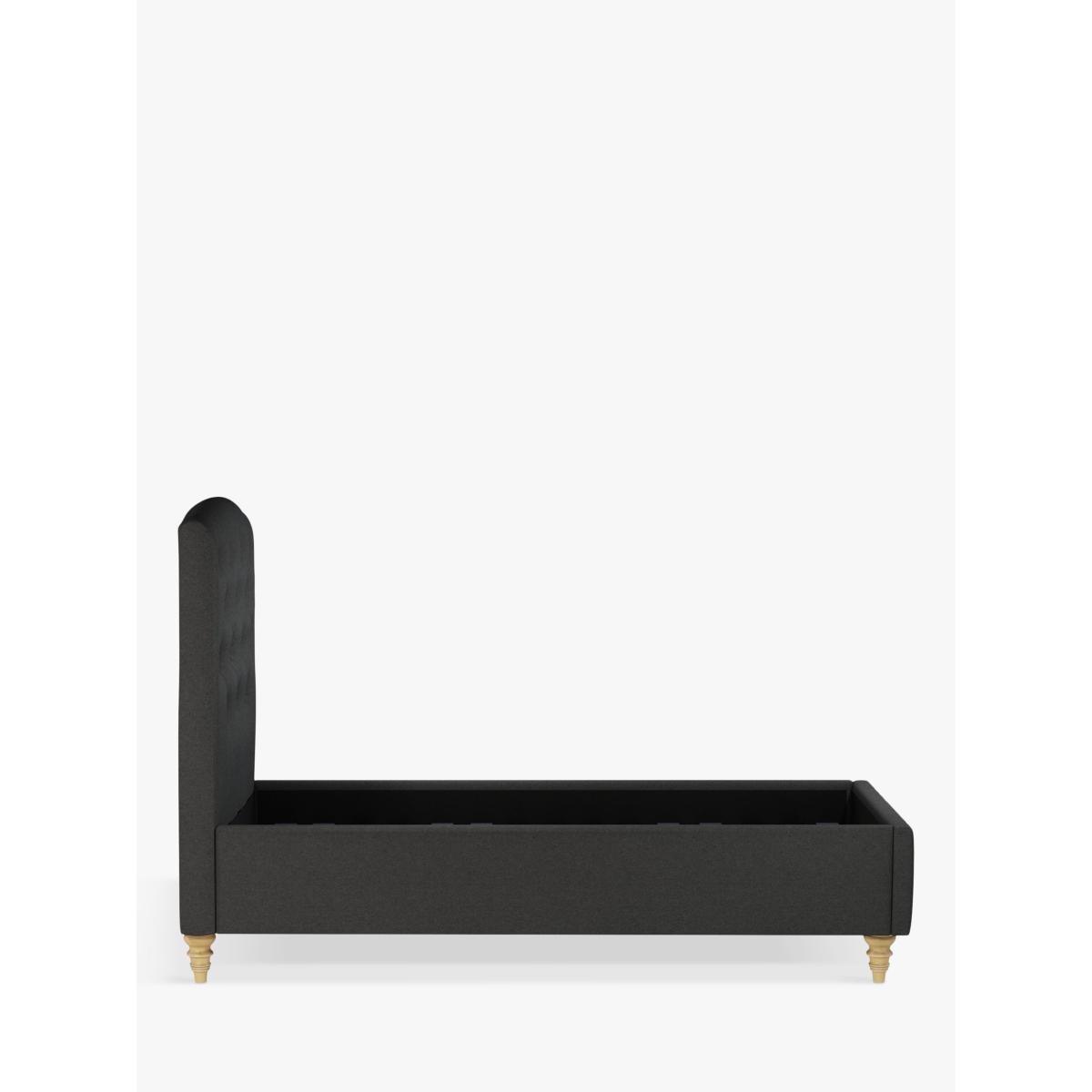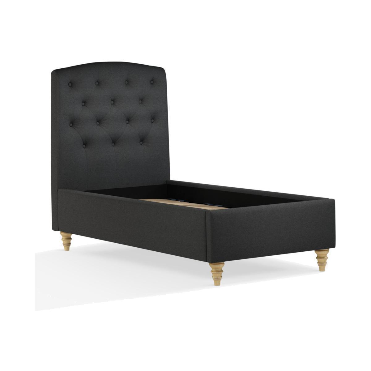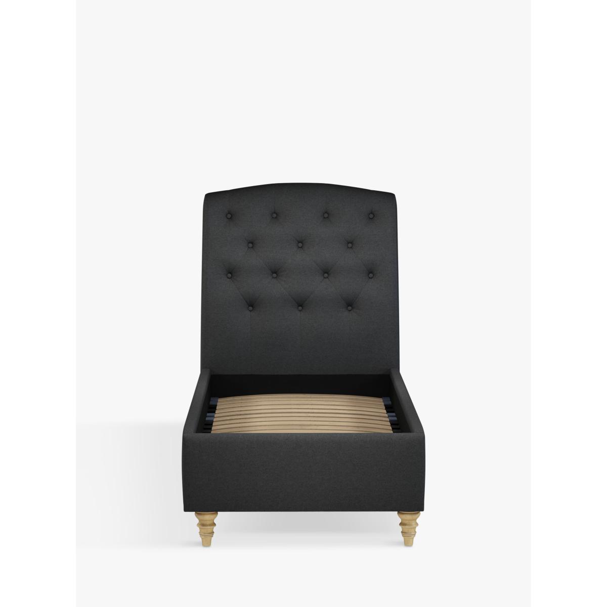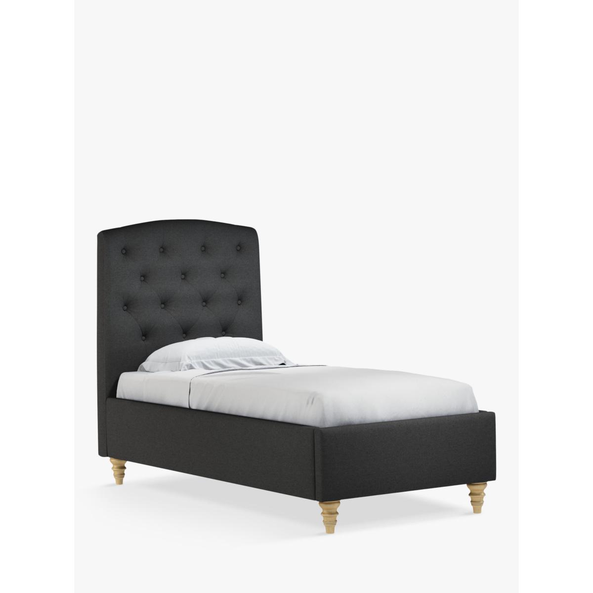The design of our Rouen bed frame is timeless and sophisticated. We've added button detailing to the headboard and supported the frame with low, twisted legs made from high quality wood. There are also supportive sprung slats in the base. Built with Smart Slats This bed frame is designed with wider slats at the shoulders, lumbar and feet. They provide maximum support for you and your mattress so that you experience perfect spinal alignment while you sleep. The standard slat caps are black so we have added grey slat caps to ensure that you know where to place the wider slats. Worth Knowing: Child Compliant bed frames This bed conforms to BS 8509:2008+A1:2011 (Childrens beds for domestic use. Safety requirements and test methods). We recommend it is used with a standard single mattress, L190 x W90cm. Not suitable for children under the age of 4 years. Choose from one of our fabrics: Our Band A fabric, Topaz is woven to create a linen-effect feel Our Band A fabric, Saga is woven with man-made fibres, making it exceptionally durable and versatile Our Band B fabric, Erin has a velvet-style, chenille feel. It's woven with man-made fibres to create a beautifully soft yarn and can appear two-tone in different lights Our Band B fabric, Opulence is a soft and luxurious velvet-like fabric Our Band B fabric, Mole is a soft and cosy woven wool-blend. Piling and bobbling may occur naturally over time Our Band B fabric, Relaxed Linen is durable, resilient and versatile, woven from man-made and natural fibres Our Band C fabric, Aquaclean Harriet is made from a short, dense pile of velvet that has a soft, brushed finish. An Aquaclean treatment has been applied to this resilient fabric which means you can banish the majority of household stains with water. The treatment covers every fibre with an invisible coating so it doesn't need to be retreated or re-coated. It will naturally develop lines, scuffs and shading over time. Want to see it first? You may want to see and get a feel for the furniture before ordering. Pop into one of our shops to see the full range of colours and fabrics on offer. We'll be able to tell you where the range you'd like to view is on display.