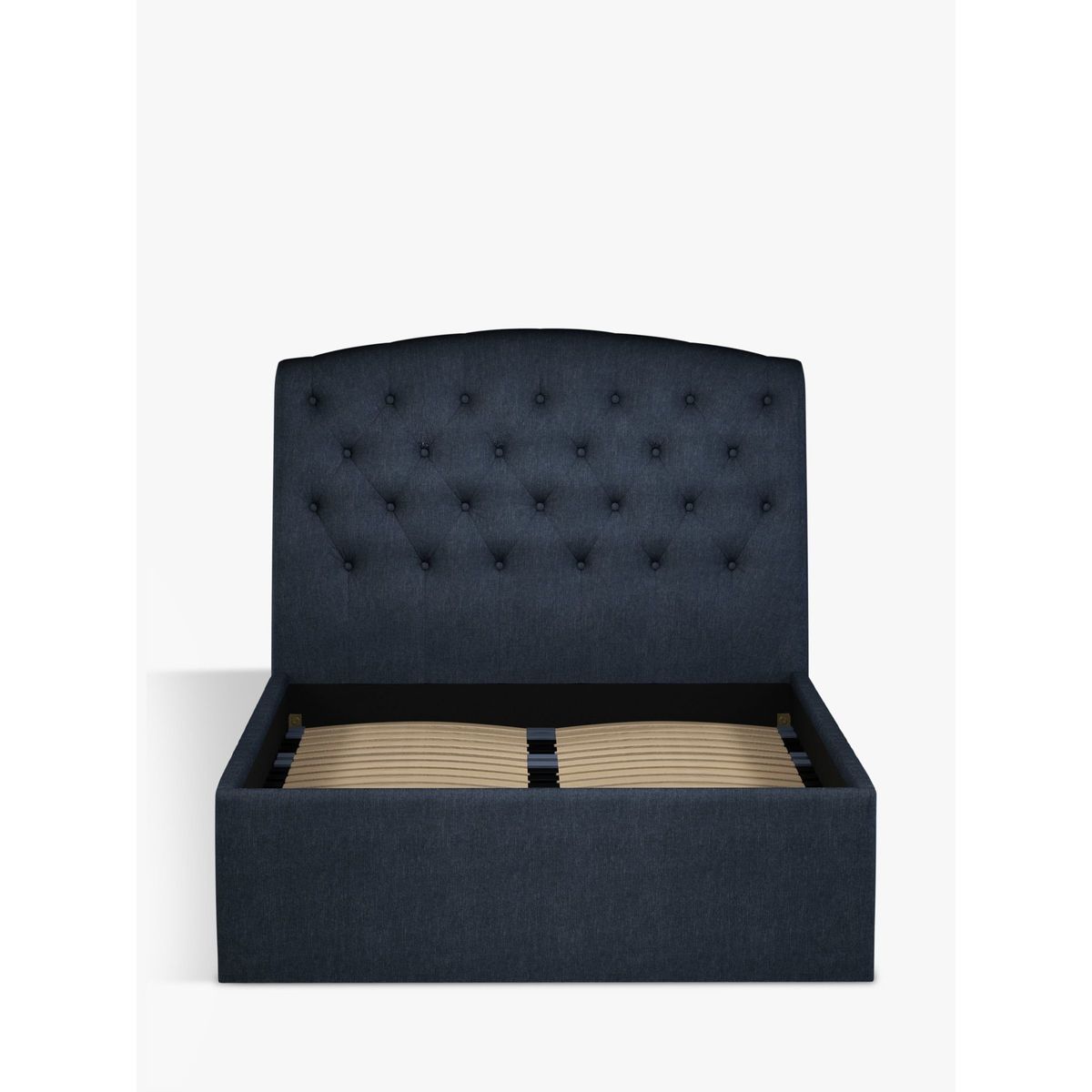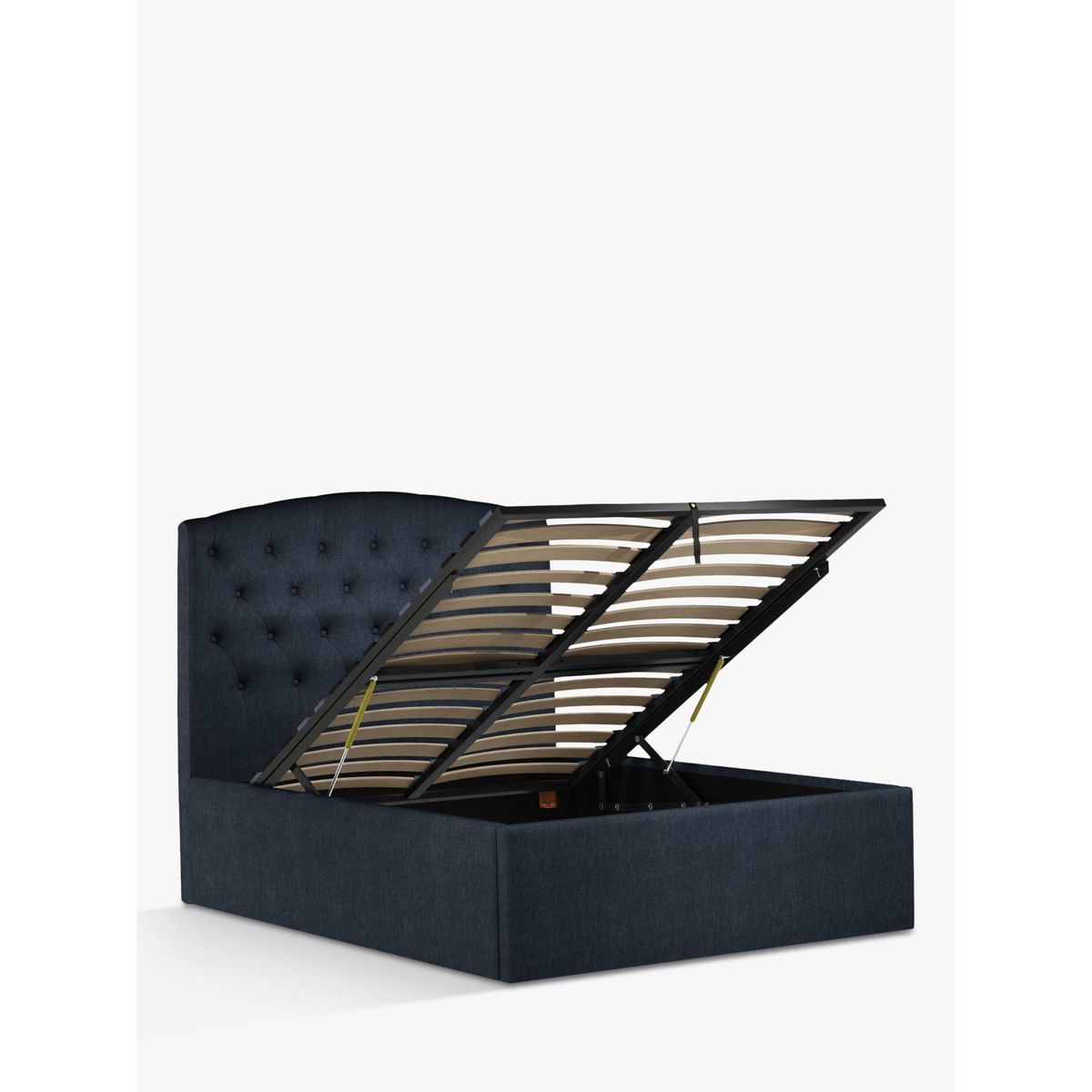 Our Rouen ottoman storage bed frame has a classic design that's enhanced with button detailing across the headboard. A handle and hydraulic arms facilitate an easy manual lift-up, revealing a functional and spacious storage space for spare linens. Sprung slats provide additional support for you and your mattress. Built with Smart Slats This bed frame is designed with wider slats at the shoulders, lumbar and feet. They provide maximum support for you and your mattress so that you experience perfect spinal alignment while you sleep. The standard slat caps are black so we have added grey slat caps to ensure that you know where to place the wider slats. Choose from one of our fabrics: Our Band A fabric, Topaz is woven to create a linen-effect feel Our Band A fabric, Saga is woven with man-made fibres, making it exceptionally durable and versatile Our Band B fabric, Erin has a velvet-style, chenille feel. It's woven with man-made fibres to create a beautifully soft yarn and can appear two-tone in different lights Our Band B fabric, Opulence is a soft and luxurious velvet-like fabric Our Band B fabric, Mole is a soft and cosy woven wool-blend. Piling and bobbling may occur naturally over time Our Band B fabric, Relaxed Linen is durable, resilient and versatile, woven from man-made and natural fibres Our Band C fabric, Aquaclean Harriet is made from a short, dense pile of velvet that has a soft, brushed finish. An Aquaclean treatment has been applied to this resilient fabric which means you can banish the majority of household stains with water. The treatment covers every fibre with an invisible coating so it doesn't need to be retreated or re-coated. It will naturally develop lines, scuffs and shading over time. Want to see it first? You may want to see and get a feel for the furniture before ordering. Pop into one of our shops to see the full range of colours and fabrics on offer. We'll be able to tell you where the range you'd like to view is on display.
