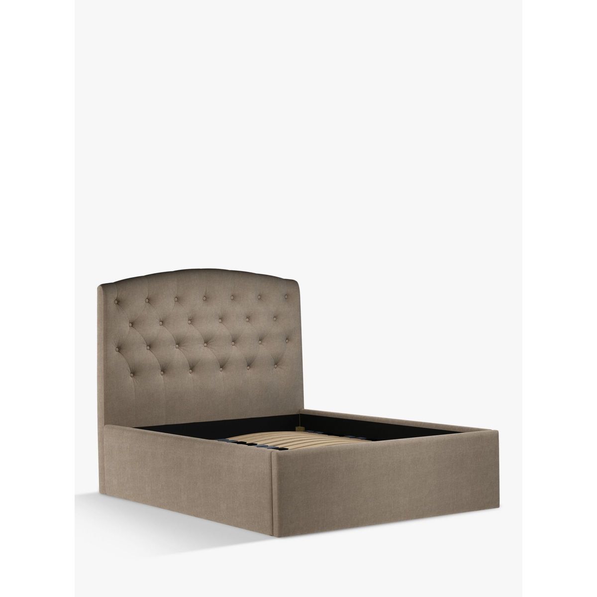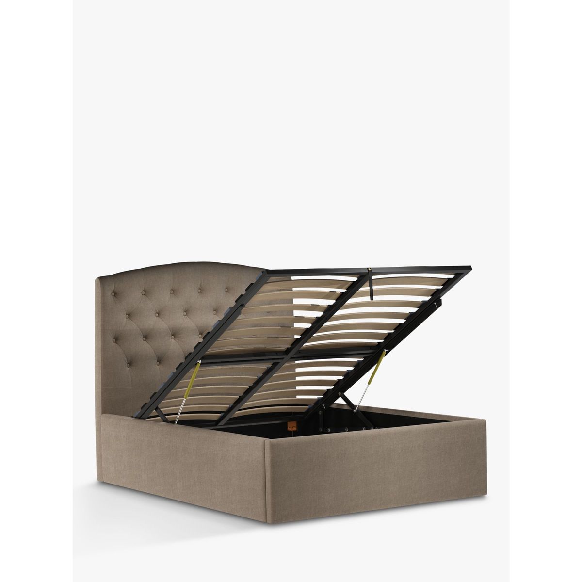 Our Rouen ottoman storage bed frame has a classic design that's enhanced with button detailing across the headboard. A handle and hydraulic arms facilitate an easy manual lift-up, revealing a functional and spacious storage space for spare linens. Sprung slats provide additional support for you and your mattress. Built with Smart Slats This bed frame is designed with wider slats at the shoulders, lumbar and feet. They provide maximum support for you and your mattress so that you experience perfect spinal alignment while you sleep. The standard slat caps are black so we have added grey slat caps to ensure that you know where to place the wider slats. Choose from one of our fabrics: Our Band A fabric, Topaz is woven to create a linen-effect feel Our Band A fabric, Saga is woven with man-made fibres, making it exceptionally durable and versatile Our Band B fabric, Erin has a velvet-style, chenille feel. It's woven with man-made fibres to create a beautifully soft yarn and can appear two-tone in different lights Our Band B fabric, Opulence is a soft and luxurious velvet-like fabric Our Band B fabric, Mole is a soft and cosy woven wool-blend. Piling and bobbling may occur naturally over time Our Band B fabric, Relaxed Linen is durable, resilient and versatile, woven from man-made and natural fibres Our Band C fabric, Aquaclean Harriet is made from a short, dense pile of velvet that has a soft, brushed finish. An Aquaclean treatment has been applied to this resilient fabric which means you can banish the majority of household stains with water. The treatment covers every fibre with an invisible coating so it doesn't need to be retreated or re-coated. It will naturally develop lines, scuffs and shading over time. Want to see it first? You may want to see and get a feel for the furniture before ordering. Pop into one of our shops to see the full range of colours and fabrics on offer. We'll be able to tell you where the range you'd like to view is on display.