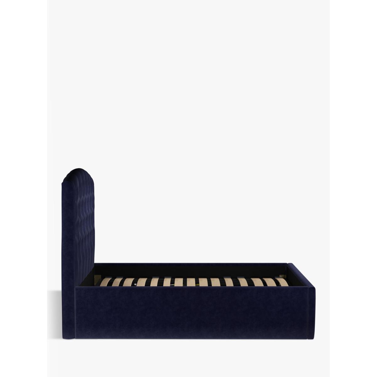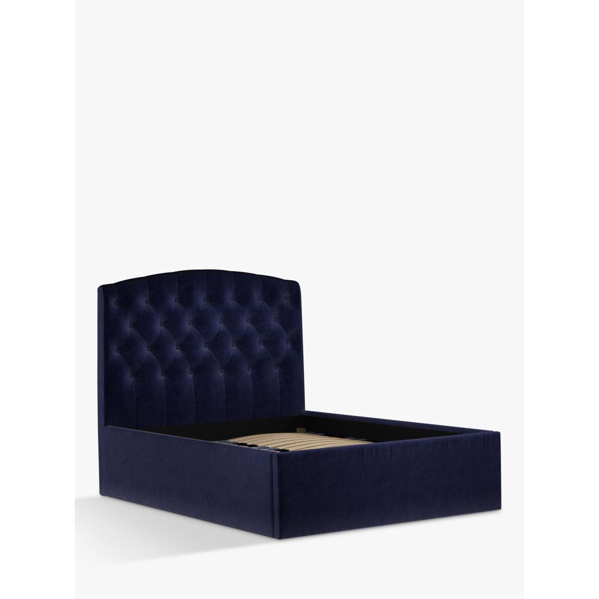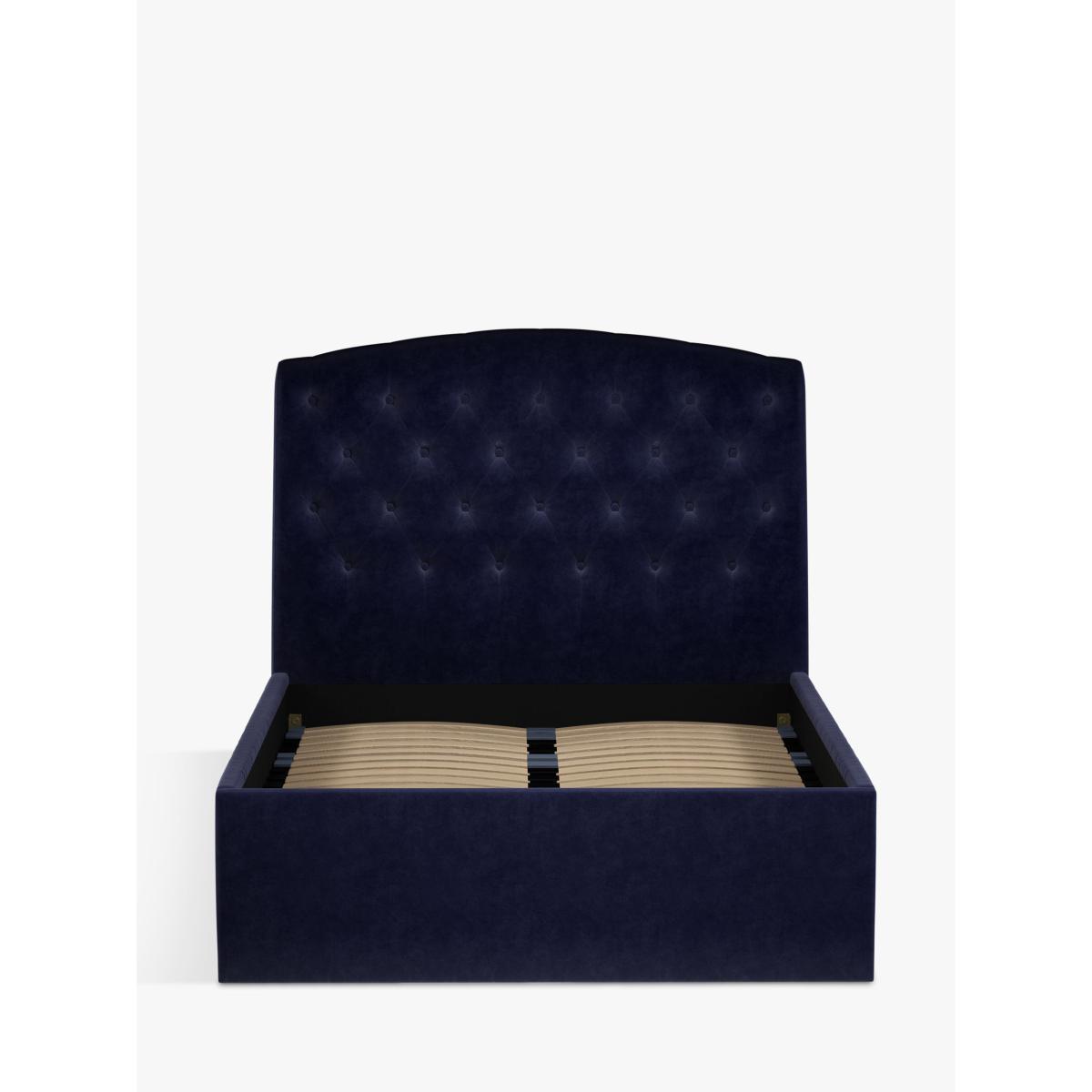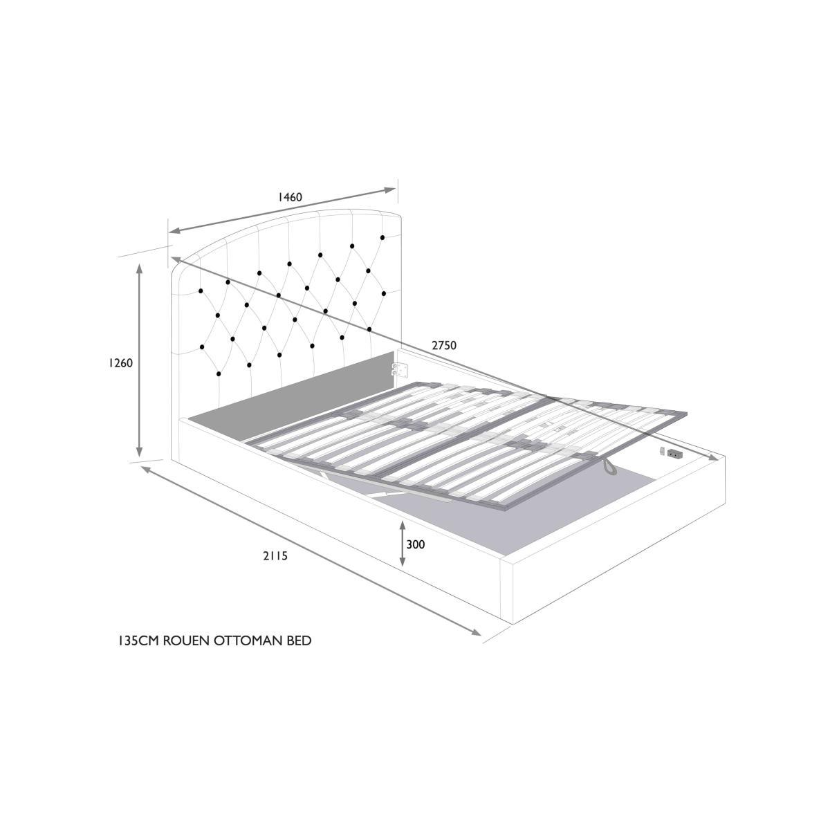 Our Rouen ottoman storage bed frame has a classic design that's enhanced with button detailing across the headboard. A handle and hydraulic arms facilitate an easy manual lift-up, revealing a functional and spacious storage space for spare linens. Sprung slats provide additional support for you and your mattress. Built with Smart Slats This bed frame is designed with wider slats at the shoulders, lumbar and feet. They provide maximum support for you and your mattress so that you experience perfect spinal alignment while you sleep. The standard slat caps are black so we have added grey slat caps to ensure that you know where to place the wider slats. Choose from one of our fabrics: Our Band A fabric, Topaz is woven to create a linen-effect feel Our Band A fabric, Saga is woven with man-made fibres, making it exceptionally durable and versatile Our Band B fabric, Erin has a velvet-style, chenille feel. It's woven with man-made fibres to create a beautifully soft yarn and can appear two-tone in different lights Our Band B fabric, Opulence is a soft and luxurious velvet-like fabric Our Band B fabric, Mole is a soft and cosy woven wool-blend. Piling and bobbling may occur naturally over time Our Band B fabric, Relaxed Linen is durable, resilient and versatile, woven from man-made and natural fibres Our Band C fabric, Aquaclean Harriet is made from a short, dense pile of velvet that has a soft, brushed finish. An Aquaclean treatment has been applied to this resilient fabric which means you can banish the majority of household stains with water. The treatment covers every fibre with an invisible coating so it doesn't need to be retreated or re-coated. It will naturally develop lines, scuffs and shading over time. Want to see it first? You may want to see and get a feel for the furniture before ordering. Pop into one of our shops to see the full range of colours and fabrics on offer. We'll be able to tell you where the range you'd like to view is on display.