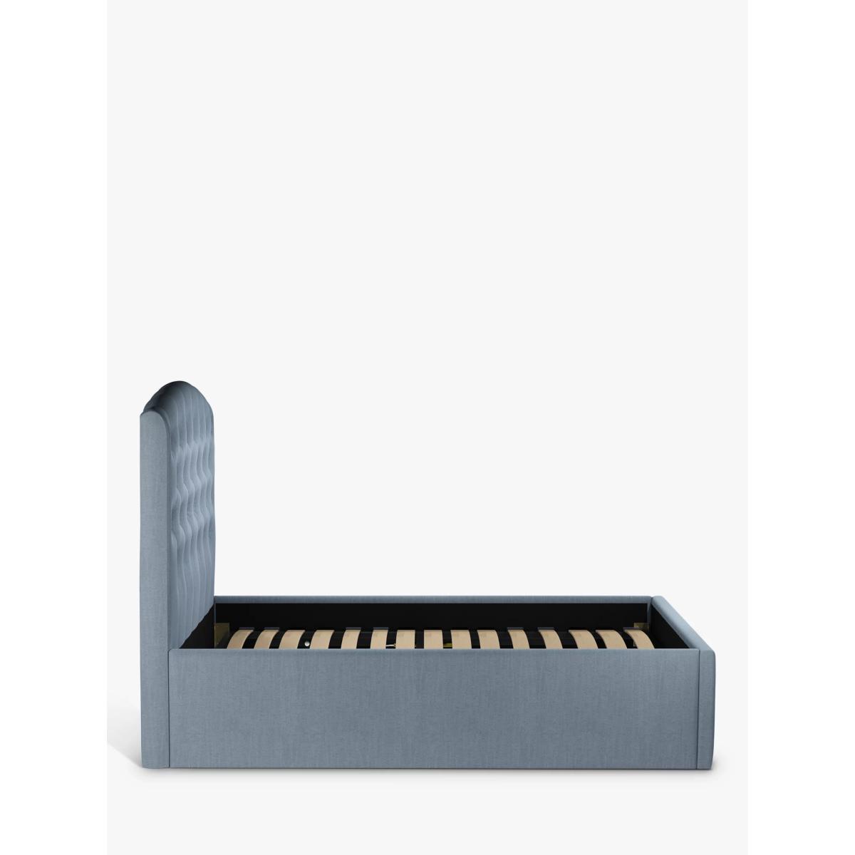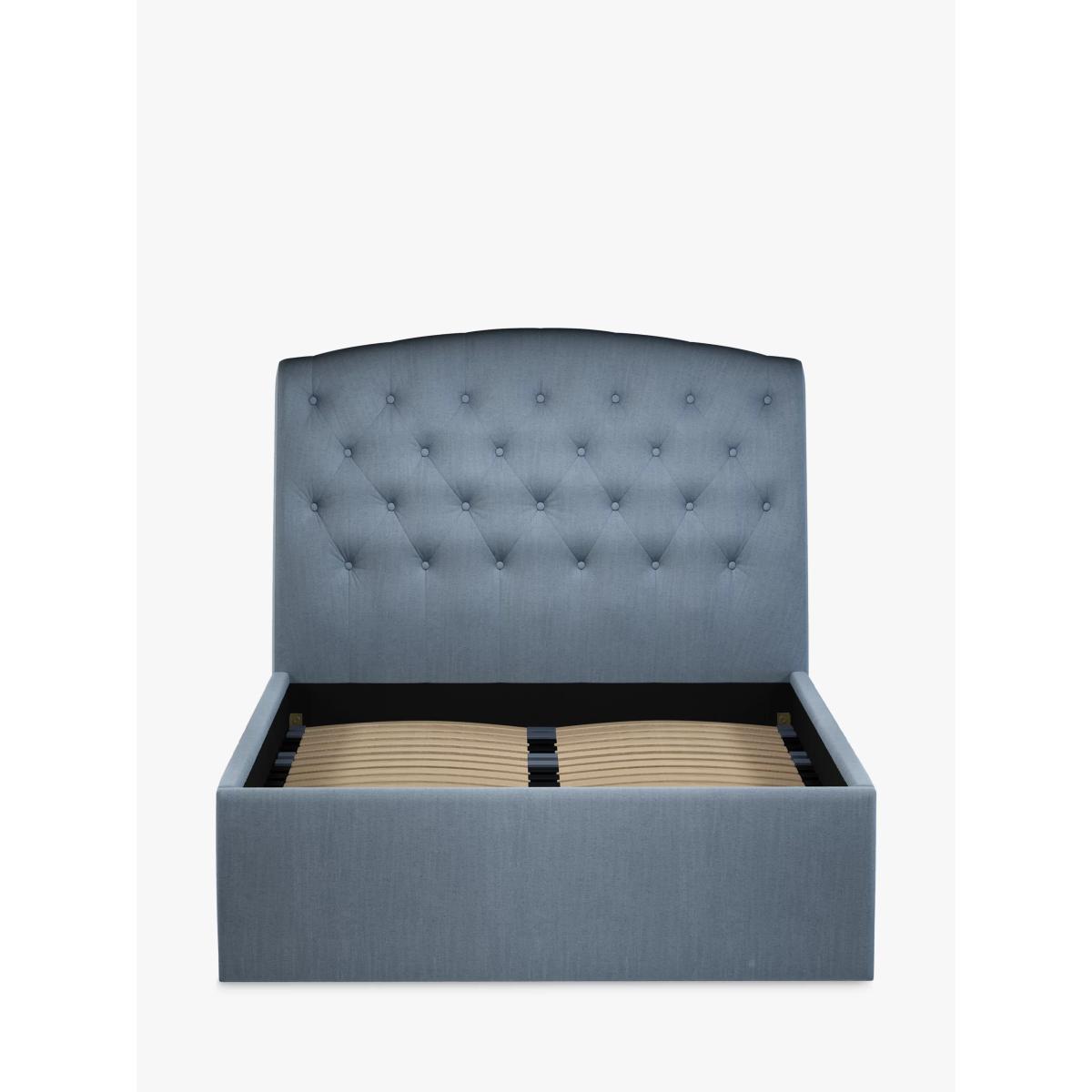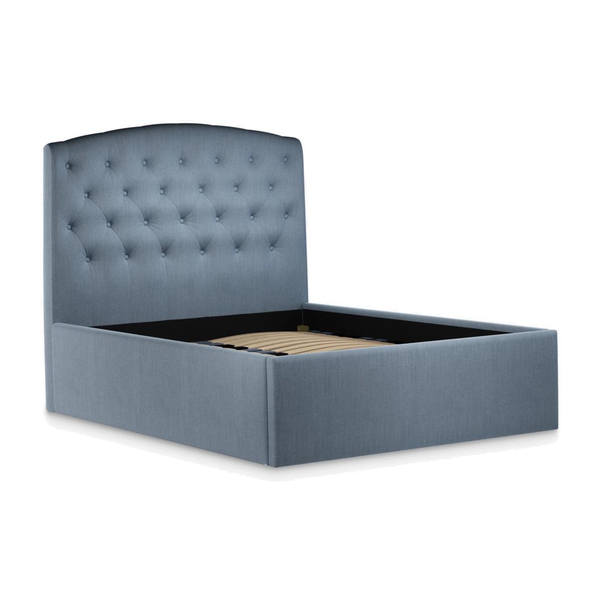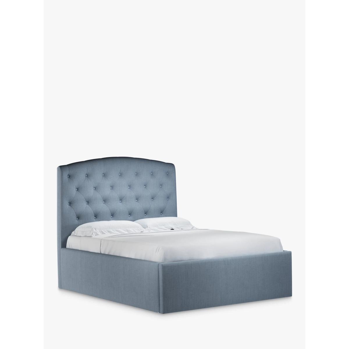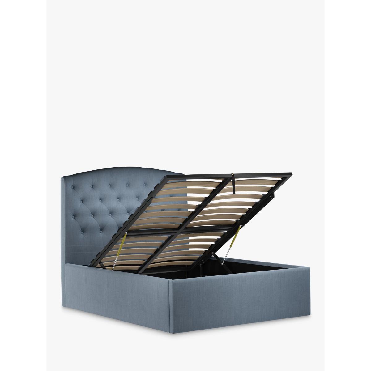 Our Rouen ottoman storage bed frame has a classic design that's enhanced with button detailing across the headboard. A handle and hydraulic arms facilitate an easy manual lift-up, revealing a functional and spacious storage space for spare linens. Sprung slats provide additional support for you and your mattress. Built with Smart Slats This bed frame is designed with wider slats at the shoulders, lumbar and feet. They provide maximum support for you and your mattress so that you experience perfect spinal alignment while you sleep. The standard slat caps are black so we have added grey slat caps to ensure that you know where to place the wider slats. Choose from one of our fabrics: Our Band A fabric, Topaz is woven to create a linen-effect feel Our Band A fabric, Saga is woven with man-made fibres, making it exceptionally durable and versatile Our Band B fabric, Erin has a velvet-style, chenille feel. It's woven with man-made fibres to create a beautifully soft yarn and can appear two-tone in different lights Our Band B fabric, Opulence is a soft and luxurious velvet-like fabric Our Band B fabric, Mole is a soft and cosy woven wool-blend. Piling and bobbling may occur naturally over time Our Band B fabric, Relaxed Linen is durable, resilient and versatile, woven from man-made and natural fibres Our Band C fabric, Aquaclean Harriet is made from a short, dense pile of velvet that has a soft, brushed finish. An Aquaclean treatment has been applied to this resilient fabric which means you can banish the majority of household stains with water. The treatment covers every fibre with an invisible coating so it doesn't need to be retreated or re-coated. It will naturally develop lines, scuffs and shading over time. Want to see it first? You may want to see and get a feel for the furniture before ordering. Pop into one of our shops to see the full range of colours and fabrics on offer. We'll be able to tell you where the range you'd like to view is on display.