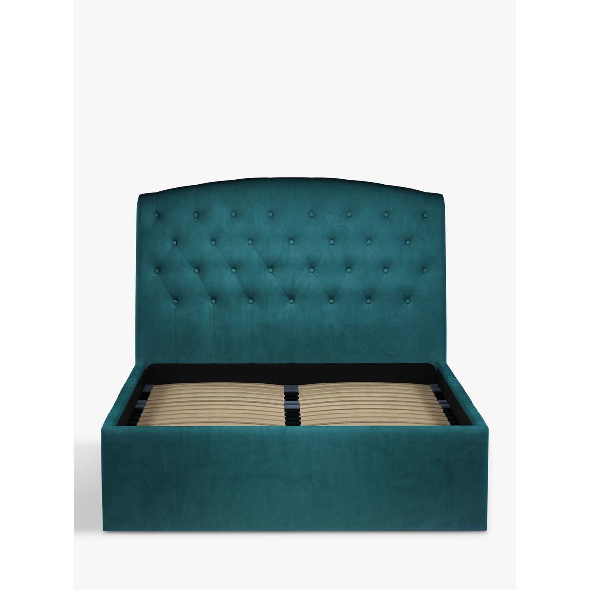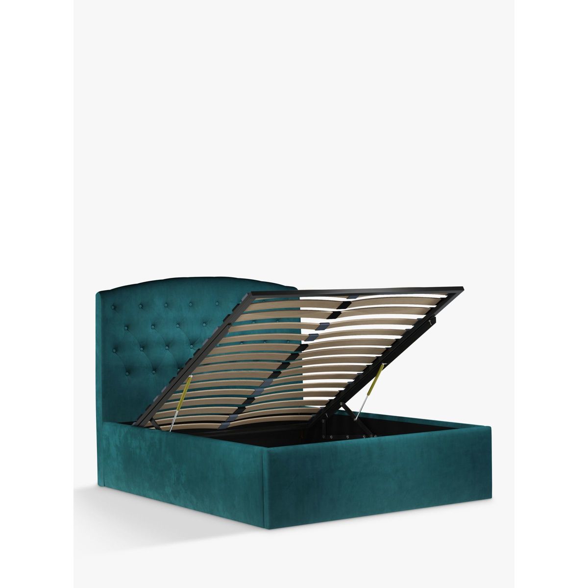 Our Rouen ottoman storage bed frame has a classic design that's enhanced with button detailing across the headboard. A handle and hydraulic arms facilitate an easy manual lift-up, revealing a functional and spacious storage space for spare linens. Sprung slats provide additional support for you and your mattress. Built with Smart Slats This bed frame is designed with wider slats at the shoulders, lumbar and feet. They provide maximum support for you and your mattress so that you experience perfect spinal alignment while you sleep. The standard slat caps are black so we have added grey slat caps to ensure that you know where to place the wider slats. Choose from one of our fabrics: Our Band A fabric, Topaz is woven to create a linen-effect feel Our Band A fabric, Saga is woven with man-made fibres, making it exceptionally durable and versatile Our Band B fabric, Erin has a velvet-style, chenille feel. It's woven with man-made fibres to create a beautifully soft yarn and can appear two-tone in different lights Our Band B fabric, Opulence is a soft and luxurious velvet-like fabric Our Band B fabric, Mole is a soft and cosy woven wool-blend. Piling and bobbling may occur naturally over time Our Band B fabric, Relaxed Linen is durable, resilient and versatile, woven from man-made and natural fibres Our Band C fabric, Aquaclean Harriet is made from a short, dense pile of velvet that has a soft, brushed finish. An Aquaclean treatment has been applied to this resilient fabric which means you can banish the majority of household stains with water. The treatment covers every fibre with an invisible coating so it doesn't need to be retreated or re-coated. It will naturally develop lines, scuffs and shading over time. Want to see it first? You may want to see and get a feel for the furniture before ordering. Pop into one of our shops to see the full range of colours and fabrics on offer. We'll be able to tell you where the range you'd like to view is on display.