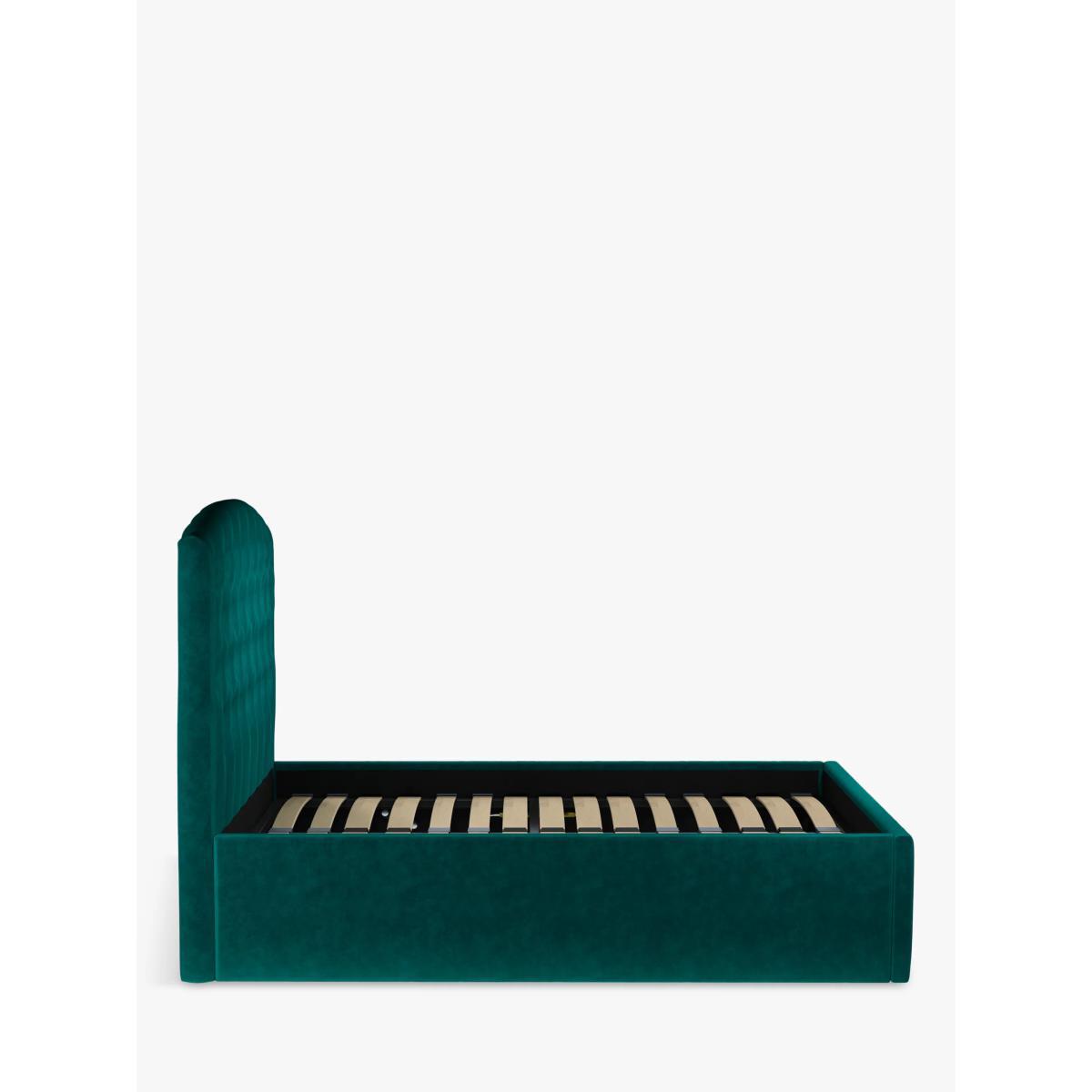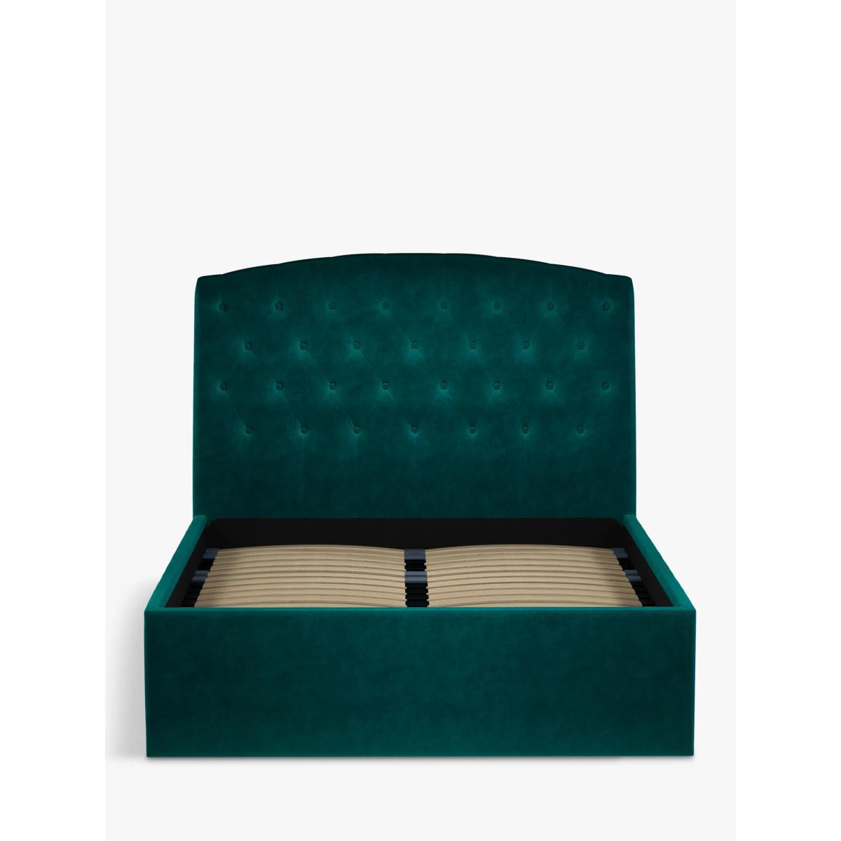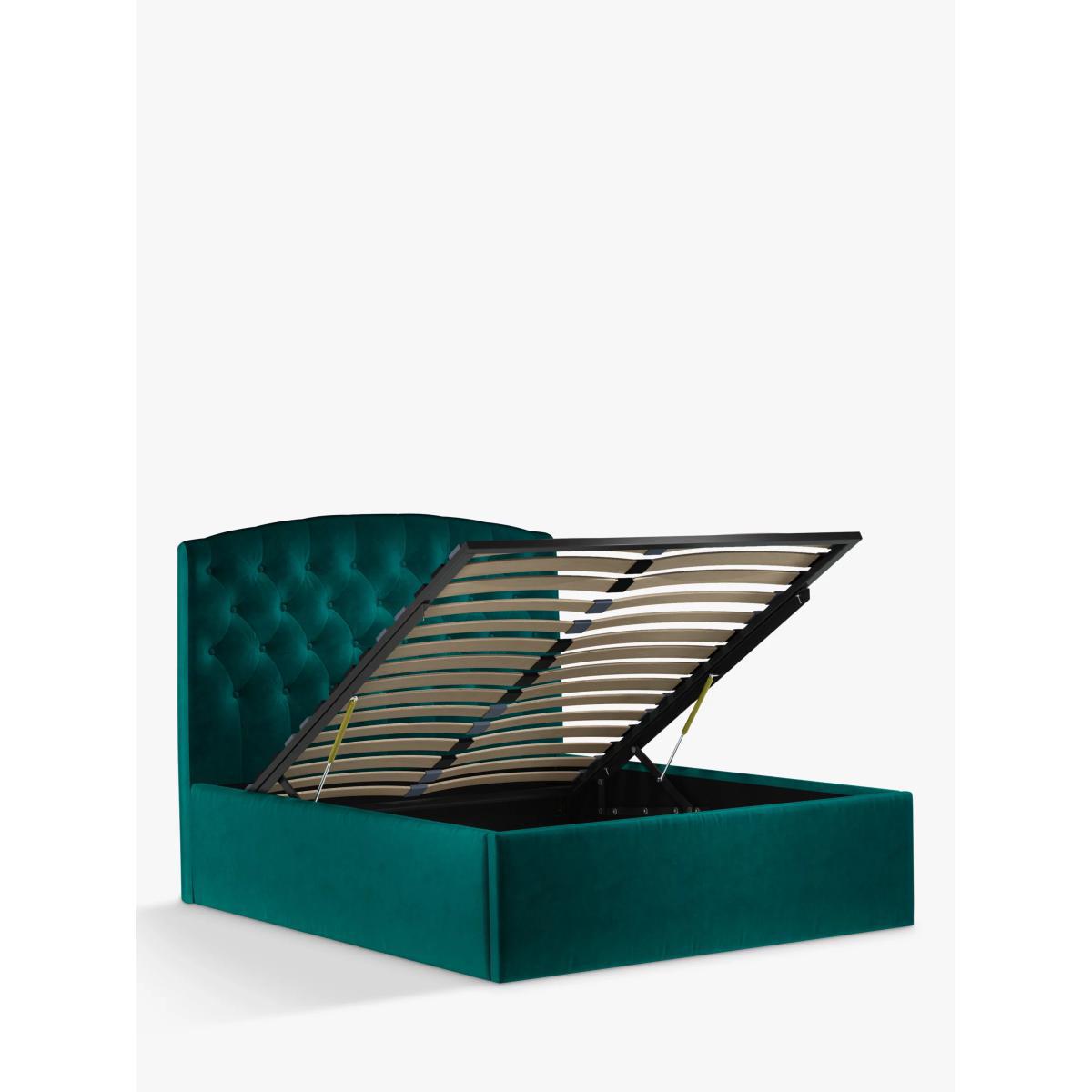 Our Rouen ottoman storage bed frame has a classic design that's enhanced with button detailing across the headboard. A handle and hydraulic arms facilitate an easy manual lift-up, revealing a functional and spacious storage space for spare linens. Sprung slats provide additional support for you and your mattress. Built with Smart Slats This bed frame is designed with wider slats at the shoulders, lumbar and feet. They provide maximum support for you and your mattress so that you experience perfect spinal alignment while you sleep. The standard slat caps are black so we have added grey slat caps to ensure that you know where to place the wider slats. Choose from one of our fabrics: Our Band A fabric, Topaz is woven to create a linen-effect feel Our Band A fabric, Saga is woven with man-made fibres, making it exceptionally durable and versatile Our Band B fabric, Erin has a velvet-style, chenille feel. It's woven with man-made fibres to create a beautifully soft yarn and can appear two-tone in different lights Our Band B fabric, Opulence is a soft and luxurious velvet-like fabric Our Band B fabric, Mole is a soft and cosy woven wool-blend. Piling and bobbling may occur naturally over time Our Band B fabric, Relaxed Linen is durable, resilient and versatile, woven from man-made and natural fibres Our Band C fabric, Aquaclean Harriet is made from a short, dense pile of velvet that has a soft, brushed finish. An Aquaclean treatment has been applied to this resilient fabric which means you can banish the majority of household stains with water. The treatment covers every fibre with an invisible coating so it doesn't need to be retreated or re-coated. It will naturally develop lines, scuffs and shading over time. Want to see it first? You may want to see and get a feel for the furniture before ordering. Pop into one of our shops to see the full range of colours and fabrics on offer. We'll be able to tell you where the range you'd like to view is on display.