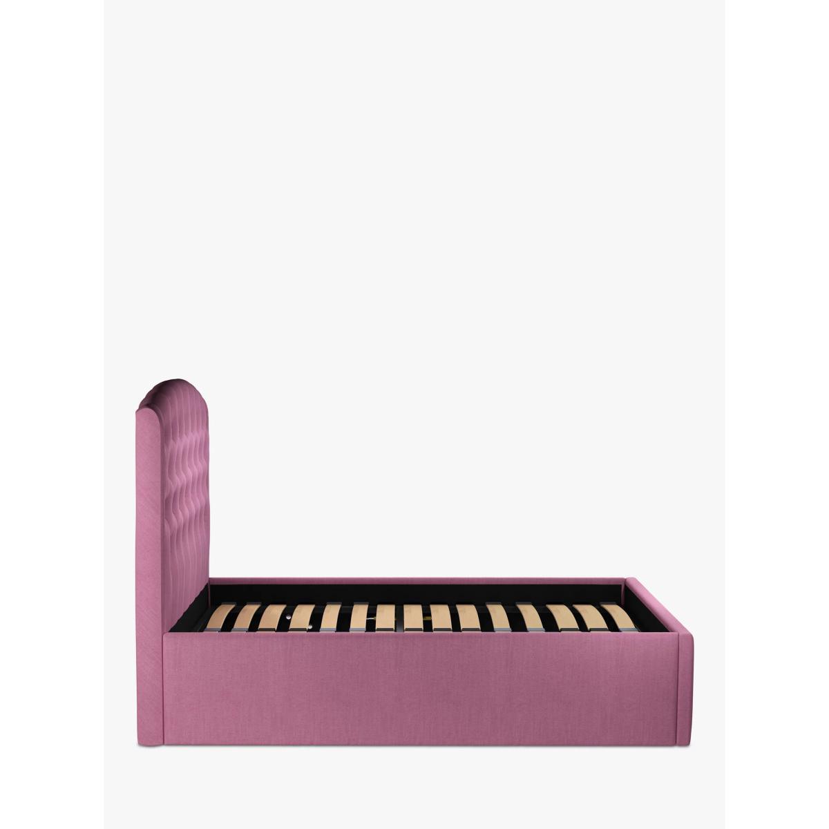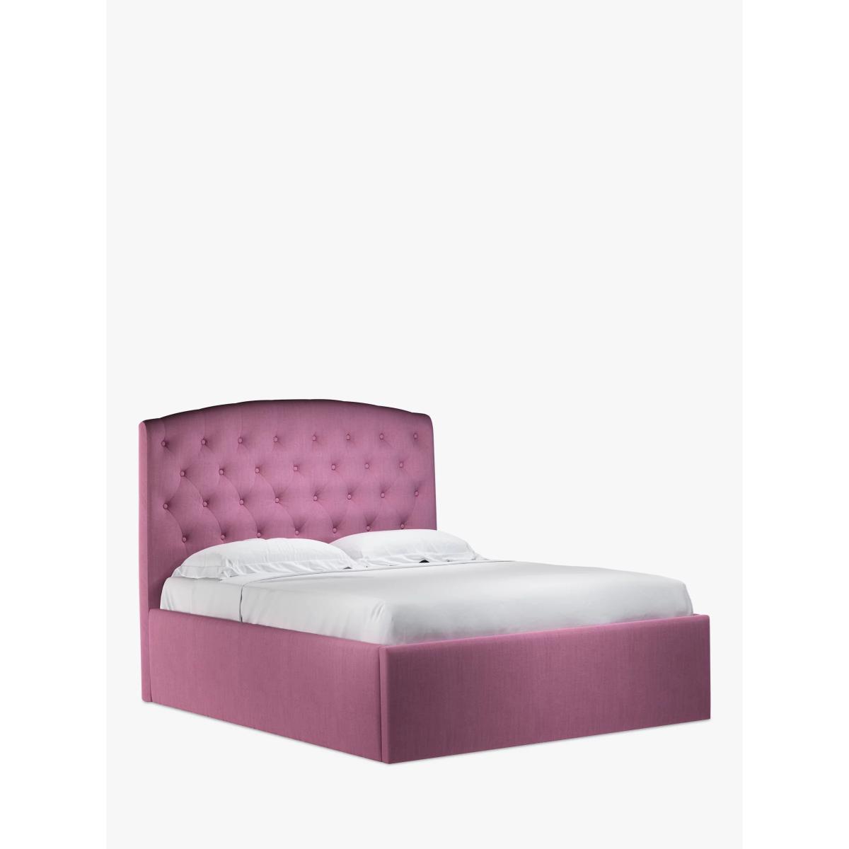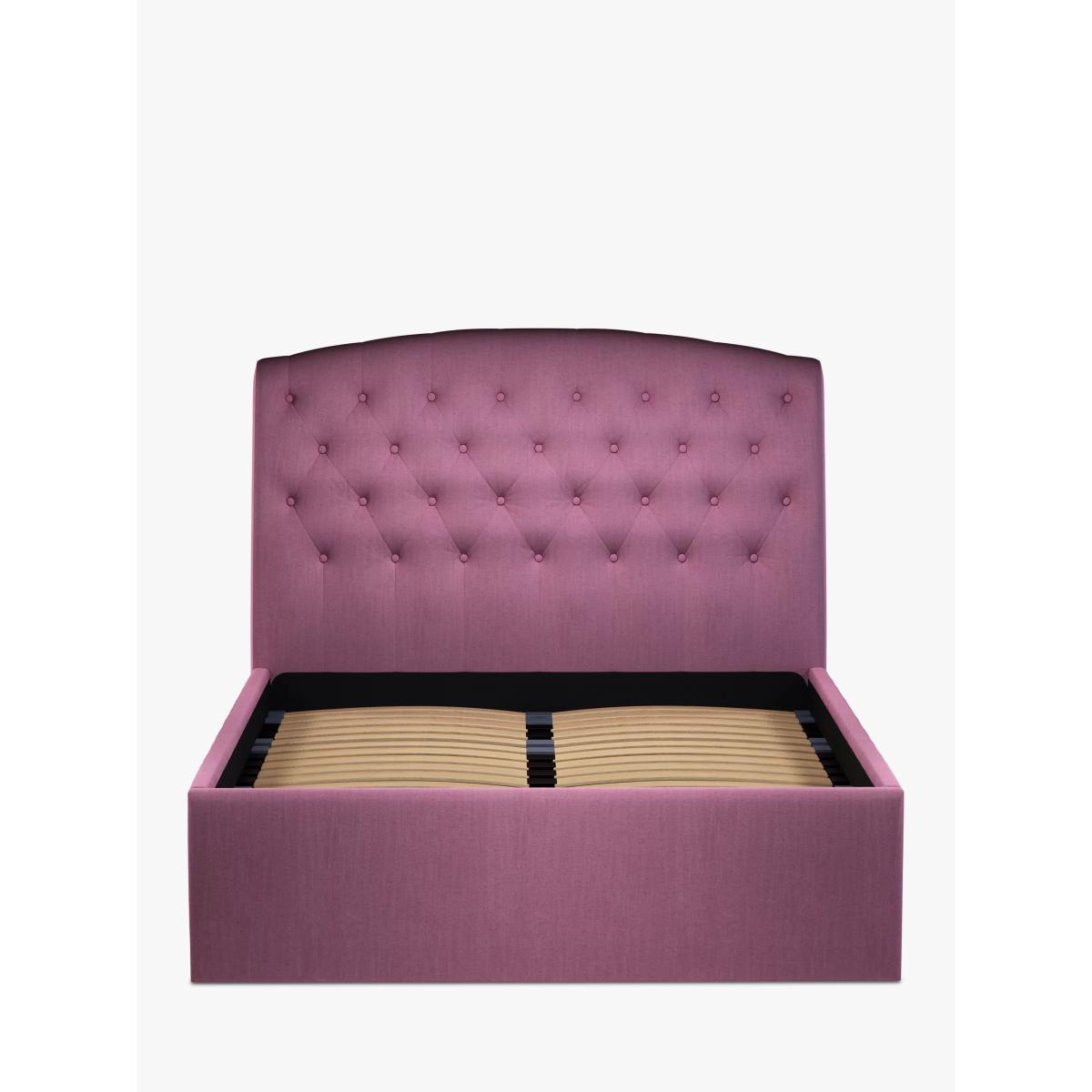 Our Rouen ottoman storage bed frame has a classic design that's enhanced with button detailing across the headboard. A handle and hydraulic arms facilitate an easy manual lift-up, revealing a functional and spacious storage space for spare linens. Sprung slats provide additional support for you and your mattress. Built with Smart Slats This bed frame is designed with wider slats at the shoulders, lumbar and feet. They provide maximum support for you and your mattress so that you experience perfect spinal alignment while you sleep. The standard slat caps are black so we have added grey slat caps to ensure that you know where to place the wider slats. Choose from one of our fabrics: Our Band A fabric, Topaz is woven to create a linen-effect feel Our Band A fabric, Saga is woven with man-made fibres, making it exceptionally durable and versatile Our Band B fabric, Erin has a velvet-style, chenille feel. It's woven with man-made fibres to create a beautifully soft yarn and can appear two-tone in different lights Our Band B fabric, Opulence is a soft and luxurious velvet-like fabric Our Band B fabric, Mole is a soft and cosy woven wool-blend. Piling and bobbling may occur naturally over time Our Band B fabric, Relaxed Linen is durable, resilient and versatile, woven from man-made and natural fibres Our Band C fabric, Aquaclean Harriet is made from a short, dense pile of velvet that has a soft, brushed finish. An Aquaclean treatment has been applied to this resilient fabric which means you can banish the majority of household stains with water. The treatment covers every fibre with an invisible coating so it doesn't need to be retreated or re-coated. It will naturally develop lines, scuffs and shading over time. Want to see it first? You may want to see and get a feel for the furniture before ordering. Pop into one of our shops to see the full range of colours and fabrics on offer. We'll be able to tell you where the range you'd like to view is on display.