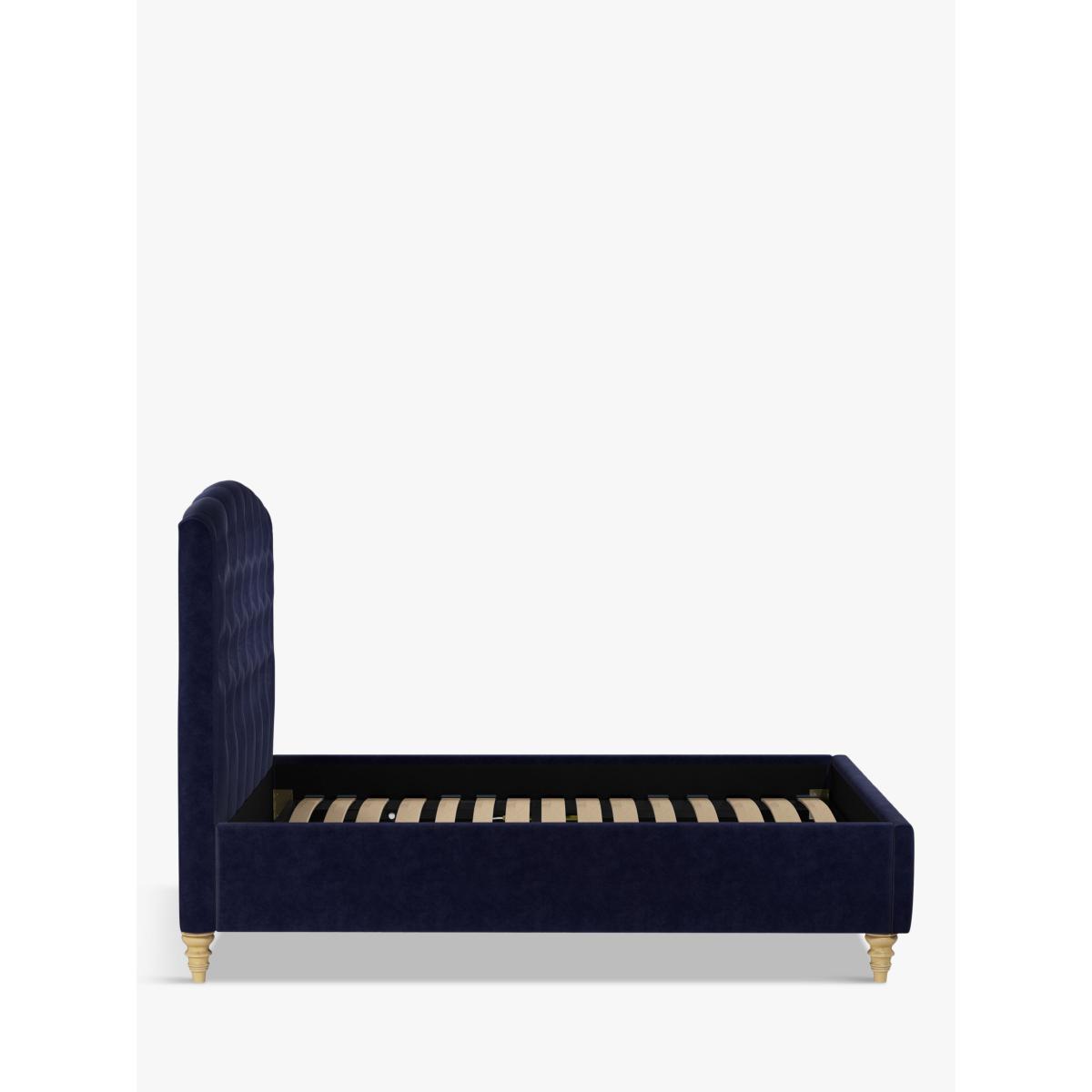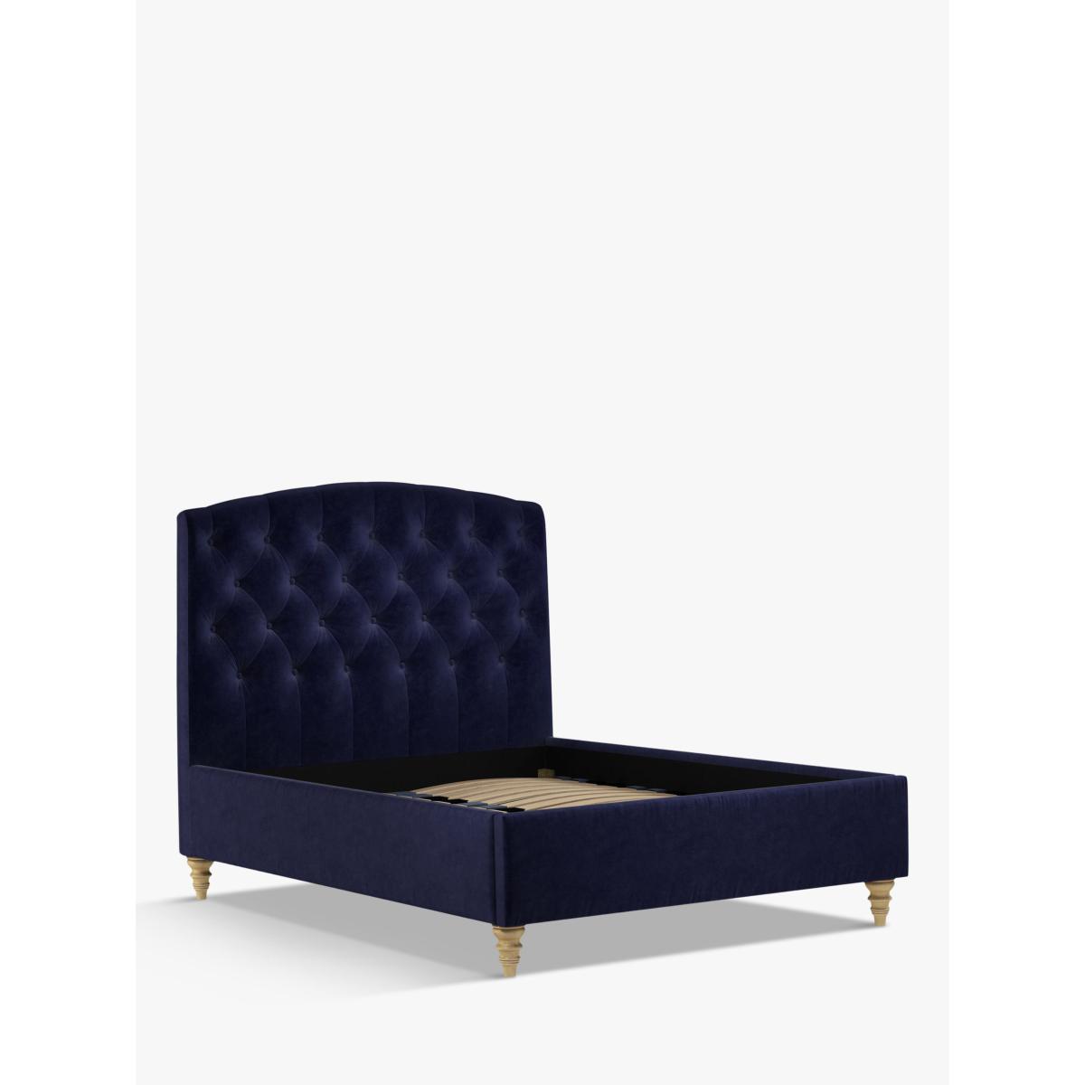 The design of our Rouen bed frame is timeless and sophisticated. We've added button detailing to the headboard and supported the frame with low, twisted legs made from high quality wood. There are also supportive sprung slats in the base. Built with Smart Slats This bed frame is designed with wider slats at the shoulders, lumbar and feet. They provide maximum support for you and your mattress so that you experience perfect spinal alignment while you sleep. The standard slat caps are black so we have added grey slat caps to ensure that you know where to place the wider slats. Choose from one of our fabrics: Our Band A fabric, Topaz is woven to create a linen-effect feel Our Band A fabric, Saga is woven with man-made fibres, making it exceptionally durable and versatile Our Band B fabric, Erin has a velvet-style, chenille feel. It's woven with man-made fibres to create a beautifully soft yarn and can appear two-tone in different lights Our Band B fabric, Opulence is a soft and luxurious velvet-like fabric Our Band B fabric, Mole is a soft and cosy woven wool-blend. Piling and bobbling may occur naturally over time Our Band B fabric, Relaxed Linen is durable, resilient and versatile, woven from man-made and natural fibres Our Band C fabric, Marylamb is woven with a mix of man-made and natural fibres for a tactile and soft-touch feel. Our Band C fabric, Aquaclean Harriet is made from a short, dense pile of velvet that has a soft, brushed finish. An Aquaclean treatment has been applied to this resilient fabric which means you can banish the majority of household stains with water. The treatment covers every fibre with an invisible coating so it doesn't need to be retreated or re-coated. It will naturally develop lines, scuffs and shading over time. Want to see it first? You may want to see and get a feel for the furniture before ordering. Pop into one of our shops to see the full range of colours and fabrics on offer. We'll be able to tell you where the range you'd like to view is on display.