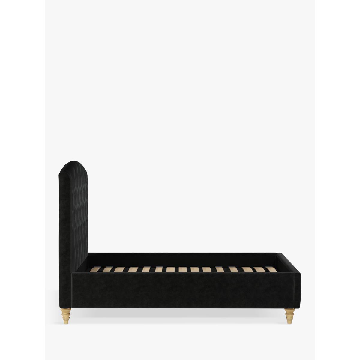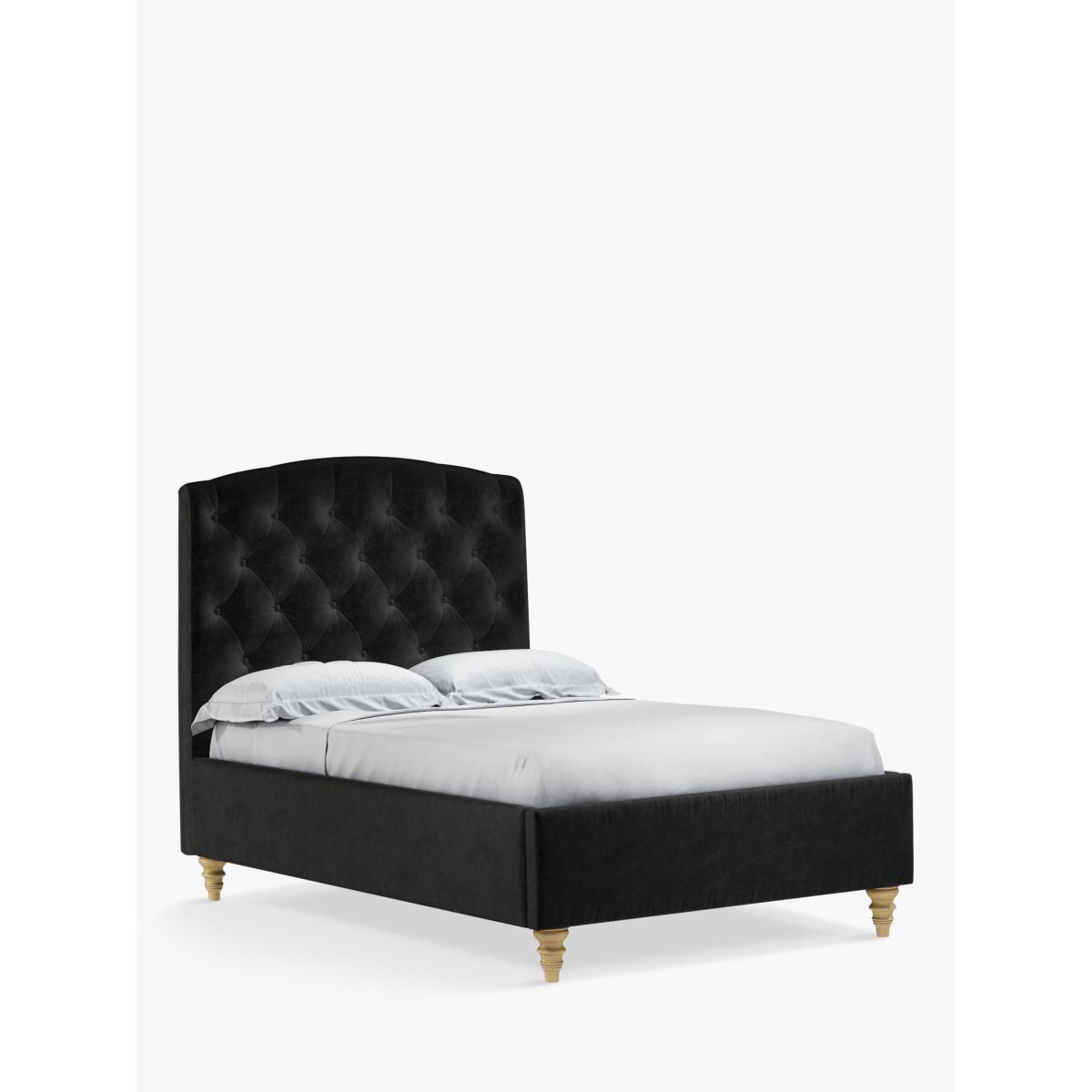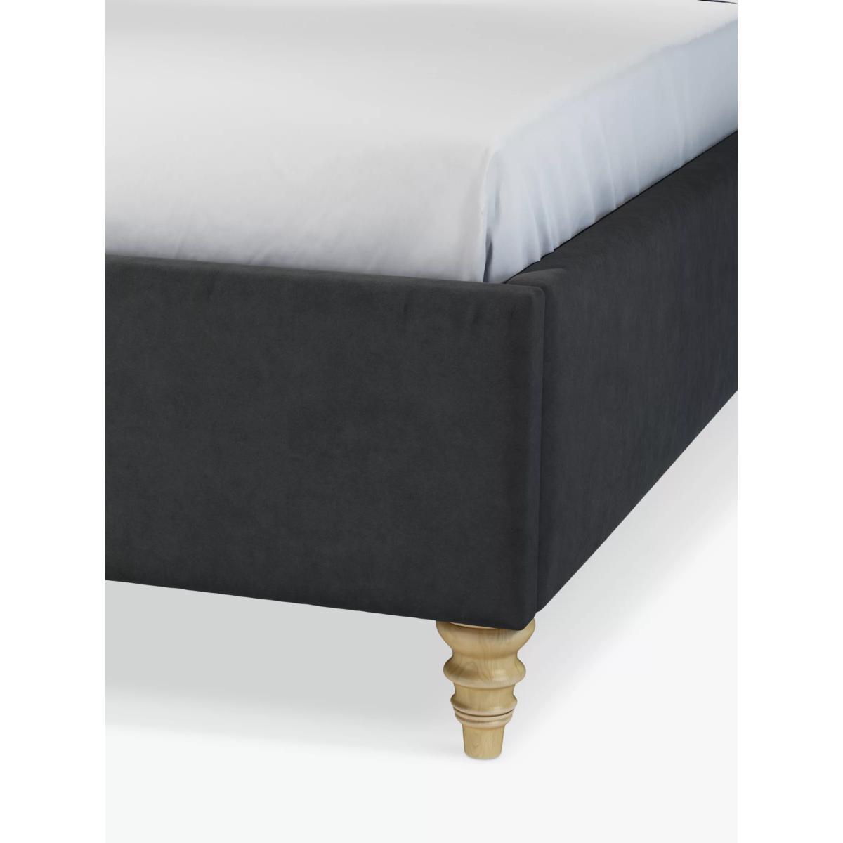The design of our Rouen bed frame is timeless and sophisticated. We've added button detailing to the headboard and supported the frame with low, twisted legs made from high quality wood. There are also supportive sprung slats in the base. Built with Smart Slats This bed frame is designed with wider slats at the shoulders, lumbar and feet. They provide maximum support for you and your mattress so that you experience perfect spinal alignment while you sleep. The standard slat caps are black so we have added grey slat caps to ensure that you know where to place the wider slats. Choose from one of our fabrics: Our Band A fabric, Topaz is woven to create a linen-effect feel Our Band A fabric, Saga is woven with man-made fibres, making it exceptionally durable and versatile Our Band B fabric, Erin has a velvet-style, chenille feel. It's woven with man-made fibres to create a beautifully soft yarn and can appear two-tone in different lights Our Band B fabric, Opulence is a soft and luxurious velvet-like fabric Our Band B fabric, Mole is a soft and cosy woven wool-blend. Piling and bobbling may occur naturally over time Our Band B fabric, Relaxed Linen is durable, resilient and versatile, woven from man-made and natural fibres Our Band C fabric, Aquaclean Harriet is made from a short, dense pile of velvet that has a soft, brushed finish. An Aquaclean treatment has been applied to this resilient fabric which means you can banish the majority of household stains with water. The treatment covers every fibre with an invisible coating so it doesn't need to be retreated or re-coated. It will naturally develop lines, scuffs and shading over time. Want to see it first? You may want to see and get a feel for the furniture before ordering. Pop into one of our shops to see the full range of colours and fabrics on offer. We'll be able to tell you where the range you'd like to view is on display.