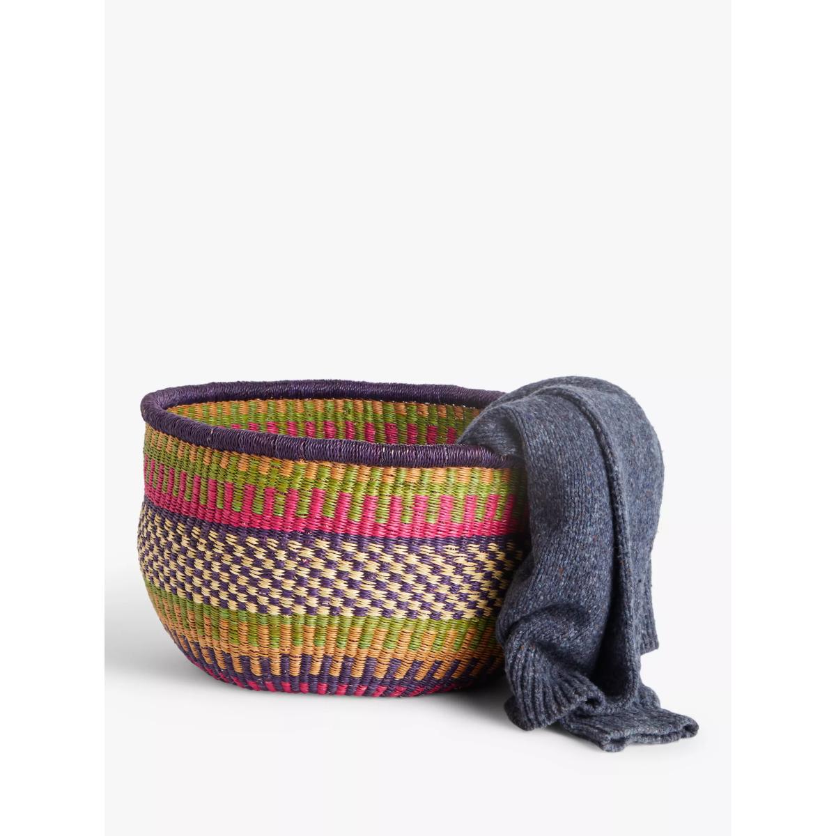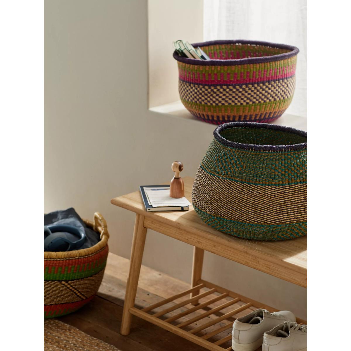 I love this colourful basket for its versatile, handmade appeal and its ability to bring a splash of personality to a variety of interiors. It works particularly well in boho, eclectic or relaxed modern spaces, where its natural textures and vibrant colours can complement other textiles and accessories. Practical for storing everything from blankets and throws to children's toys or even as a statement fruit bowl, it’s a great way to keep things organised without sacrificing style. For styling tips, try positioning it on open shelving, in a cozy corner or as a focal point on a console table, pairing it with neutral tones and natural materials to highlight its lively pattern.