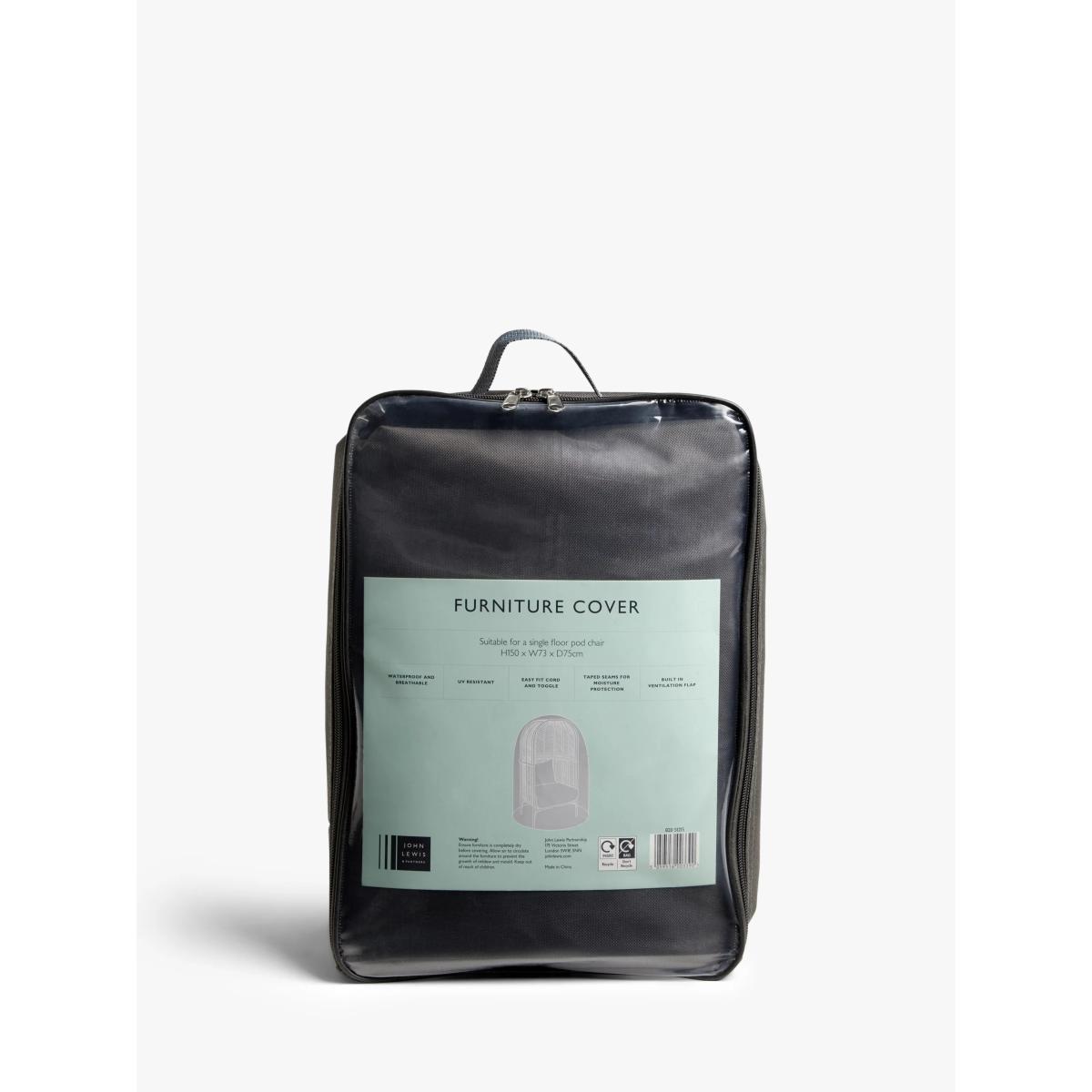 A cover for our Rye or Chevron Garden Chair Pod. It's waterproof with taped seams for better protection yet breathable with built-in ventilation to prevent mildew. The cover comes with a cord and toggle for an easy, secure fit. Made from strong 600. D polyester with UV sun protection for all-year-round use, it's packaged in a zip-up bag. Want to see it first? You may want to see and get a feel for the product in one of our shops before ordering. We'll be able to tell you where the range you'd like to view is on display.