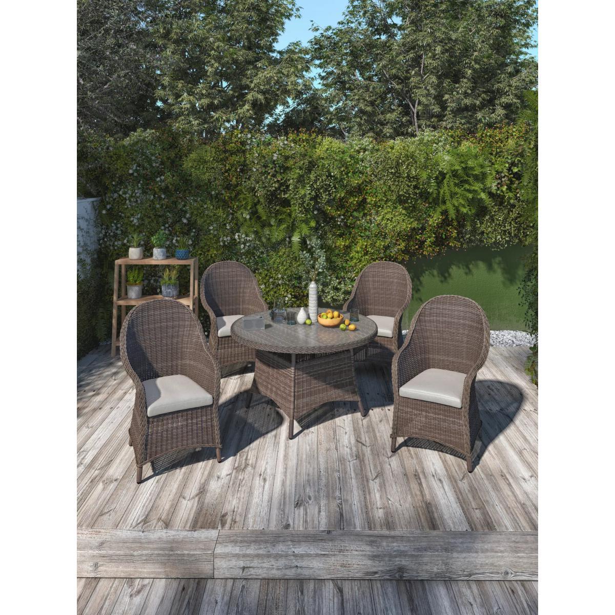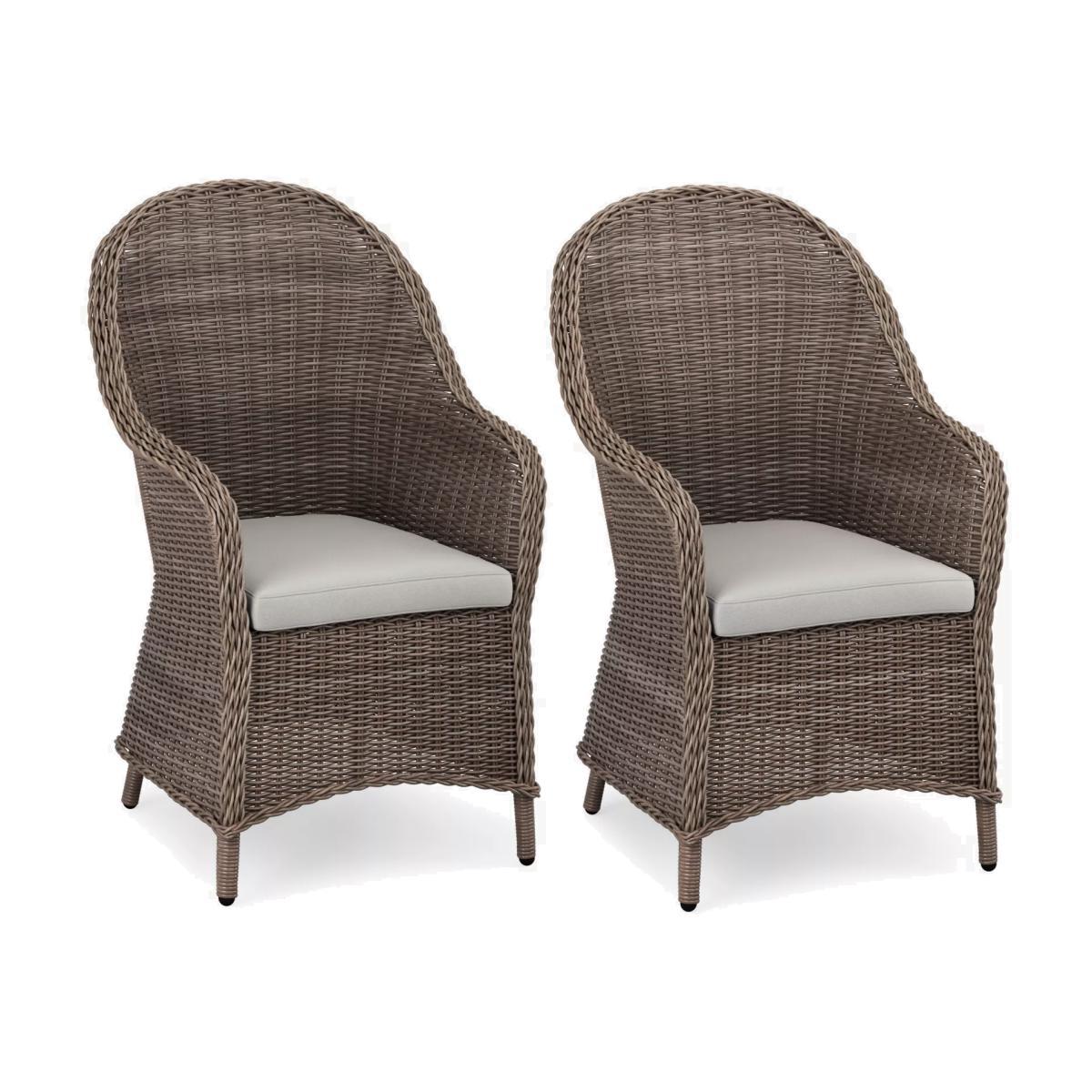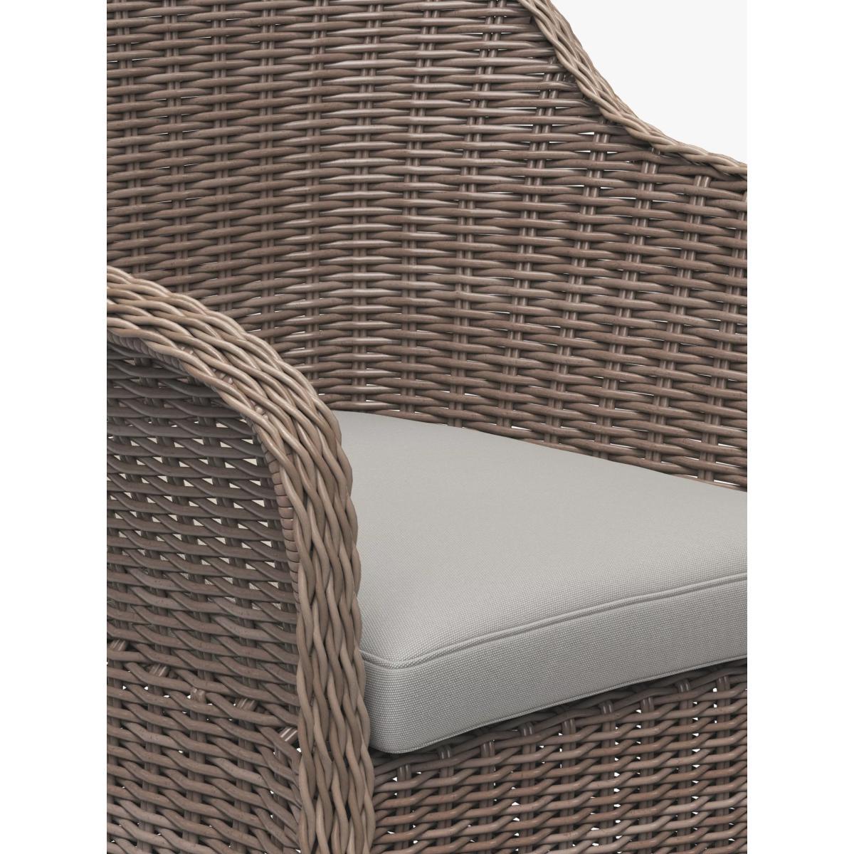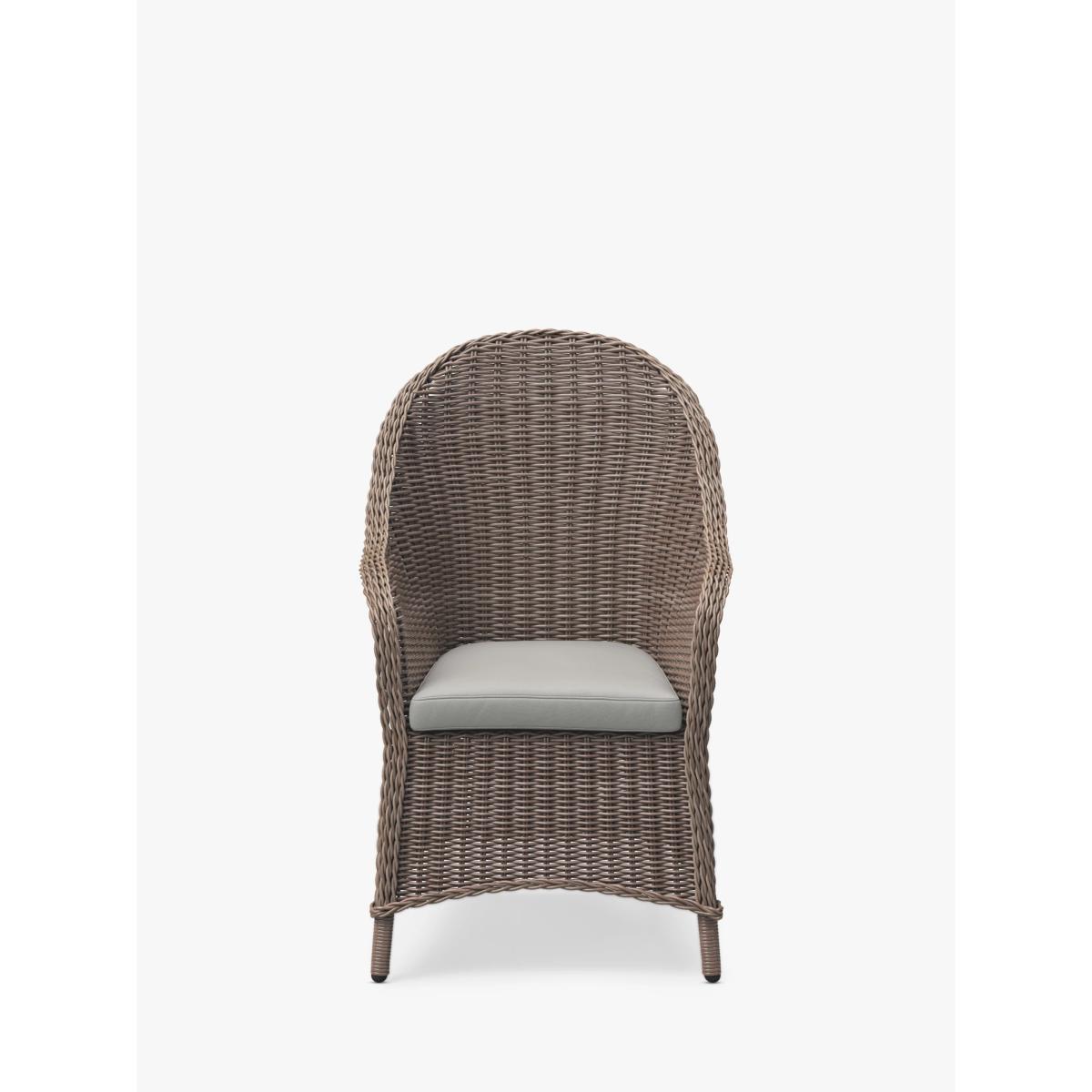 The attractive curved design of our Rye range is made using synthetic wicker, which has the look and feel of traditional rattan garden furniture but with long-lasting quality. Easy to maintain, the furniture is made with a sturdy aluminium frame that's able to withstand a weight of 20 stone (127kg), exceeding the industry standard. The resin wicker is applied by hand with a 5mm round weave technique in a natural willow-effect. The intricate handwoven design takes several days to produce and the finished results are strongly suited to outdoor spaces and conservatories. Designed for comfort, Rye seating comes with sumptuous shower-resistant cushioning. Good to know: The range is durable and for outdoor use all year round. As a precaution, we recommend you cover the furniture during adverse weather. Key features: Pair of garden dining armchairs Handwoven, 5mm round synthetic wicker Robust aluminium frame withstands 20 stone, exceeding the industry standard Seat cushions included Team it with furniture from our Rye range Want to see it first? You may want to see and get a feel for the product in one of our shops before ordering. We'll be able to tell you where the range you'd like to view is on display. Choose the perfect outdoor furniture We have a vast selection of furniture for you to choose from which will suit the home or garden. The majority of our furniture ranges have been hand woven using a synthetic wicker. The thinner the weave, the longer it takes for the skilled workers to complete. All weave types are durable so they’ll last throughout the seasons All woven outdoor furniture is UV protected so it will not fade in direct sunlight All woven outdoor furniture is easy to maintain, simply wipe clean using warm water Flat A weave of various widths which offers incredible value for money Half round More detailed with a 3D effect, the half round is a round weave in half which displays a wicker appearance on the top and hollowed underside Double half round A double strand of half round, this is a wider width of weave which achieves an expensive appearance Round weave A very tight weave which is available in various widths, from 2mm to 5mm Rope A selection of our ranges have been made using rope. The yarn is made up of 10,000 (approx) woven strands with a double core for extreme strength, does not attract mould even if wet for a long time and is UV resistant.
