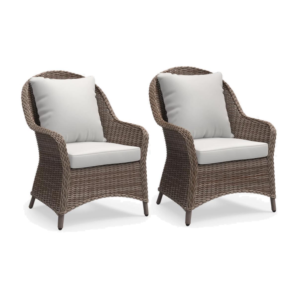 The attractive curved design of our Rye range is made using synthetic wicker, which has the look and feel of traditional rattan garden furniture but with long-lasting quality. Easy to maintain, the furniture is made with a sturdy aluminium frame that's able to withstand a weight of 20 stone (127kg), exceeding the industry standard. The resin wicker is applied by hand with a 5mm round weave technique in a natural willow-effect. The intricate handwoven design takes several days to produce and the finished results are strongly suited to outdoor spaces and conservatories. Designed for comfort, Rye seating comes with sumptuous shower-resistant cushioning. Good to know: The range is durable and for outdoor use all year round. As a precaution, we recommend you cover the furniture during adverse weather. Key features: Pair of garden lounging armchairs Handwoven, 5mm round synthetic wicker Robust aluminium frame withstands 20 stone, exceeding the industry standard Seat and back cushions included Team it with furniture from our Rye range Want to see it first? You may want to see and get a feel for the product in one of our shops before ordering. We'll be able to tell you where the range you'd like to view is on display. Choose the perfect outdoor furniture We have a vast selection of furniture for you to choose from which will suit the home or garden. The majority of our furniture ranges have been hand woven using a synthetic wicker. The thinner the weave, the longer it takes for the skilled workers to complete. All weave types are durable so they’ll last throughout the seasons All woven outdoor furniture is UV protected so it will not fade in direct sunlight All woven outdoor furniture is easy to maintain, simply wipe clean using warm water Flat A weave of various widths which offers incredible value for money Half round More detailed with a 3D effect, the half round is a round weave in half which displays a wicker appearance on the top and hollowed underside Double half round A double strand of half round, this is a wider width of weave which achieves an expensive appearance Round weave A very tight weave which is available in various widths, from 2mm to 5mm Rope A selection of our ranges have been made using rope. The yarn is made up of 10,000 (approx) woven strands with a double core for extreme strength, does not attract mould even if wet for a long time and is UV resistant.