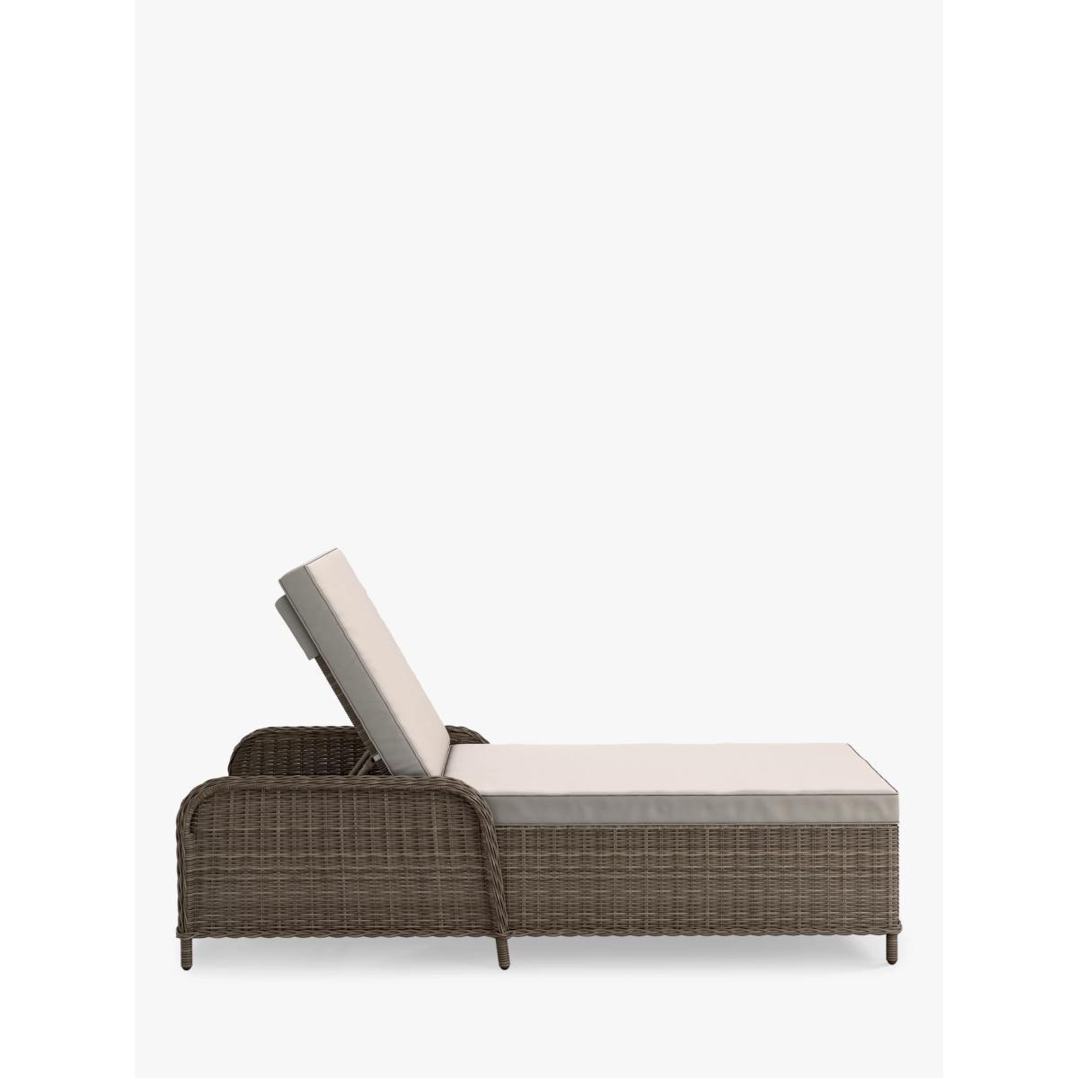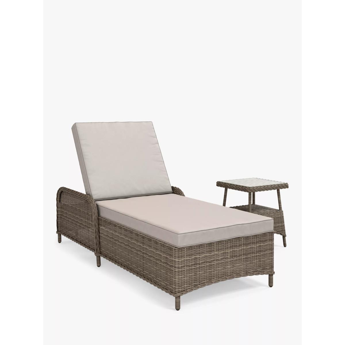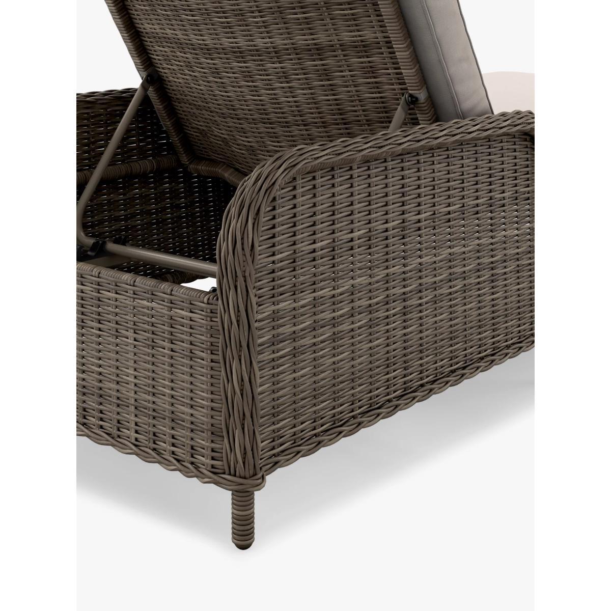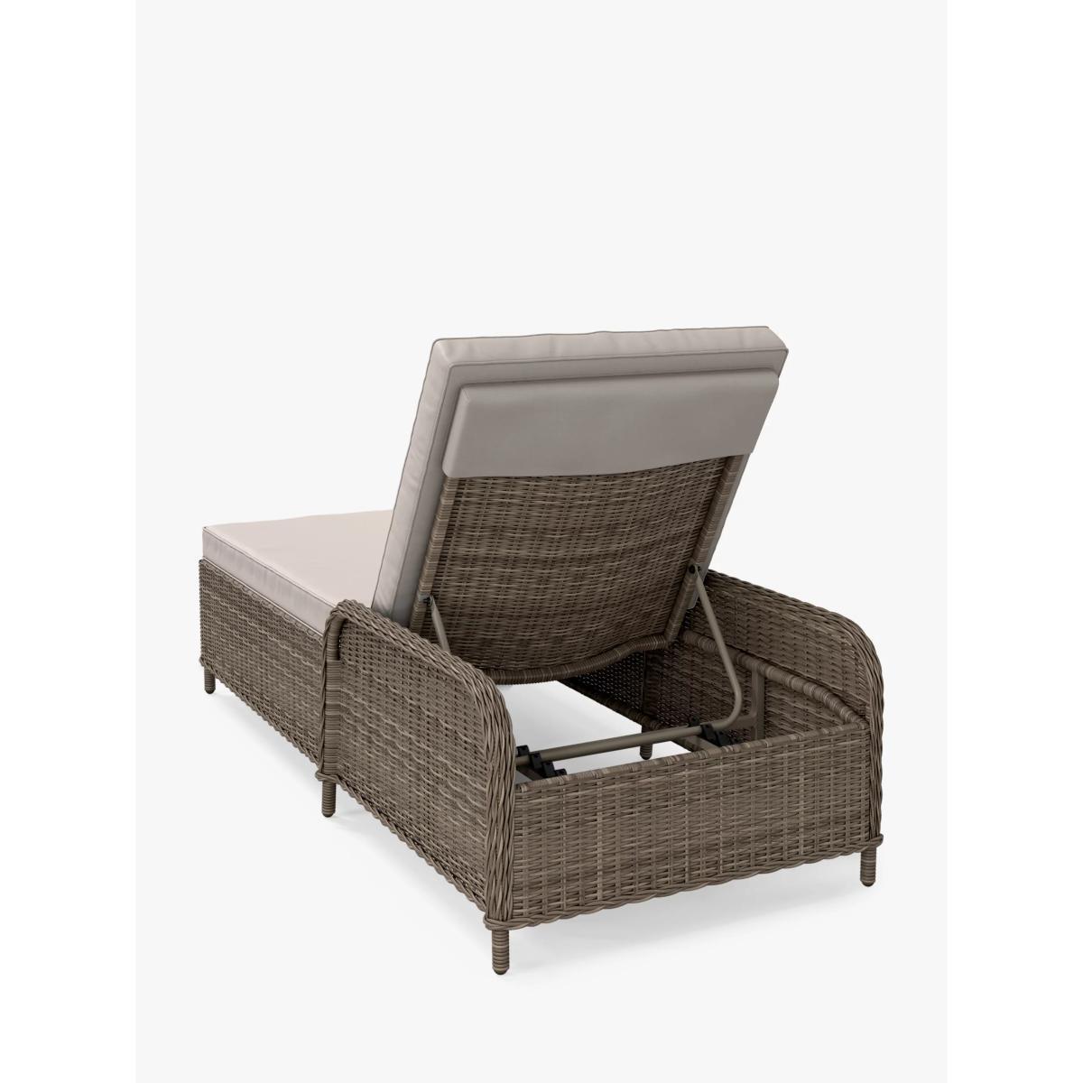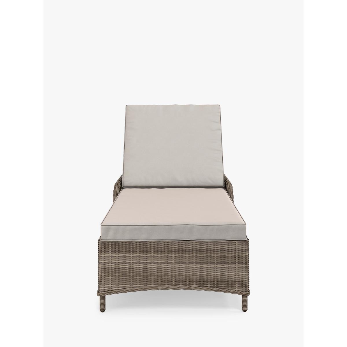 The attractive curved design of our Rye range is made using synthetic wicker, which has the look and feel of traditional rattan garden furniture but with long-lasting quality. Easy to maintain, this sunlounger is made with a sturdy aluminium frame that's able to withstand a weight of 17 stone (110kg). Choose from four reclining positions for relaxation. The furniture's resin wicker is applied by hand with a 5mm round weave technique in a natural willow-effect. The intricate handwoven design takes several days to produce and the finished results are strongly suited to outdoor spaces and conservatories. Designed for comfort, Rye seating comes with sumptuous shower-resistant cushioning. Good to know: The range is durable and for outdoor use all year round. As a precaution, we recommend you cover the furniture during adverse weather. Key features: Garden sunlounger Handwoven, 5mm round synthetic wicker Robust aluminium frame Four reclining positions Seat and two back cushions included Team it with furniture from our Rye range Want to see it first? You may want to see and get a feel for the product in one of our shops before ordering. We'll be able to tell you where the range you'd like to view is on display. Choose the perfect outdoor furniture We have a vast selection of furniture for you to choose from which will suit the home or garden. The majority of our furniture ranges have been hand woven using a synthetic wicker. The thinner the weave, the longer it takes for the skilled workers to complete. All weave types are durable so they’ll last throughout the seasons All woven outdoor furniture is UV protected so it will not fade in direct sunlight All woven outdoor furniture is easy to maintain, simply wipe clean using warm water Flat A weave of various widths which offers incredible value for money Half round More detailed with a 3D effect, the half round is a round weave in half which displays a wicker appearance on the top and hollowed underside Double half round A double strand of half round, this is a wider width of weave which achieves an expensive appearance Round weave A very tight weave which is available in various widths, from 2mm to 5mm Rope A selection of our ranges have been made using rope. The yarn is made up of 10,000 (approx) woven strands with a double core for extreme strength, does not attract mould even if wet for a long time and is UV resistant.