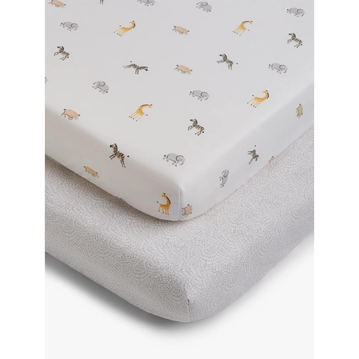 Made from pure cotton for a comfortable night's sleep, this set of two cotbed sheets from our collection are fitted for easy changing. Forming part of the Safari bedding range, one is made to a patterned design and the other printed with adorable safari animals that are sure to bring charm to your nursery. By buying cotton products from John Lewis & Partners, you're supporting more sustainable cotton farming through the Better Cotton Initiative. BCI is a not-for-profit organisation which exists to make global cotton production better for the people who produce it, better for the environment it grows in, and better for the sector's future. BCI works with partners around the world such as WWF, Solidaridad and Cotton Connect to train farmers to produce cotton more sustainably. Better Cotton is sourced via a principle of "mass balance" and is not physically traceable to end products. However, BCI Farmers benefit from the demand for Better Cotton in equivalent volumes to those we source.