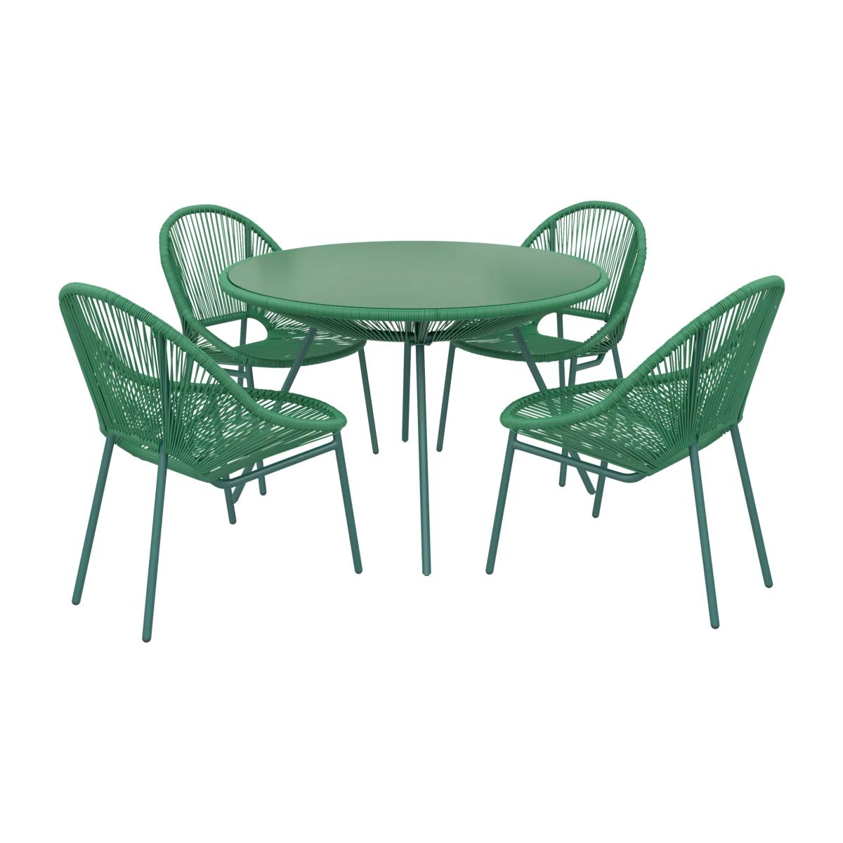 Bringing bold colours to outdoor spaces, our Salsa range of garden furniture features an updated rattan design. This Salsa four-seater dining table and chairs set is available in a choice of trend colours to enliven garden patios or conservatories. Thanks to its steel and polyweave construction, it's both durable and weather-resistant so you can even leave it outside throughout the year. The steel chair legs and frame are sturdy and the robust design allows the rattan to form its shape, with a dense weave ensuring comfortable support. Key features: Year-round weather-resistant Bold colour in a contemporary design Robust steel frames Dense weave for comfortable support Round glass-topped table Four chairs Seat height: 43.5cm Want to see it first? You may want to see and get a feel for the product in one of our shops before ordering. We'll be able to tell you where the range you'd like to view is on display.