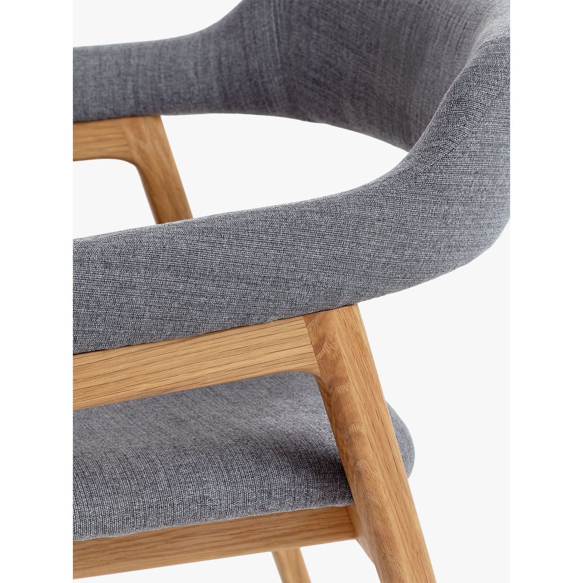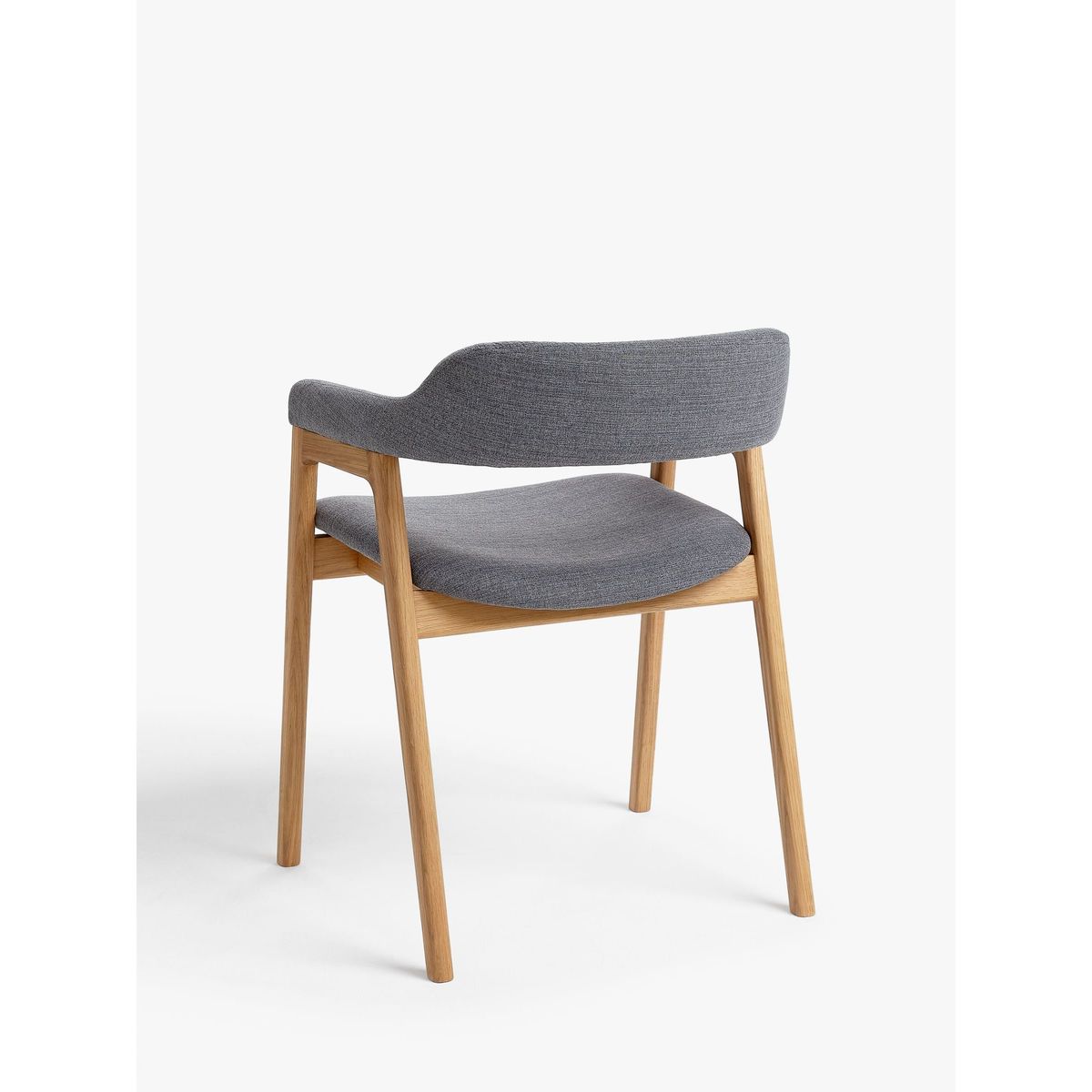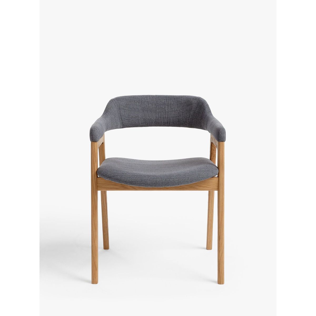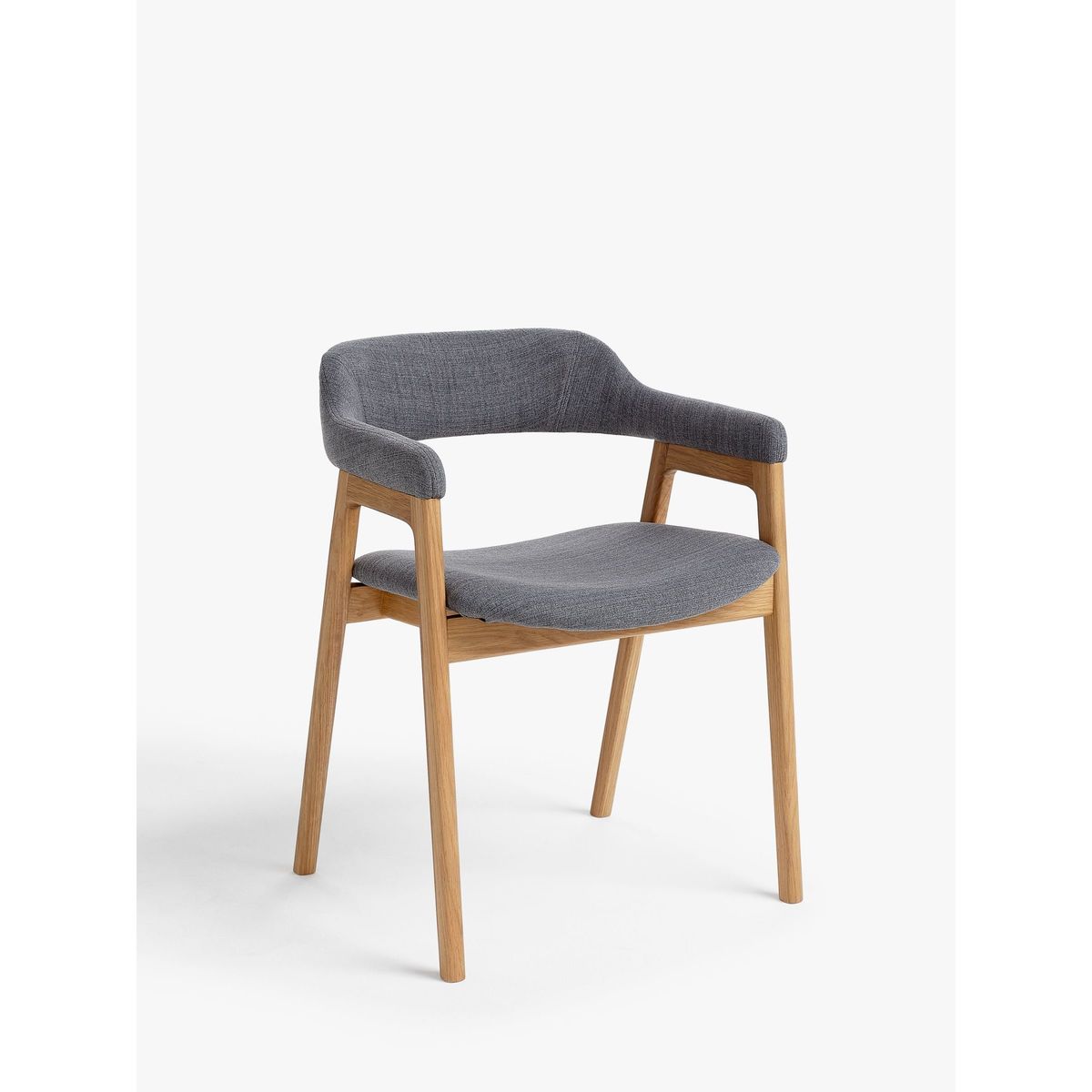 I love this armchair for its blend of modern and Scandinavian-influenced design, making it versatile across various dining and relaxed living spaces. The grey fabric paired with oak legs adds warmth and a subtle touch of sophistication, perfect for contemporary interiors as well as more understated schemes. It works particularly well in open-plan kitchens or dining rooms that combine neutral tones with natural materials. When styling, consider pairing it with a smooth, minimalist table and adding textured textiles or colourful tableware for visual interest. Its comfortable size and clean lines make it an easy choice for multi-purpose spaces, blending style with practicality.