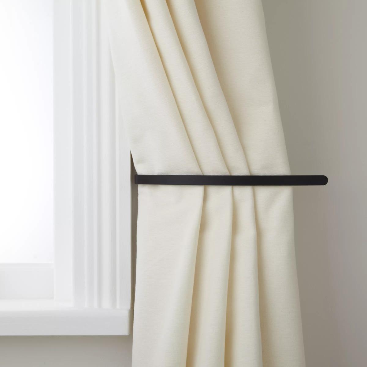 A pair of decorative holdbacks to accompany the John Lewis & Partners black curtain pole ranges. Polished to a smooth finish, this range of jet black curtain poles and accessories will introduce a good-looking monochrome element to your décor. Discreet when paired with a neutral palette and chic when styled with fabulously luxe soft furnishings and trimmings, it creates a winning look in a contemporary home. Please note that this range is not suitable for damp or humid conditions.